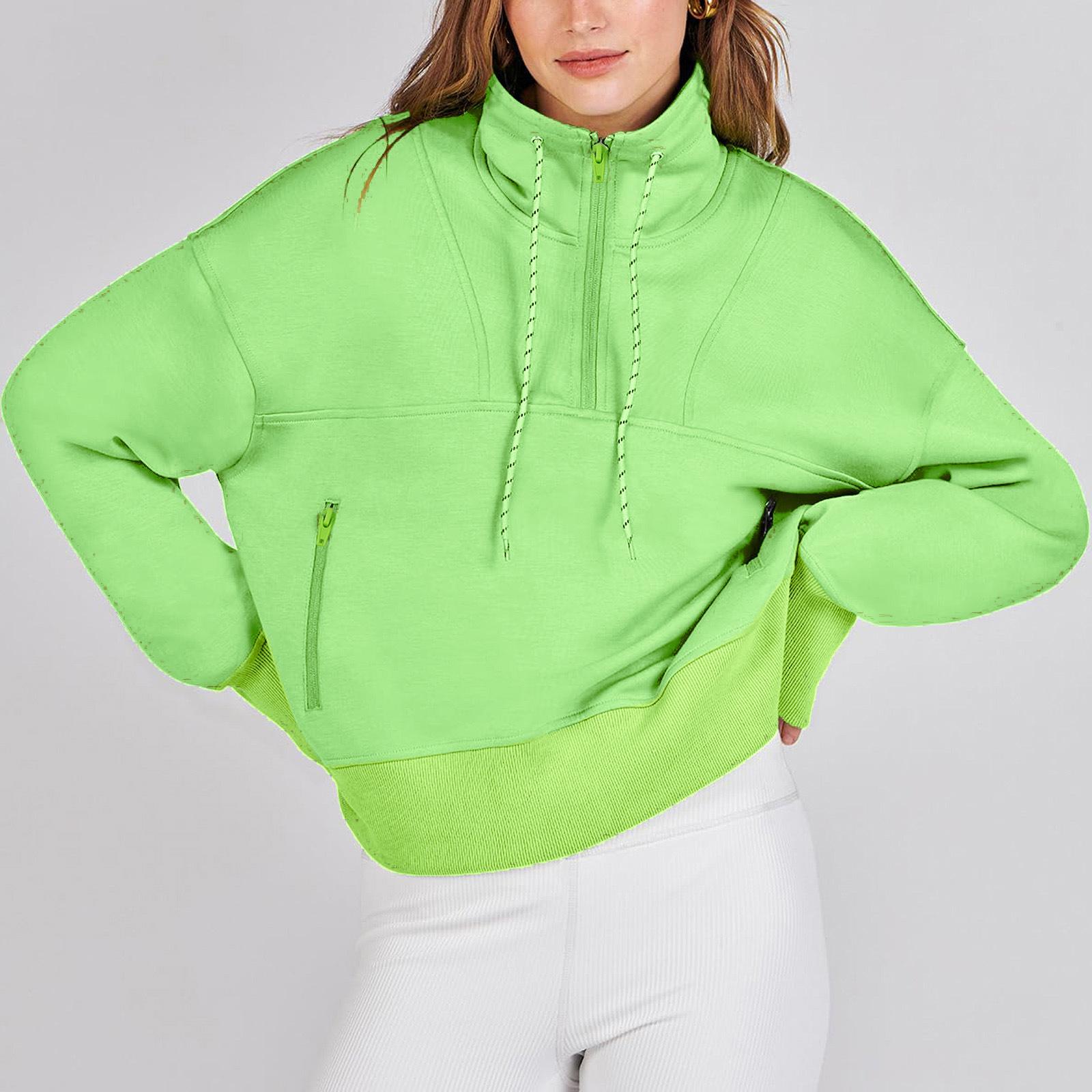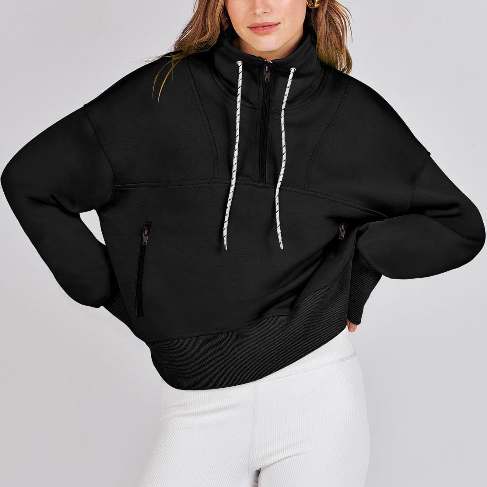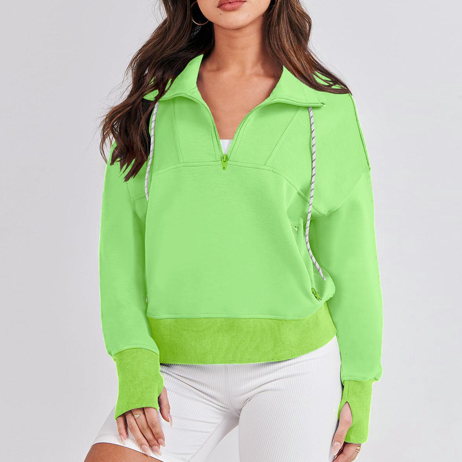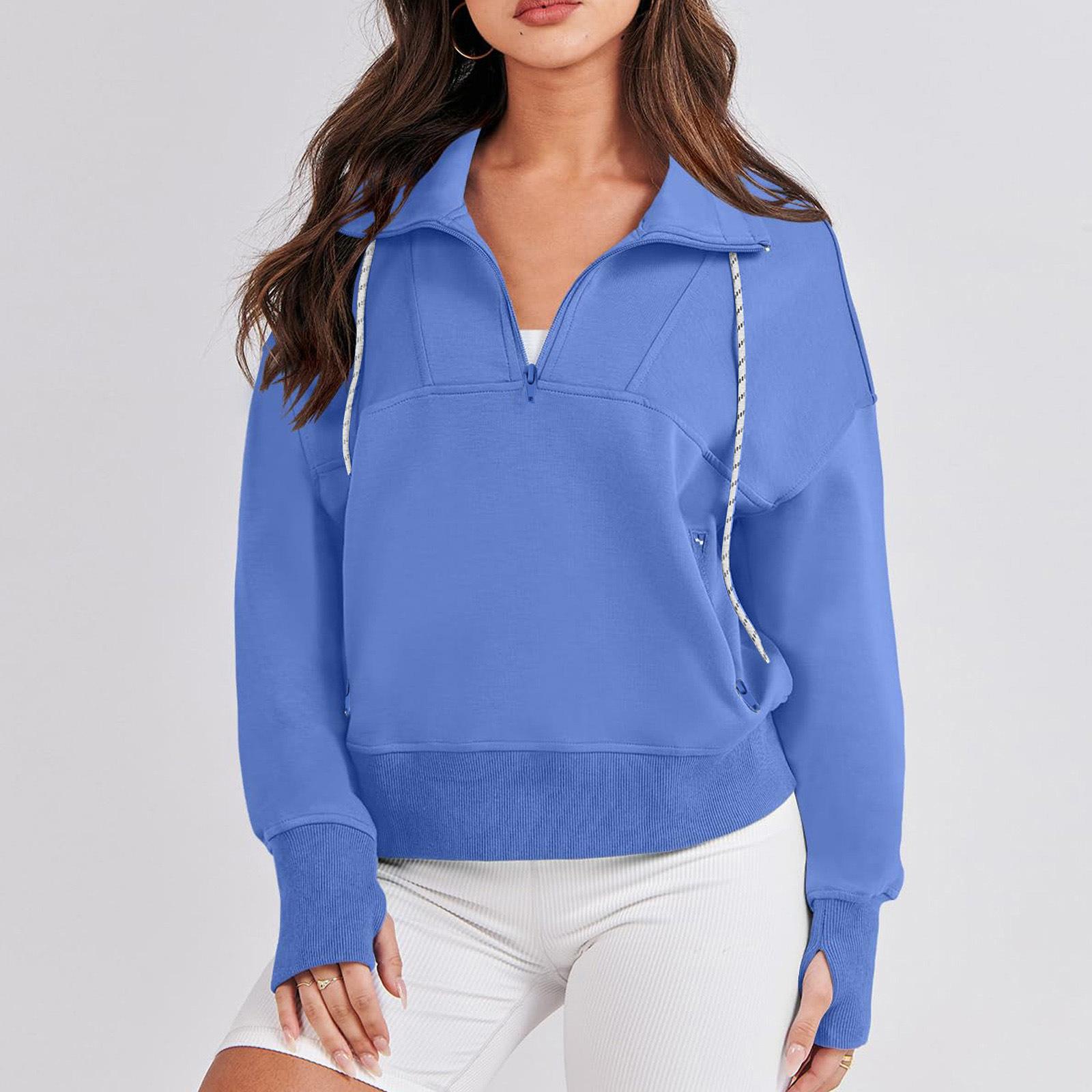 Suéter de color sólido con cuello de otoño e invierno de 2023, con bolsillo y cremallera, informal, de manga larga y corta con agujero para el pulgar para mujer