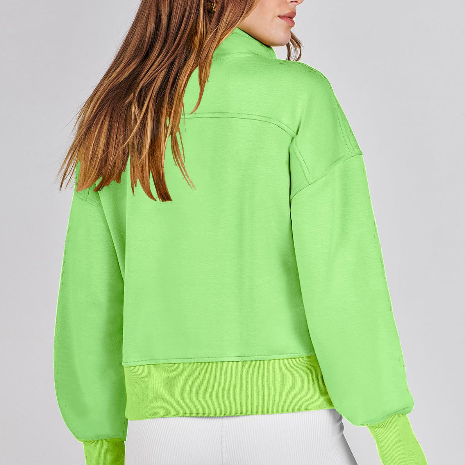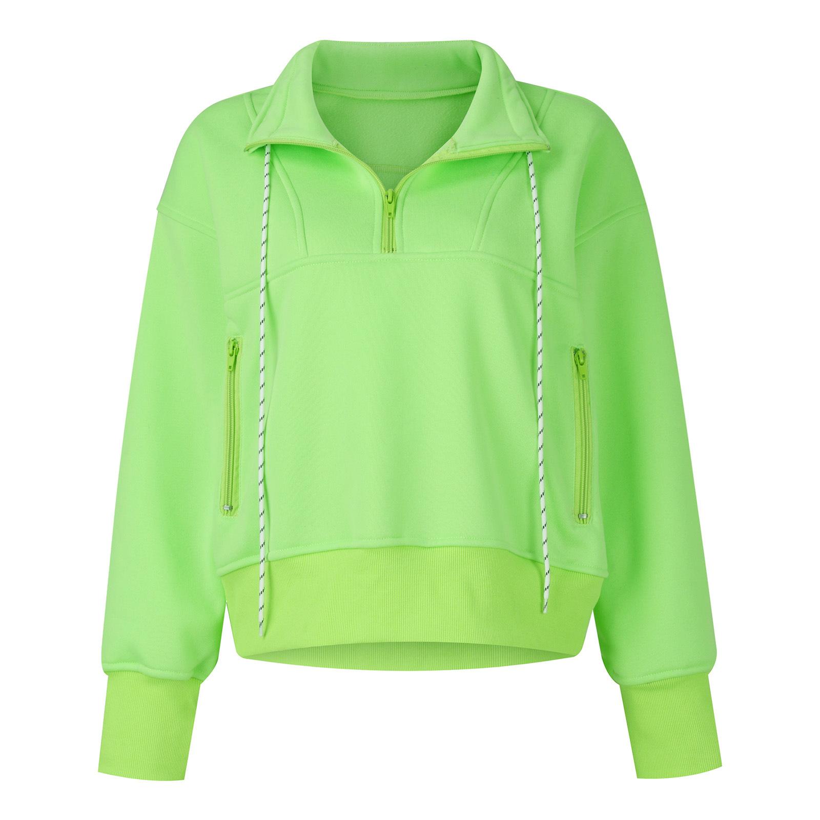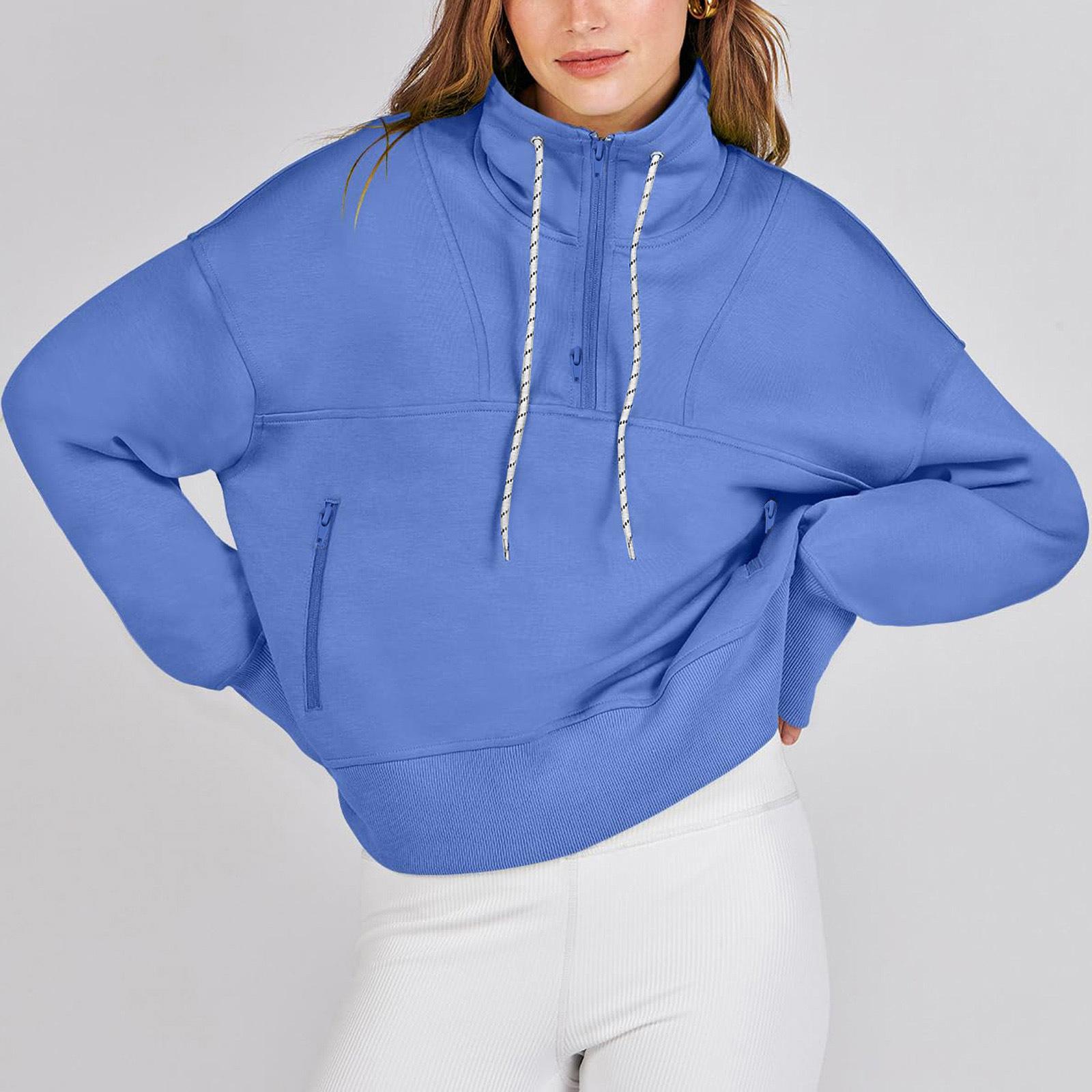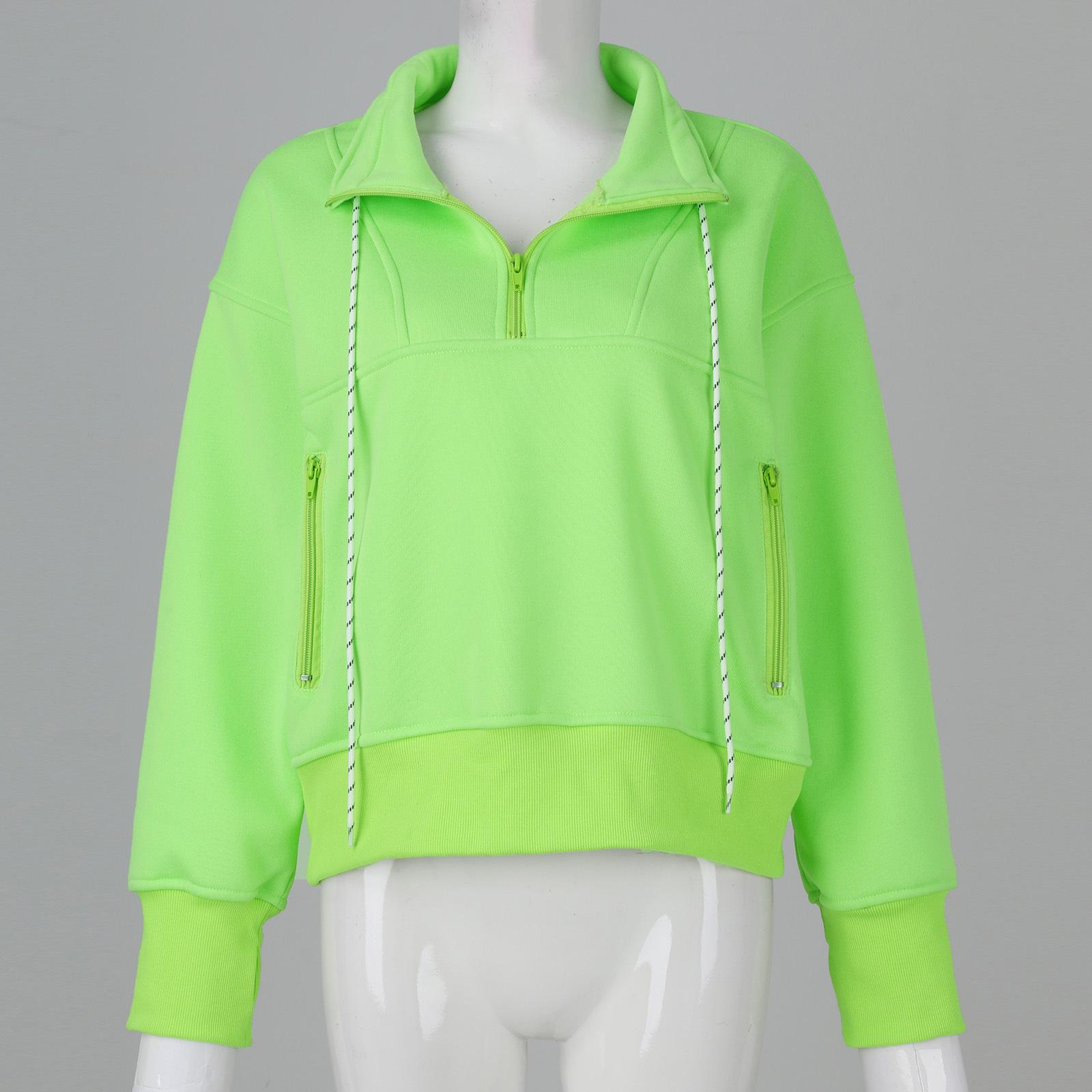 Suéter de color sólido con cuello de otoño e invierno de 2023, con bolsillo y cremallera, informal, de manga larga y corta con agujero para el pulgar para mujer