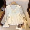 Camisa informal de manga larga con solapa blanca de nicho de alta gama para mujer, nueva blusa de abrigo fina, ligera y madura de primavera y otoño.