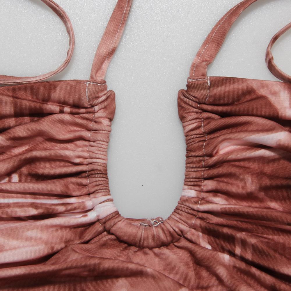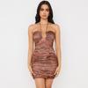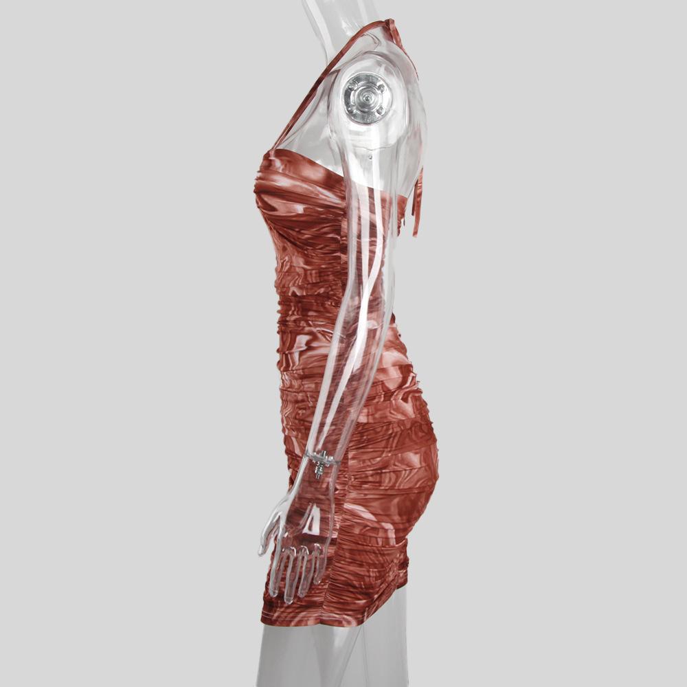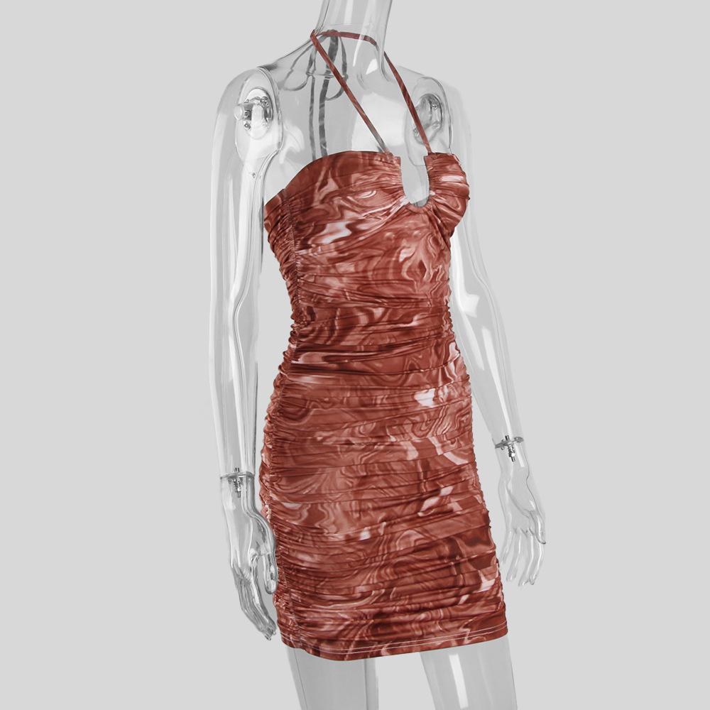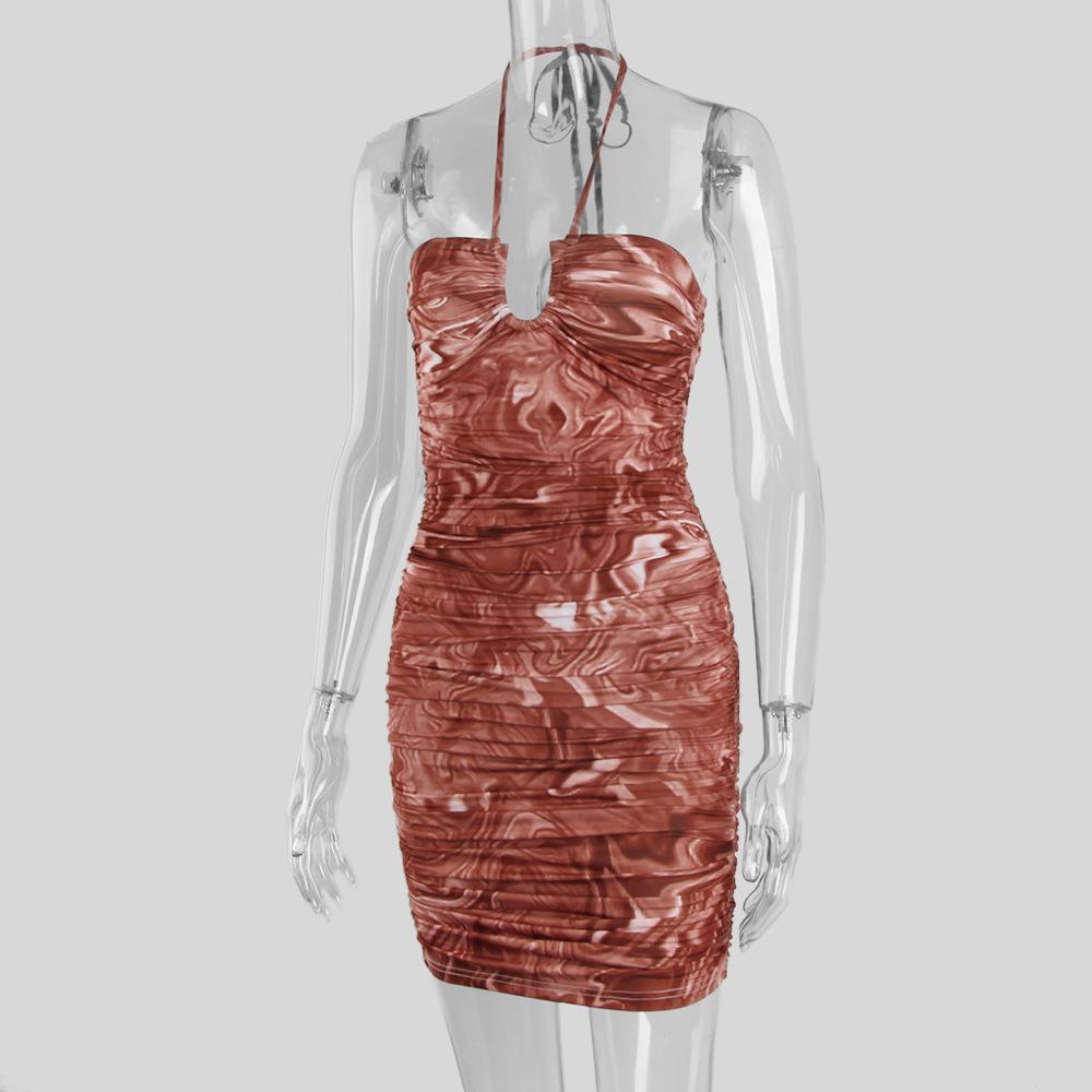 Nuevo vestido sexy europeo y americano corto con cuello ajustado, plisado y estampado transfronterizo, sin tirantes ni espalda descubierta, venta al por mayor de comercio exterior