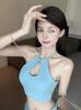 Sentido del Diseño Sexy Combinable Calado Cuello Halter Ajustado Adelgazante Corto Top Camisola sin Espalda para Mujer Verano