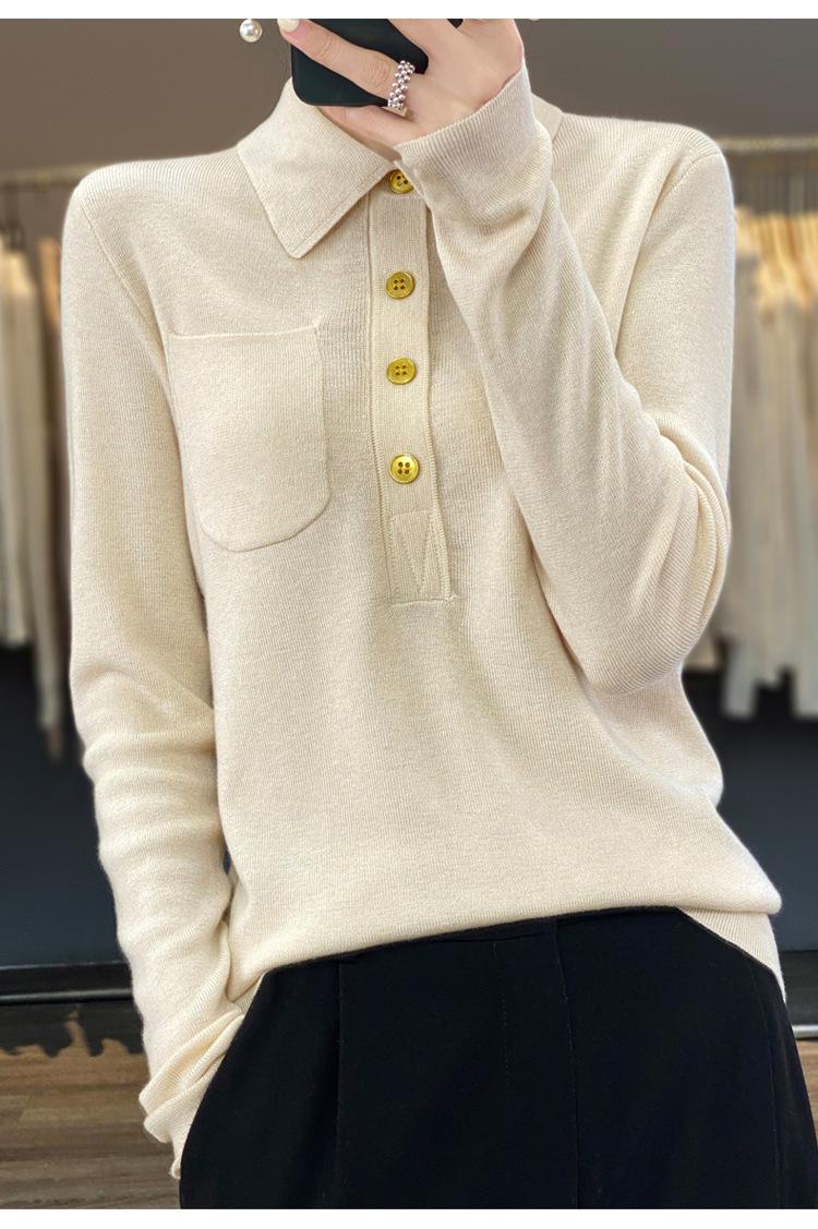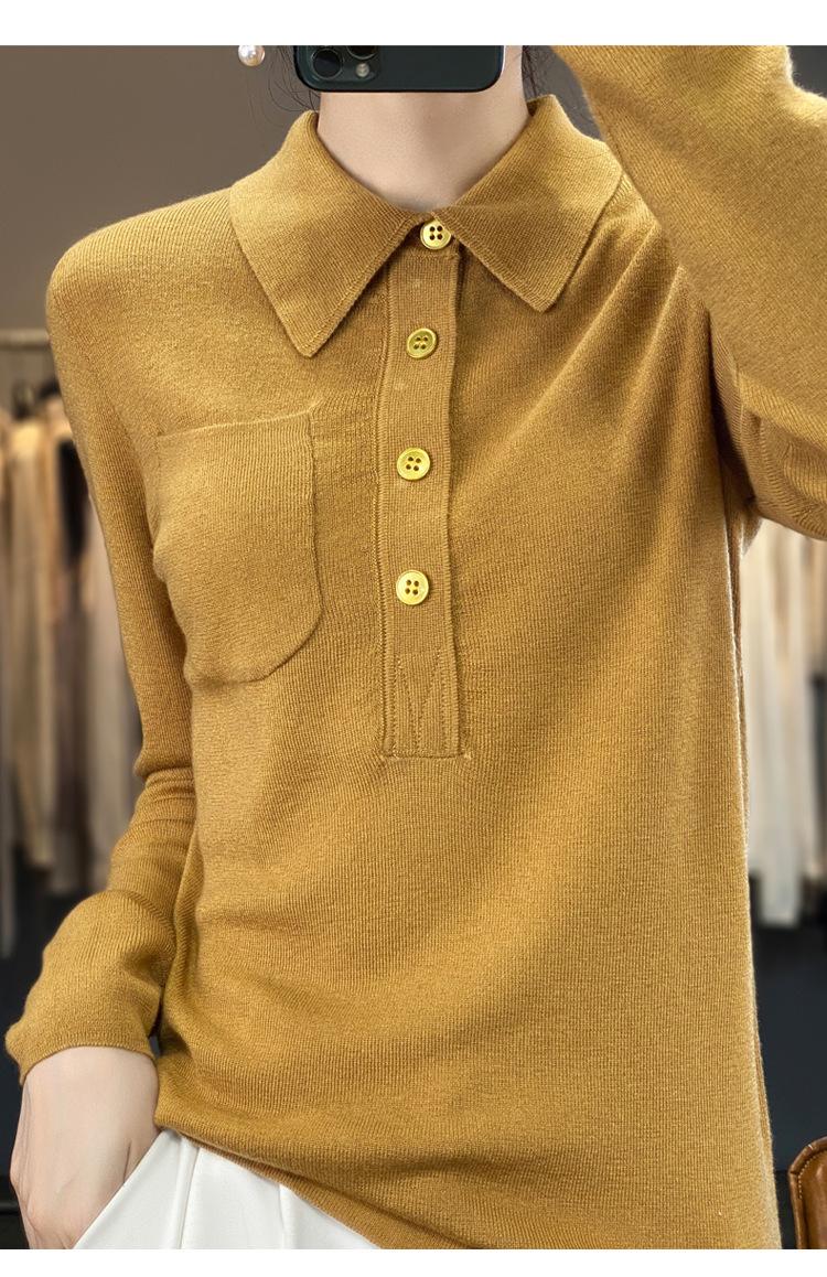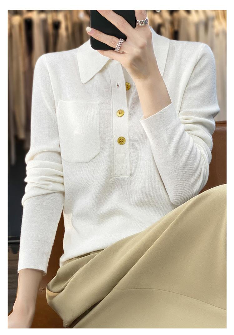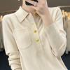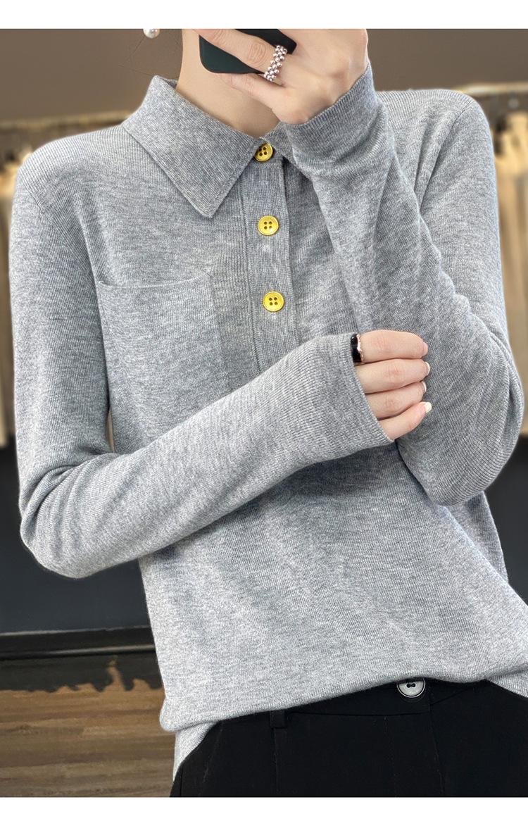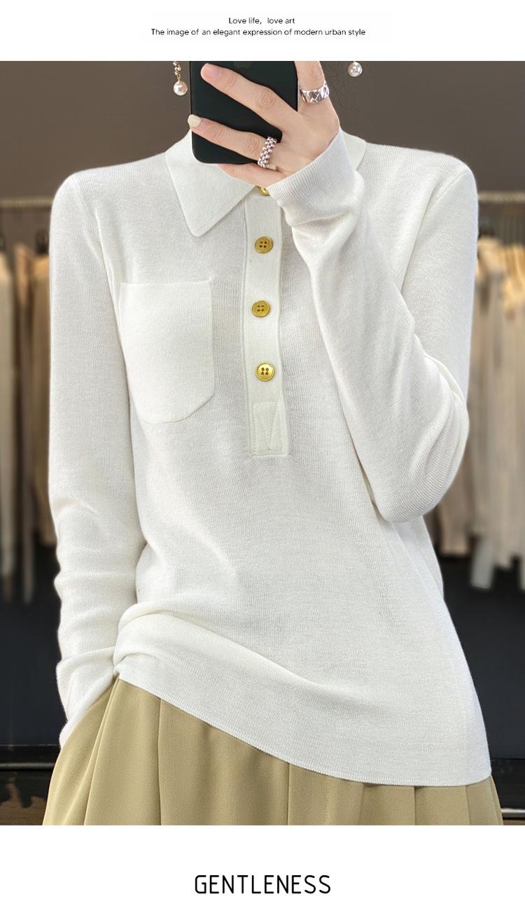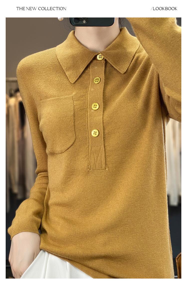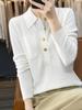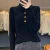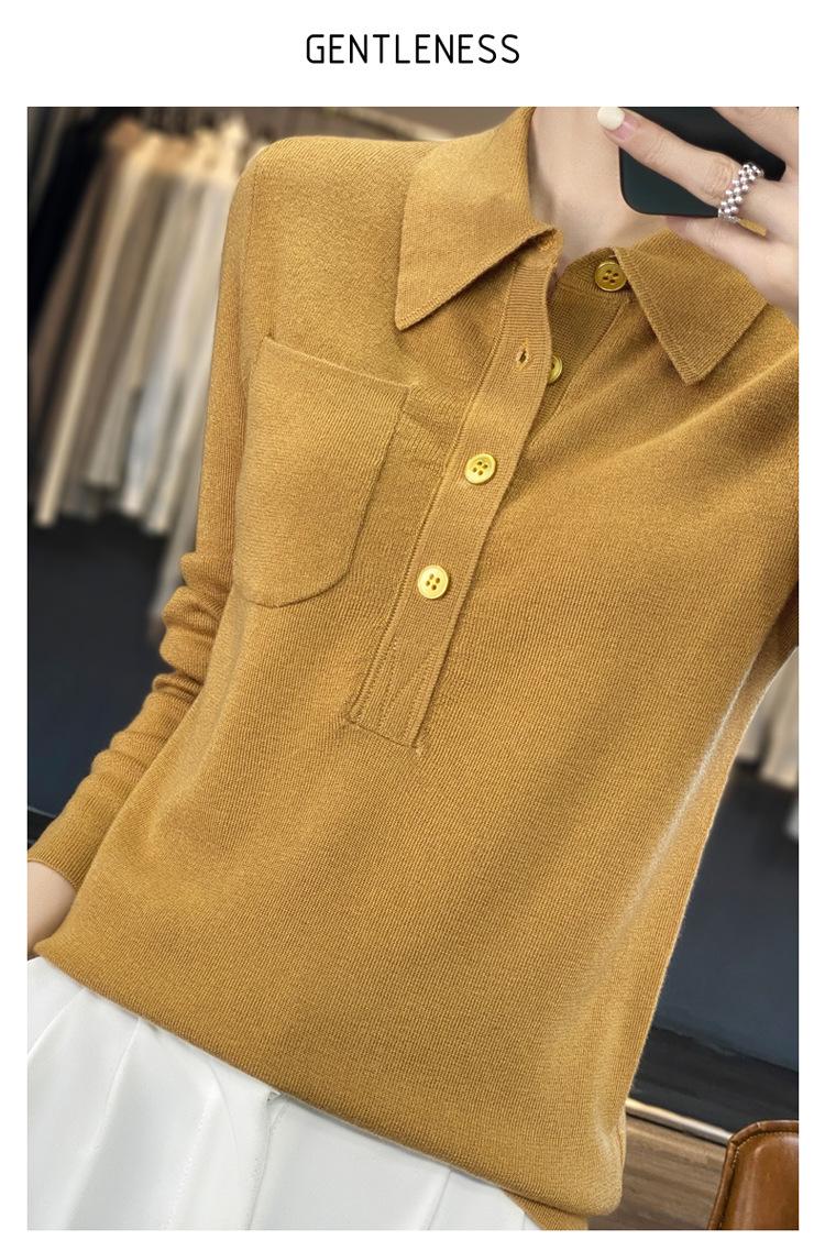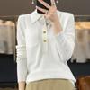 Suéter de Punto de Lana Merina Pura de Primavera y Otoño con Cuello Polo para Mujer, Moda Femenina, Corte Ajustado, Manga Larga, Top Base para Mujer