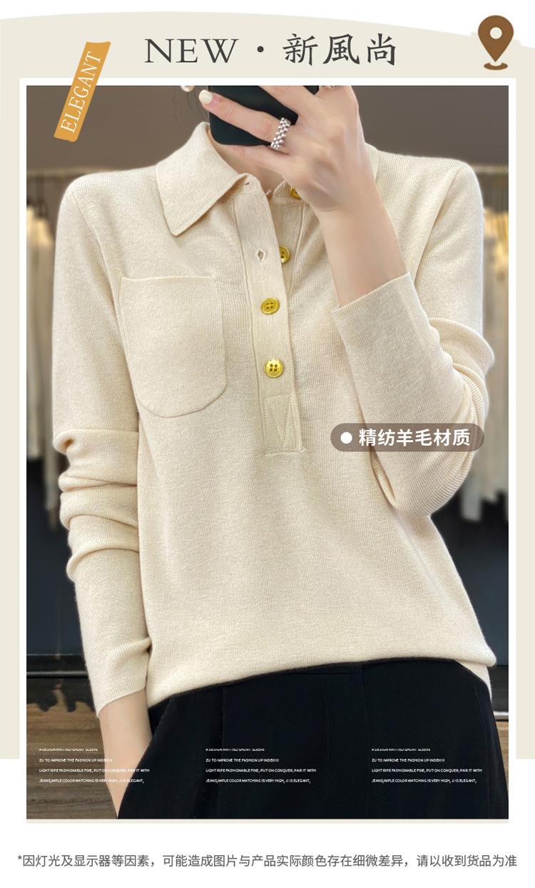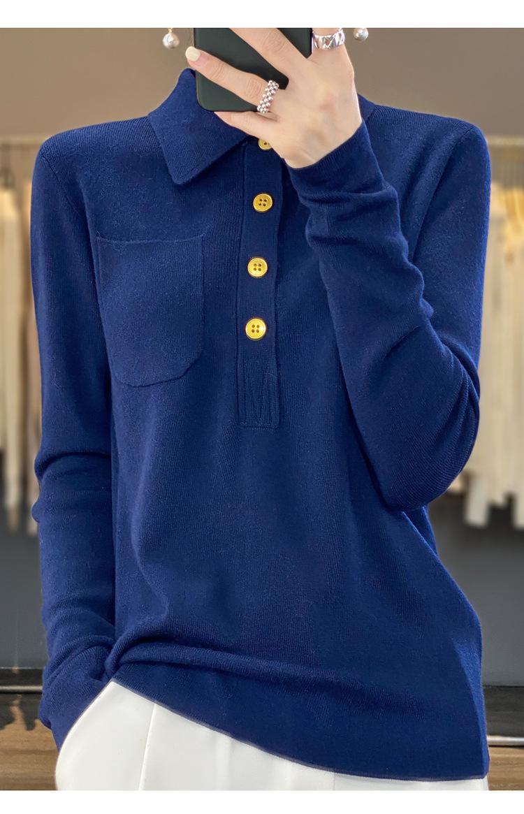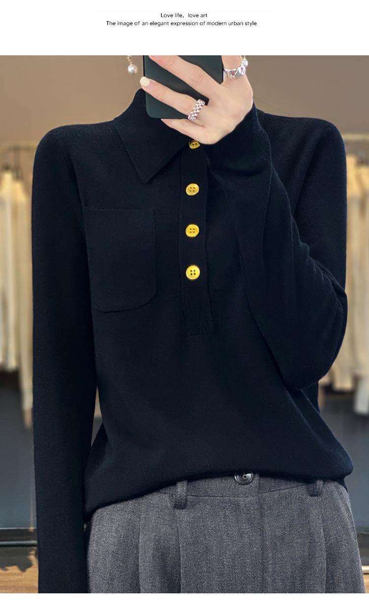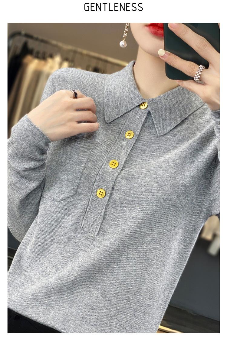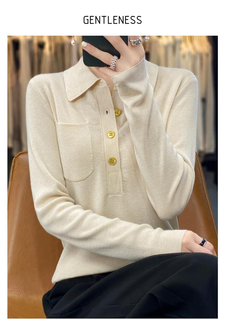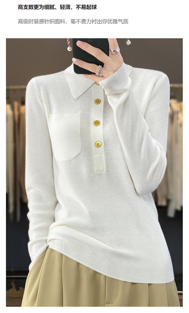 Suéter de Punto de Lana Merina Pura de Primavera y Otoño con Cuello Polo para Mujer, Moda Femenina, Corte Ajustado, Manga Larga, Top Base para Mujer