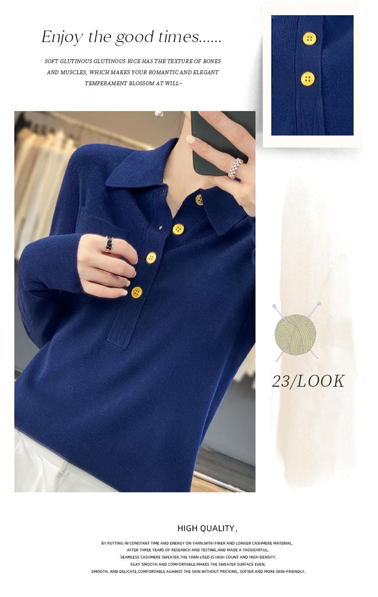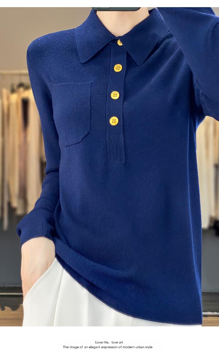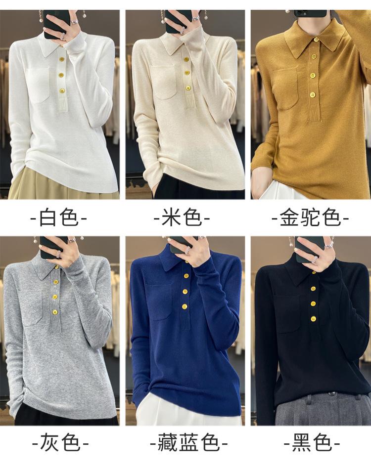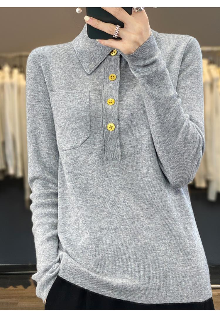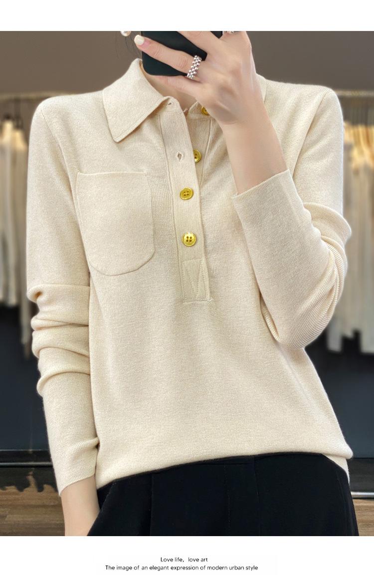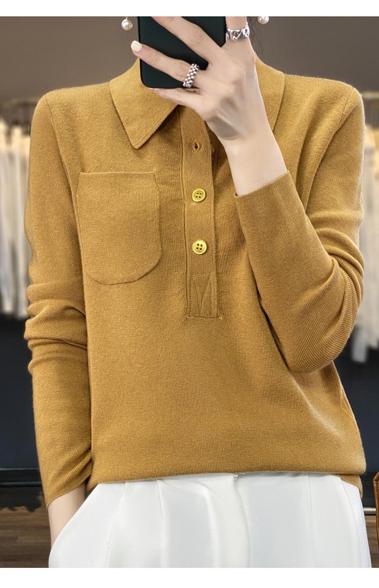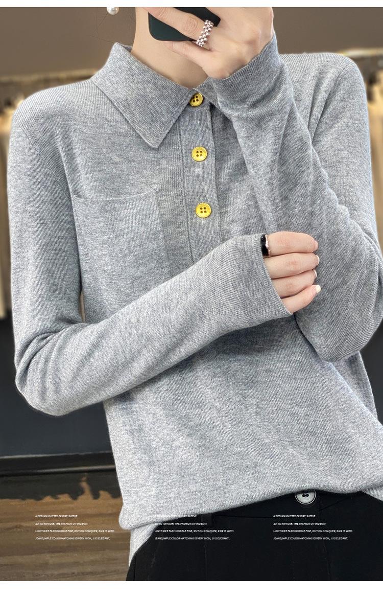 Suéter de Punto de Lana Merina Pura de Primavera y Otoño con Cuello Polo para Mujer, Moda Femenina, Corte Ajustado, Manga Larga, Top Base para Mujer