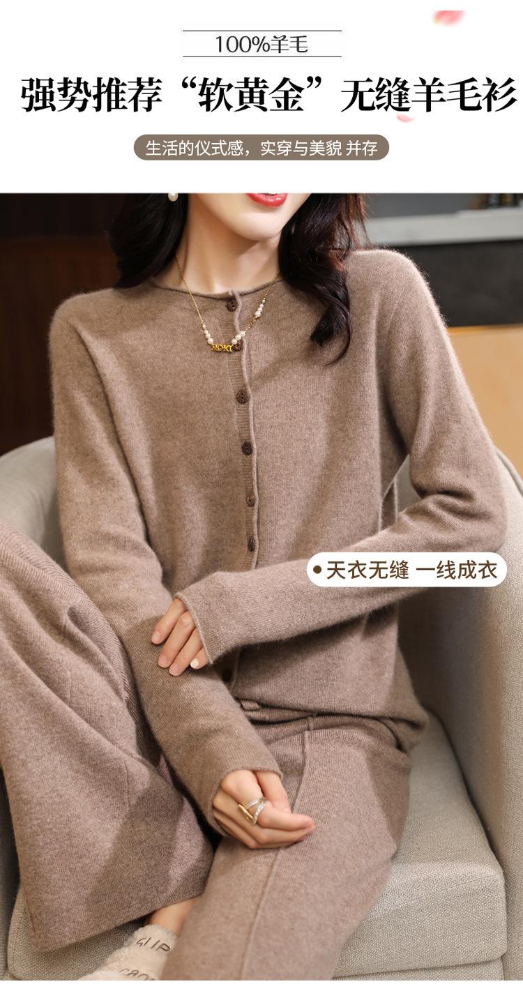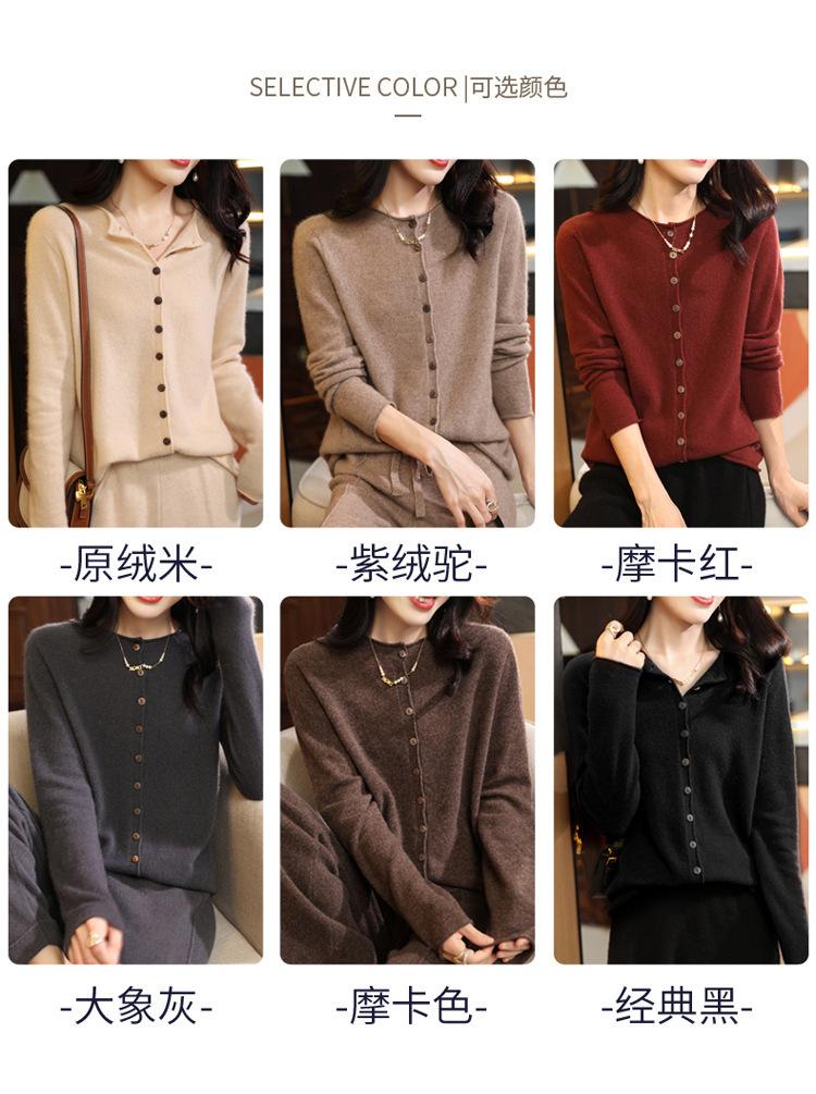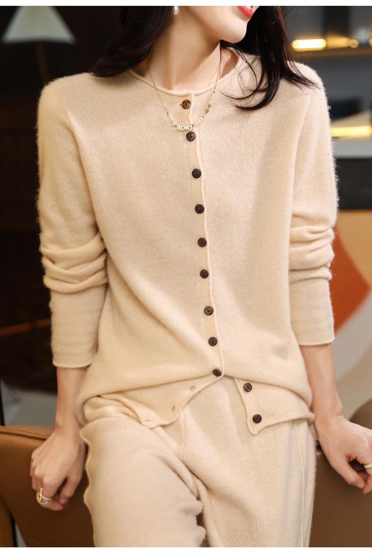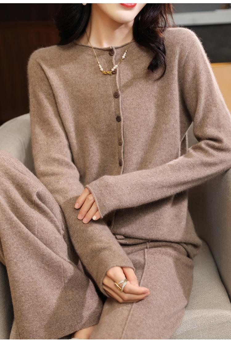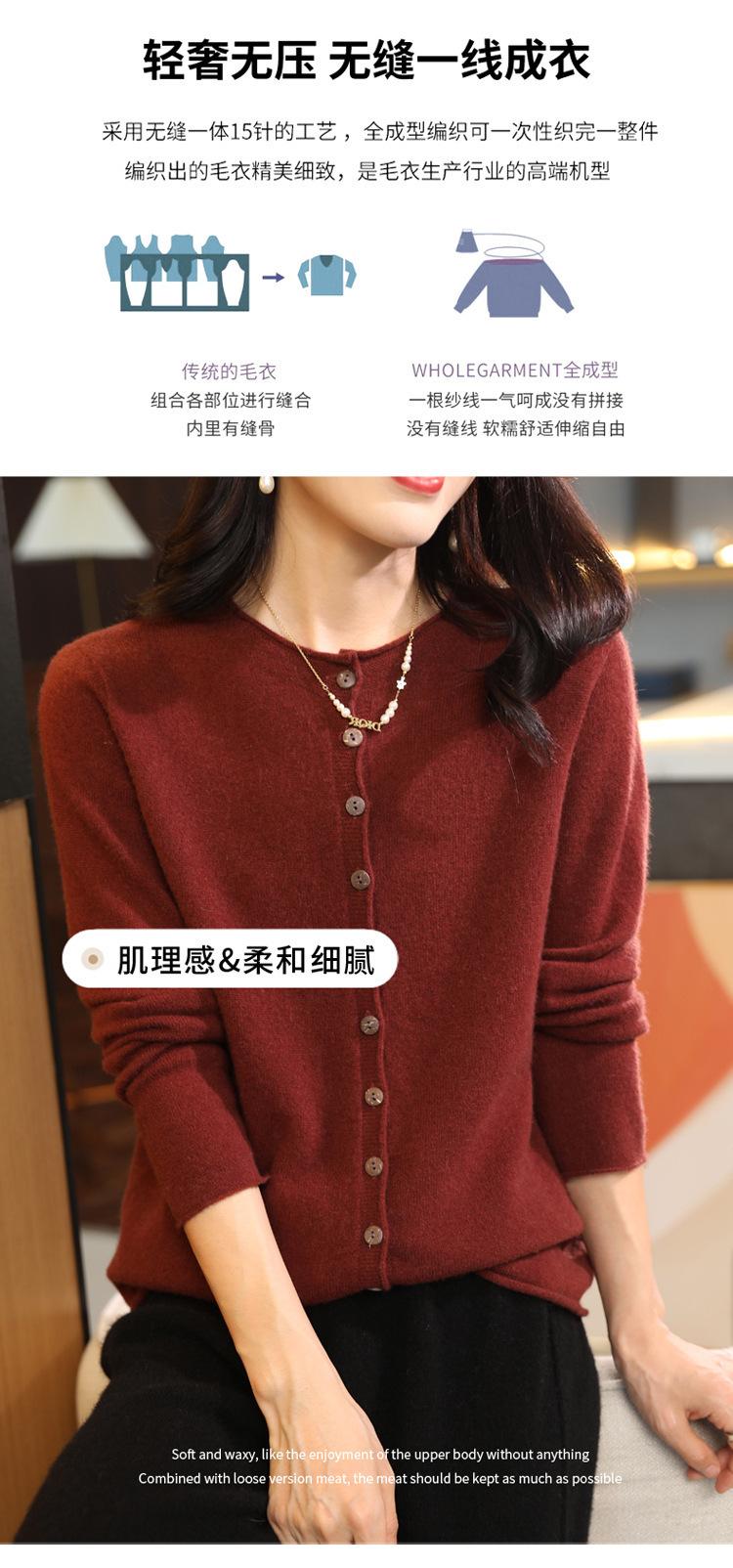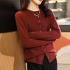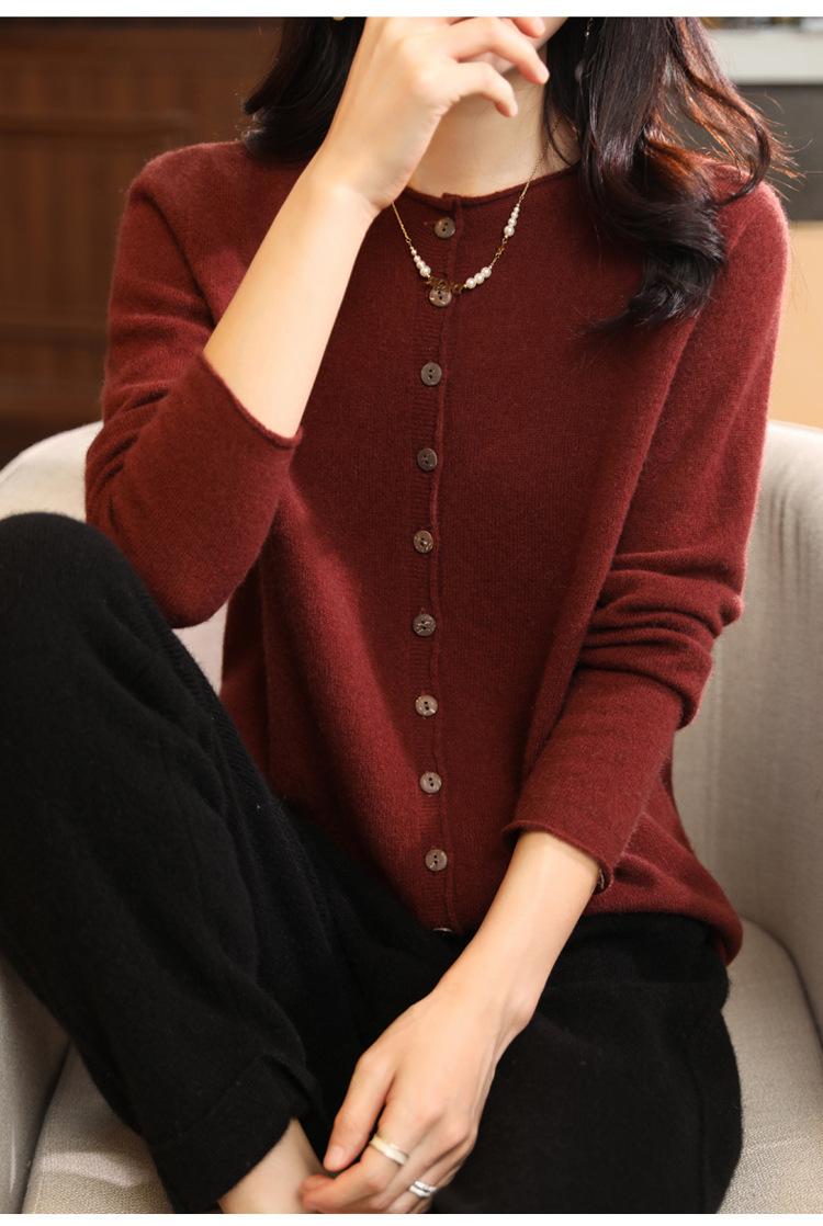 Ropa de primera línea para mujer nuevo suéter 100% lana merino de cuello redondo cárdigan suéter holgado adelgazante versátil abrigo de punto