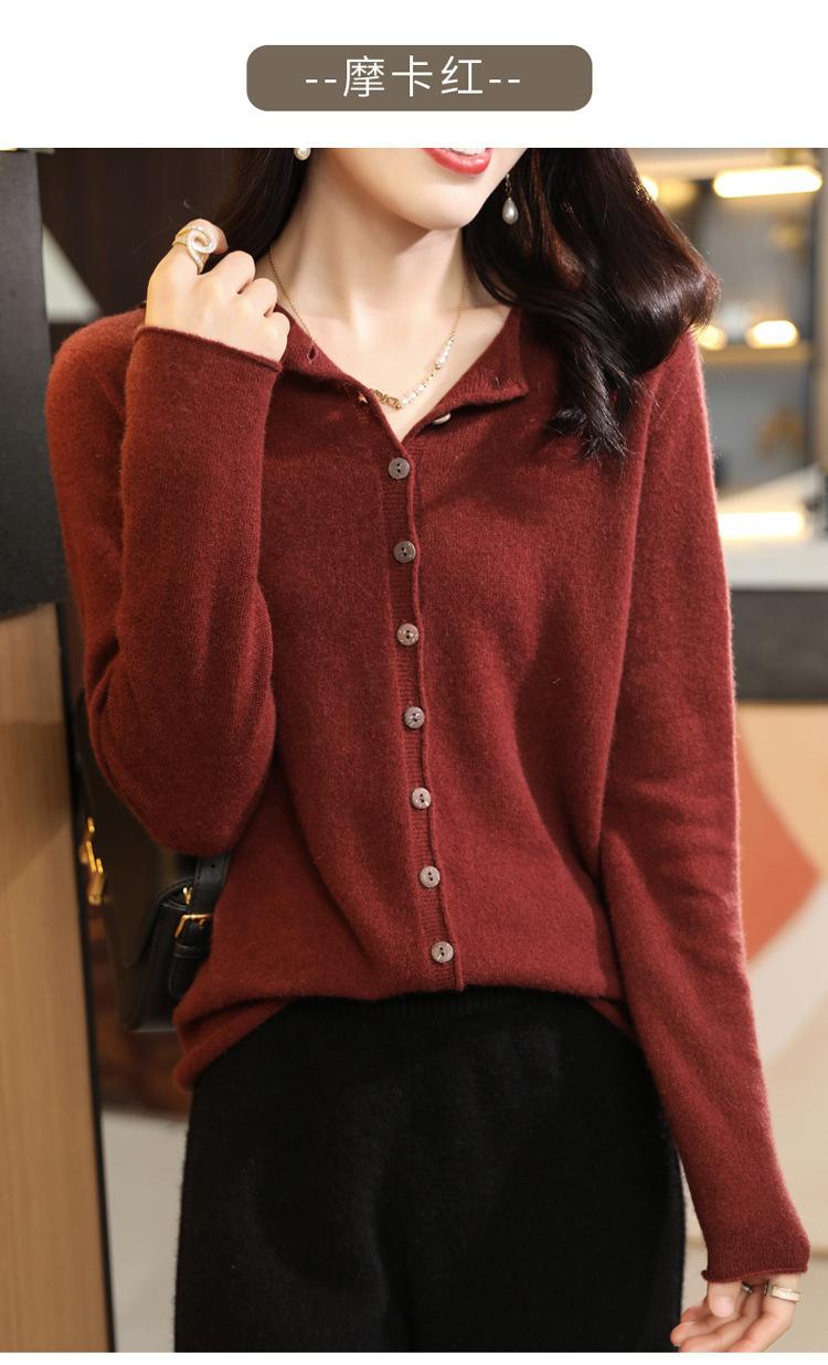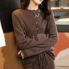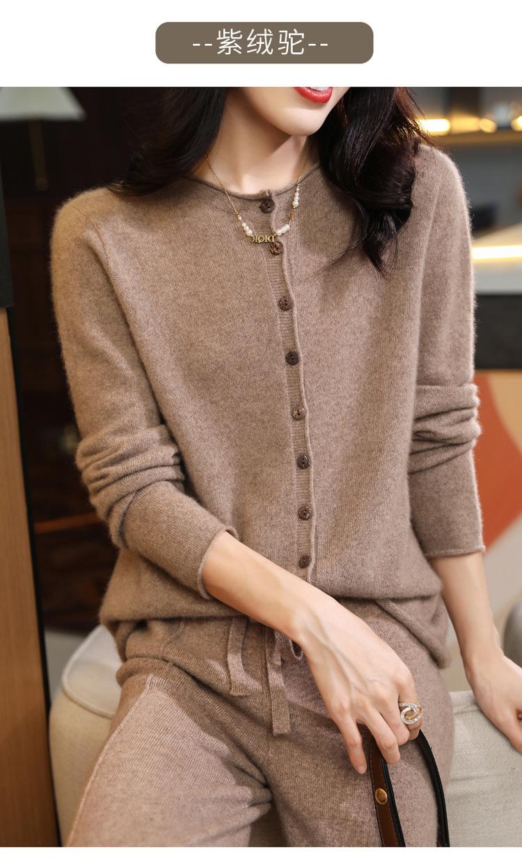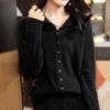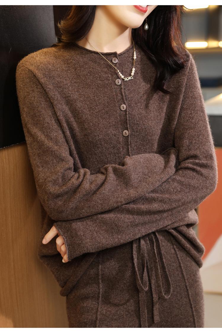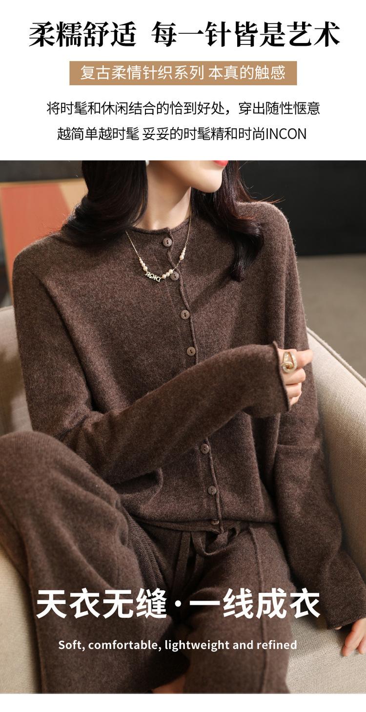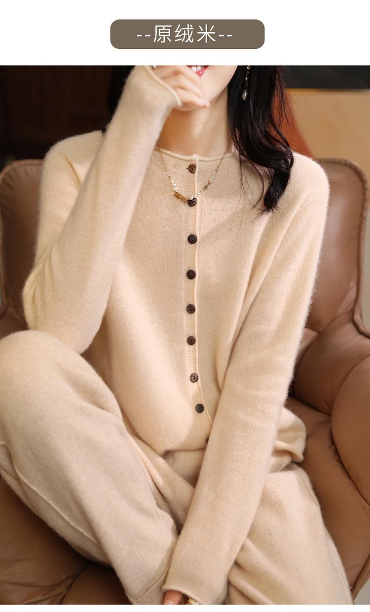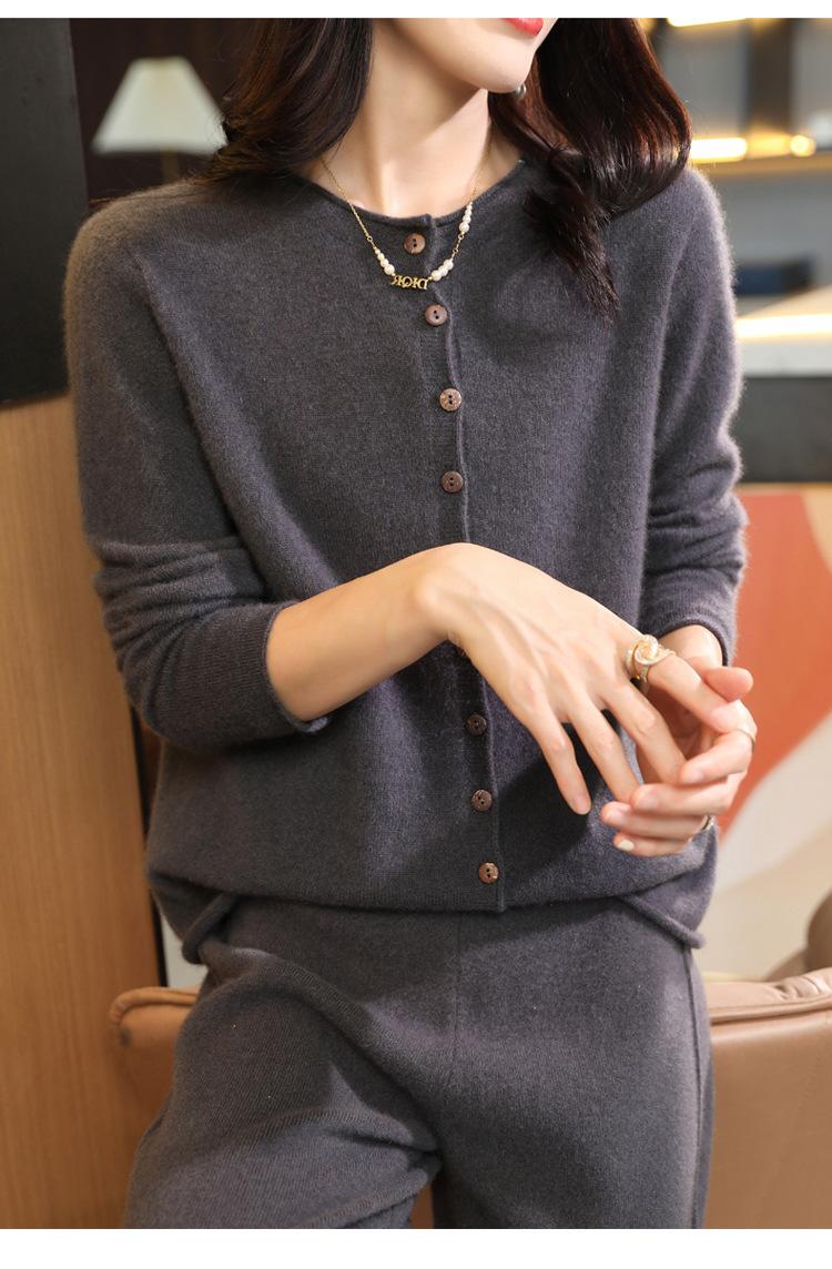 Ropa de primera línea para mujer nuevo suéter 100% lana merino de cuello redondo cárdigan suéter holgado adelgazante versátil abrigo de punto