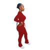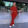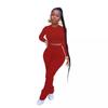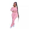 Amazon comercio exterior transfronterizo ropa nueva para mujer nuevo europeo y americano top de manga larga con cuello redondo pantalones ajustados conjunto de dos piezas de color sólido