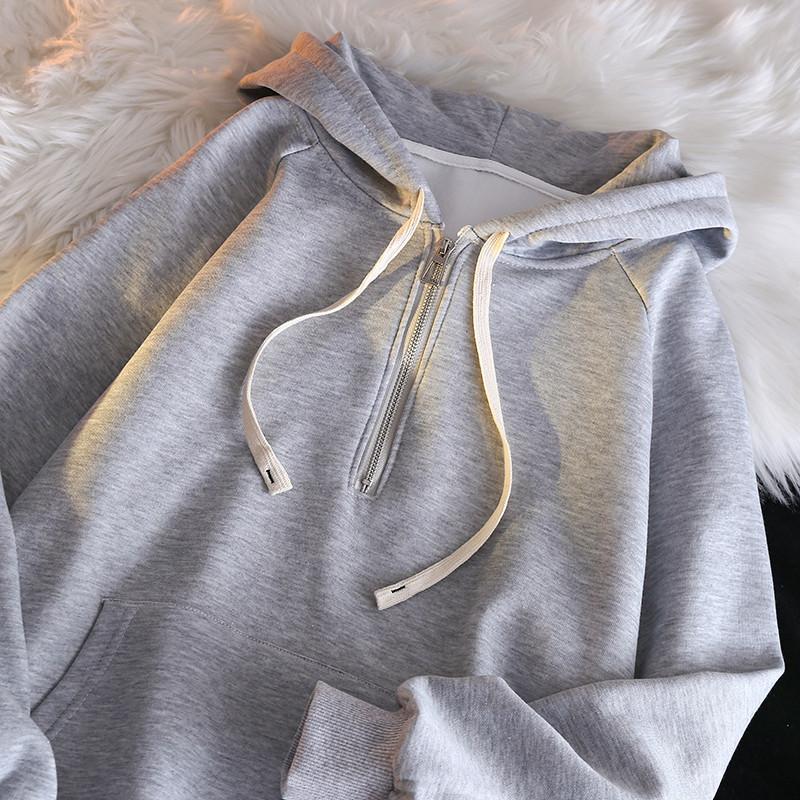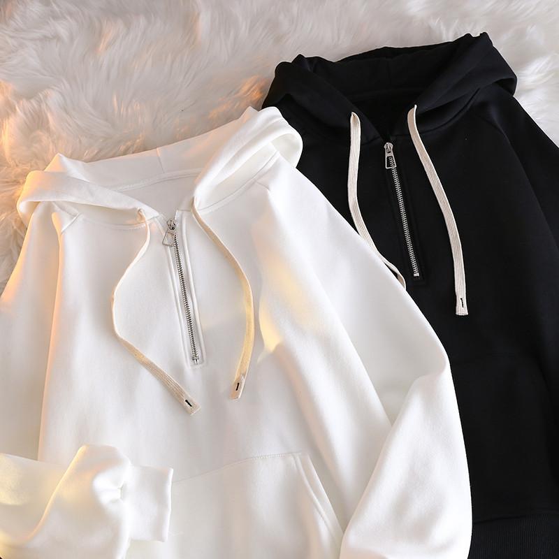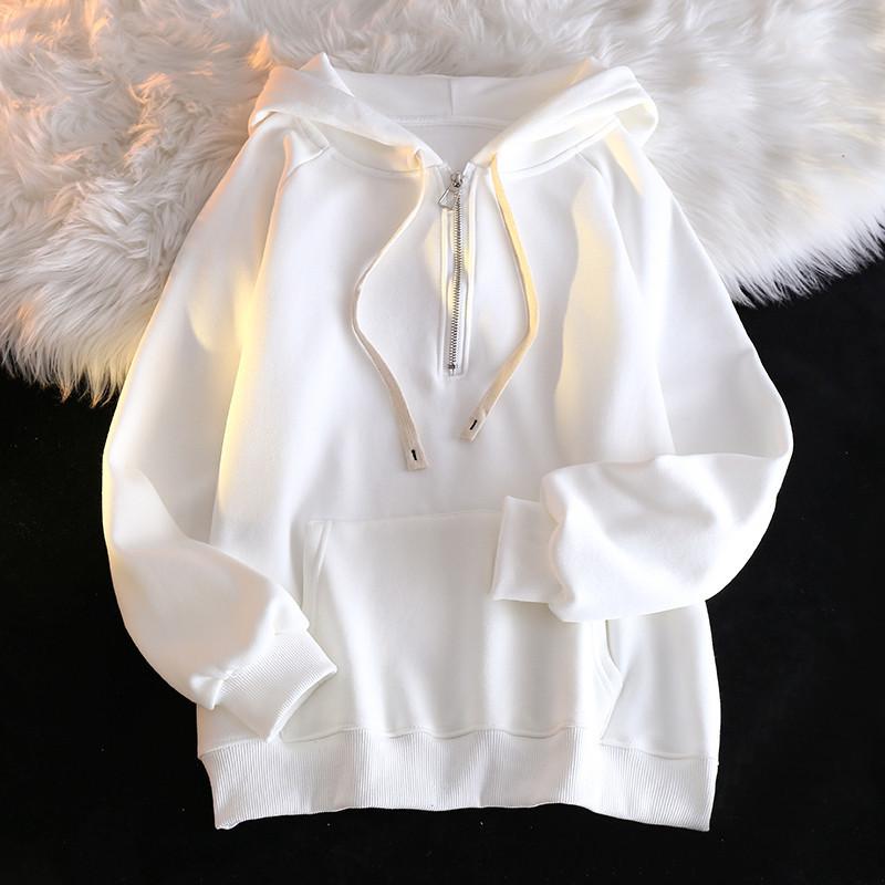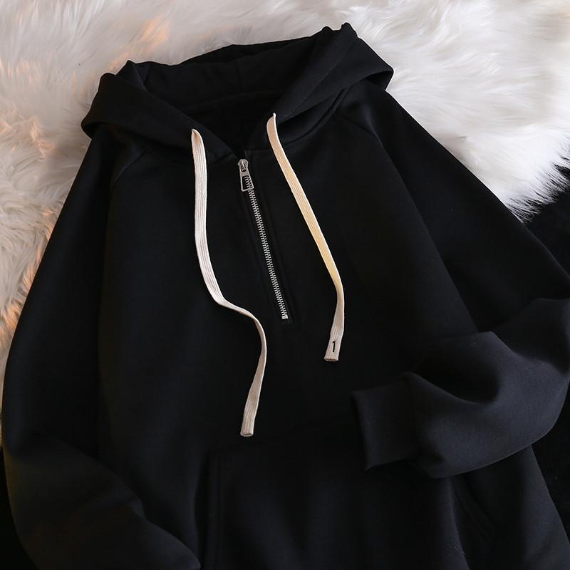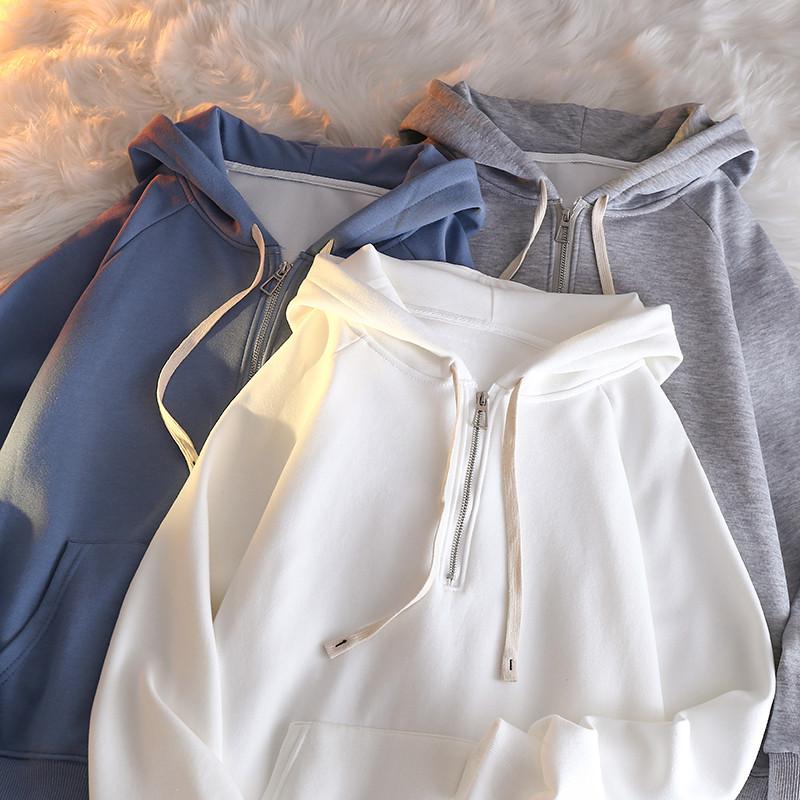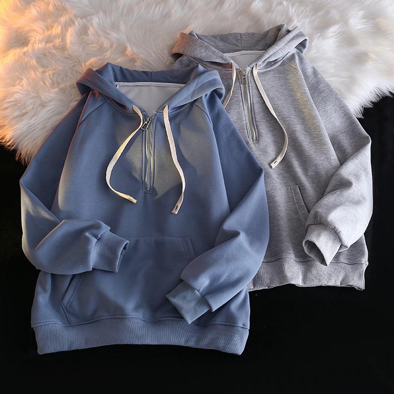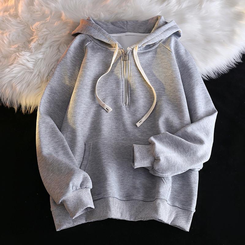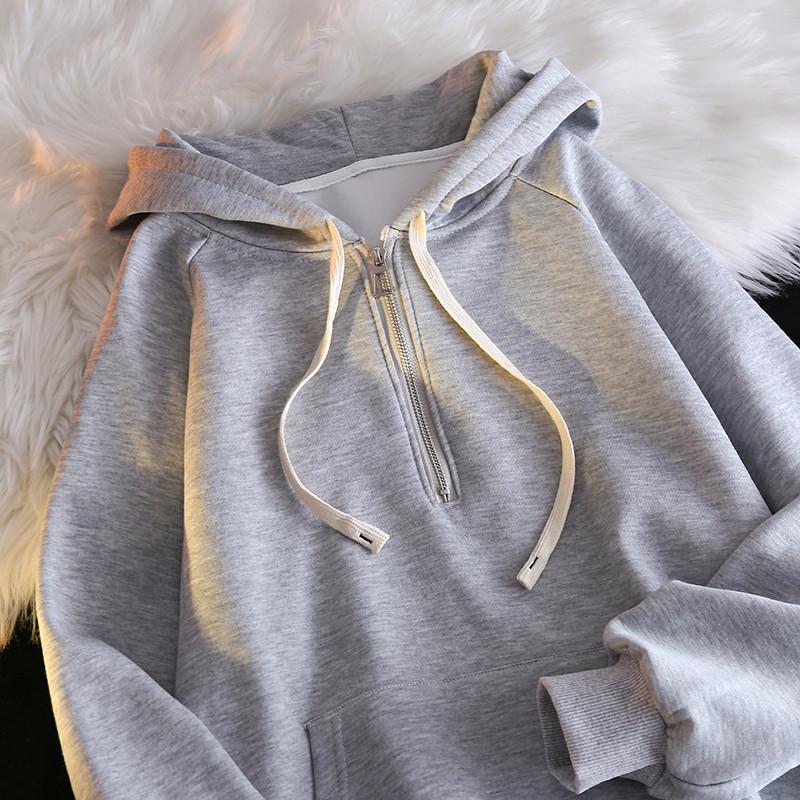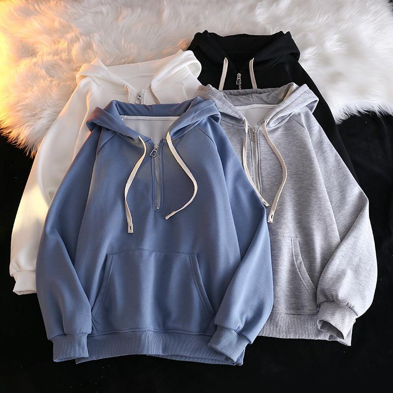 Sudadera de forro polar con capucha y media cremallera transfronteriza para mujer, delgada y holgada, nueva moda de marca, estilo Hong Kong, top, chaqueta de manga larga