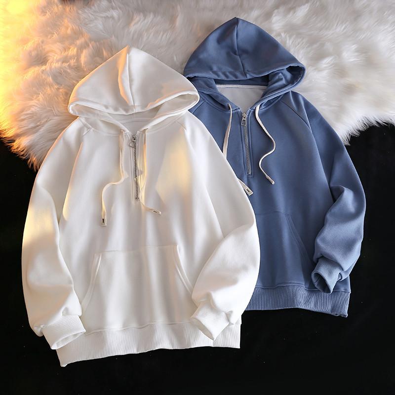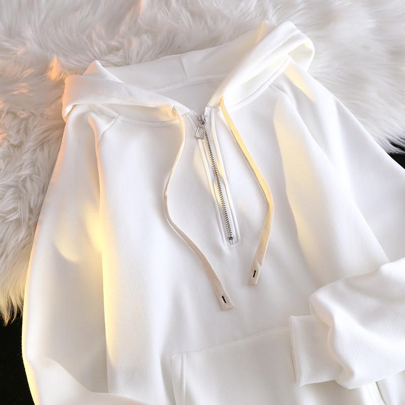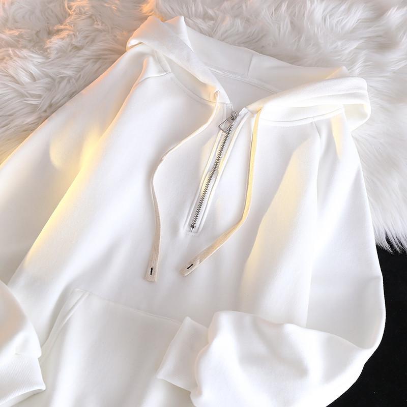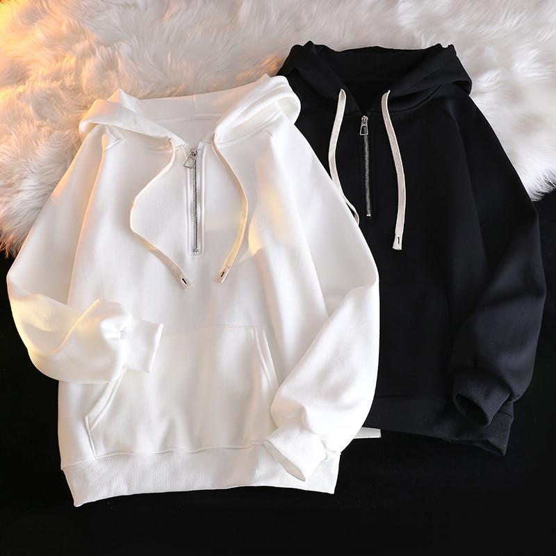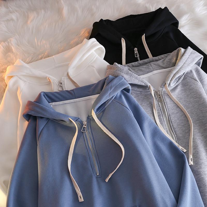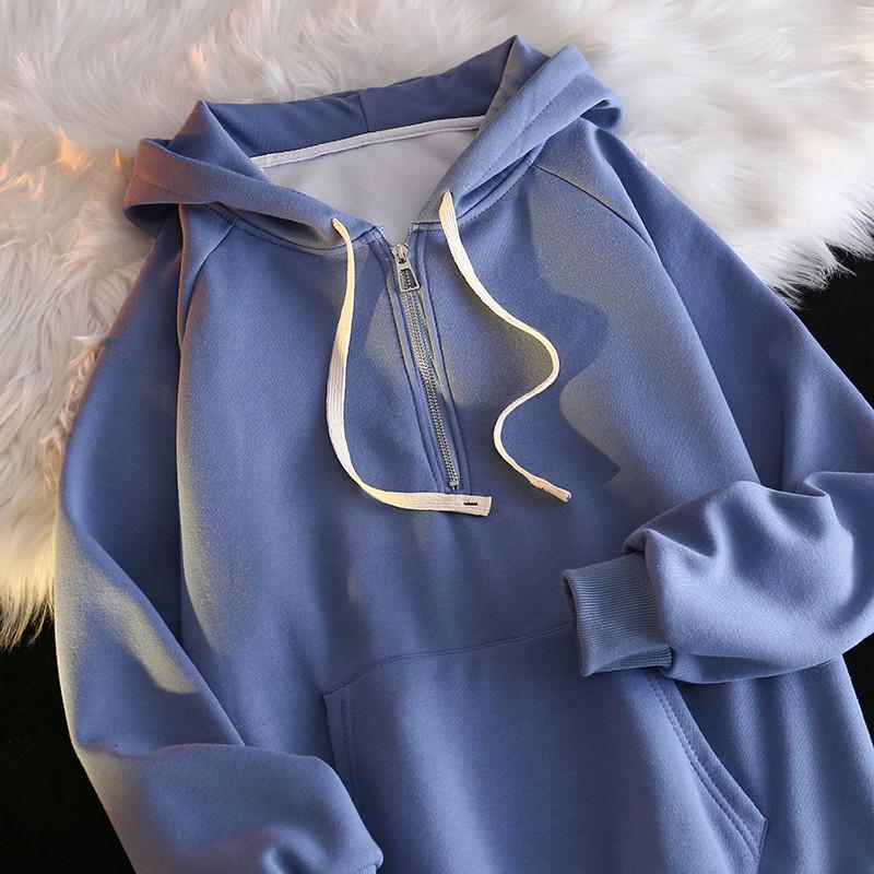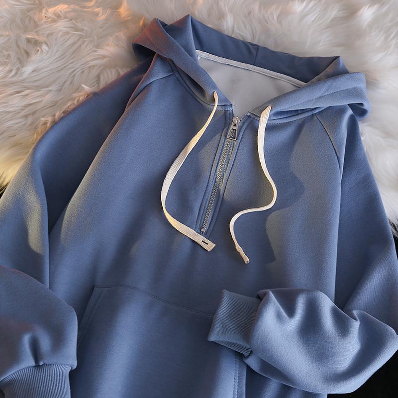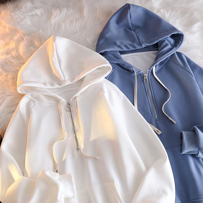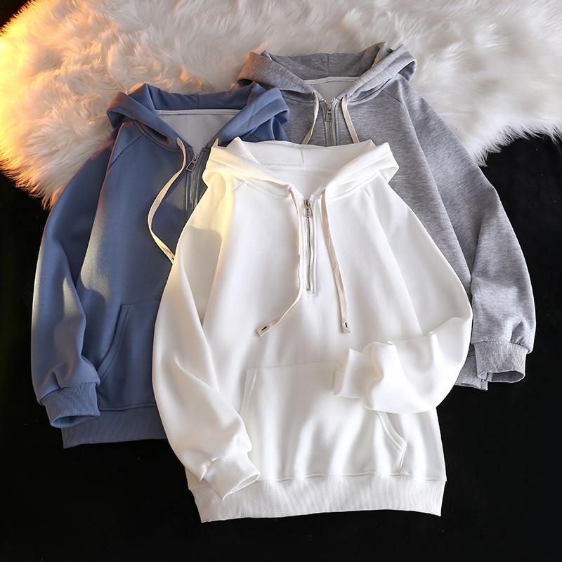 Sudadera de forro polar con capucha y media cremallera transfronteriza para mujer, delgada y holgada, nueva moda de marca, estilo Hong Kong, top, chaqueta de manga larga