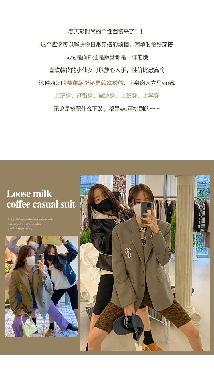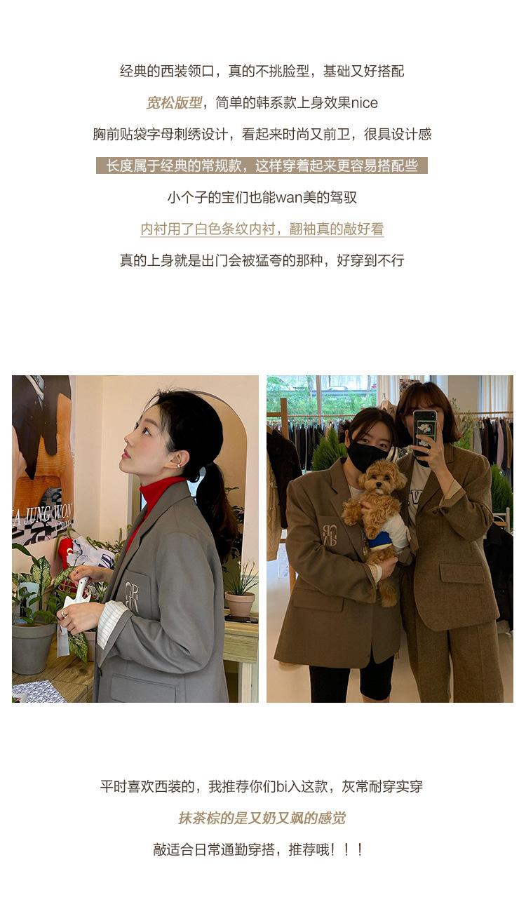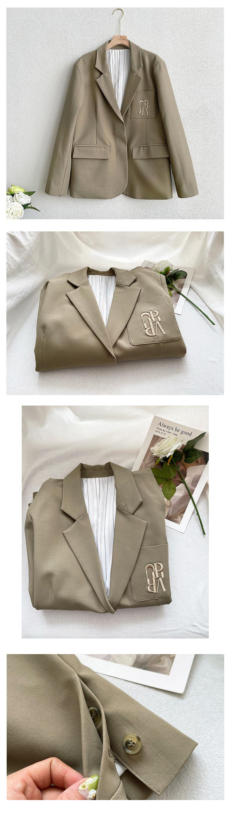 Blazer Elegante Bordado Estilo Coreano 2025 Otoño Nuevo Estilo Universitario Británico Marrón Holgado Casual Traje