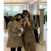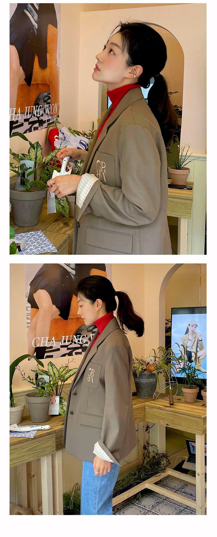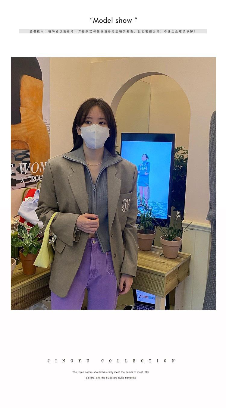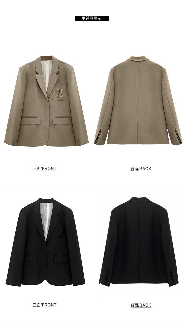 Blazer Elegante Bordado Estilo Coreano 2025 Otoño Nuevo Estilo Universitario Británico Marrón Holgado Casual Traje