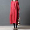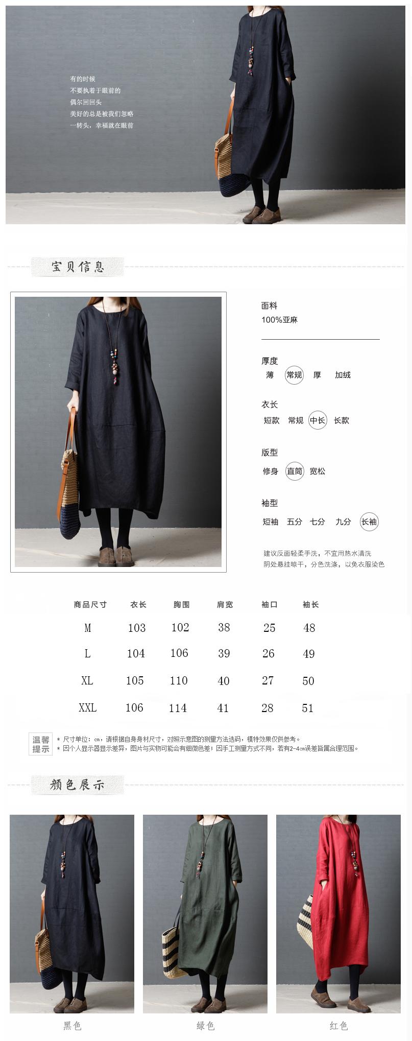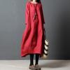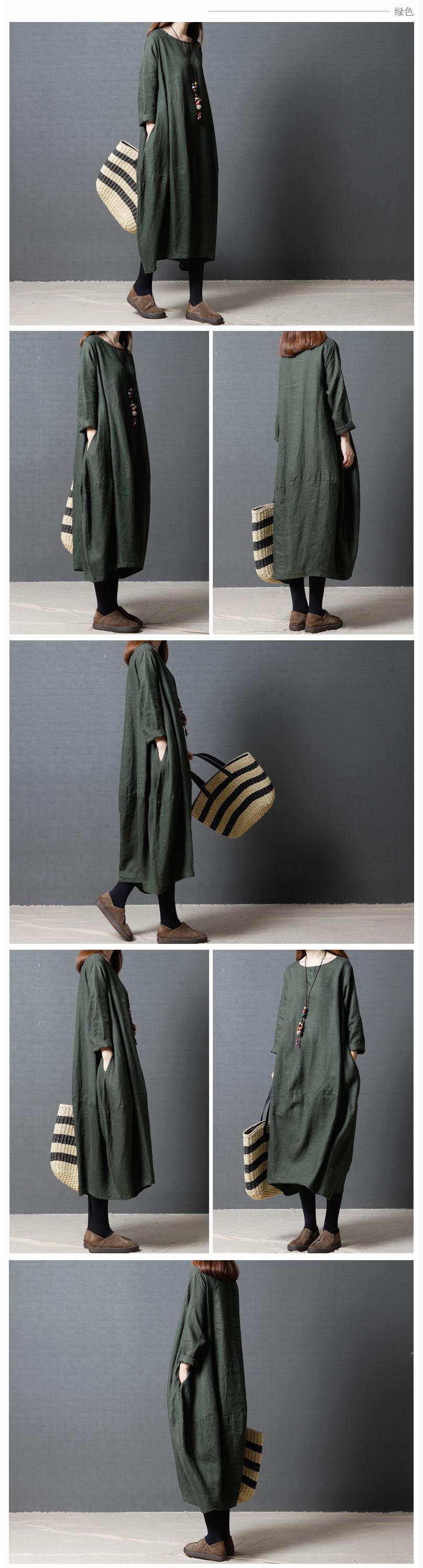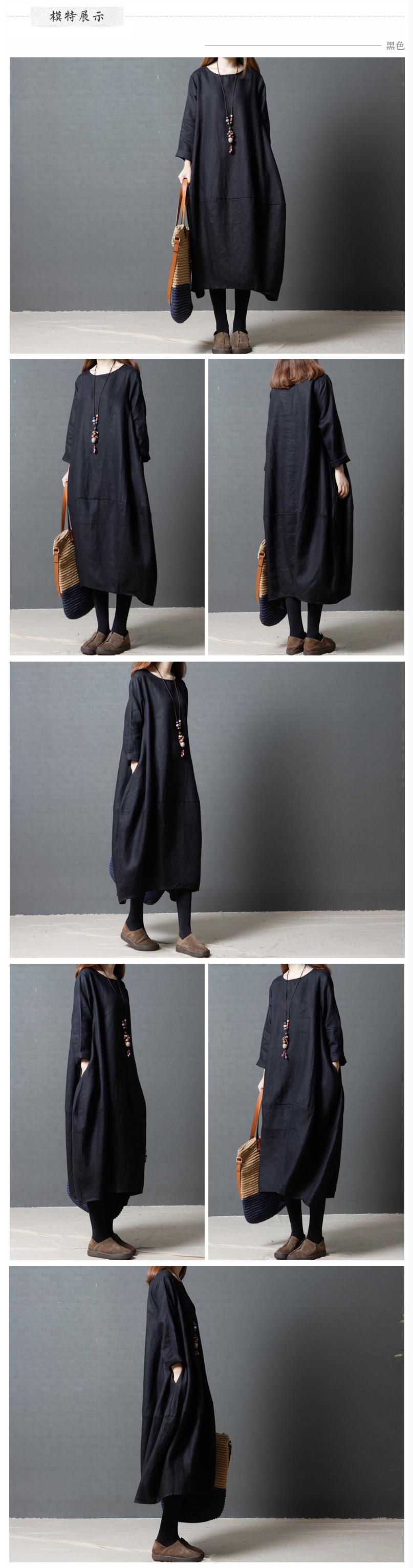 2025 Nuevo Otoño Talla Grande para Mujer Estilo Coreano Corte Holgado Adelgazante Algodón y Lino Largo Medio Manga Larga Cuello Redondo Vestido Falda Larga