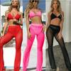 Pantalones Acampanados Micro Acampanados de Encaje Plisado de Cintura Baja con Cordón de Estilo Americano para Chica Caliente para Mujer 2024 Nuevos Pantalones Casuales Elásticos