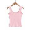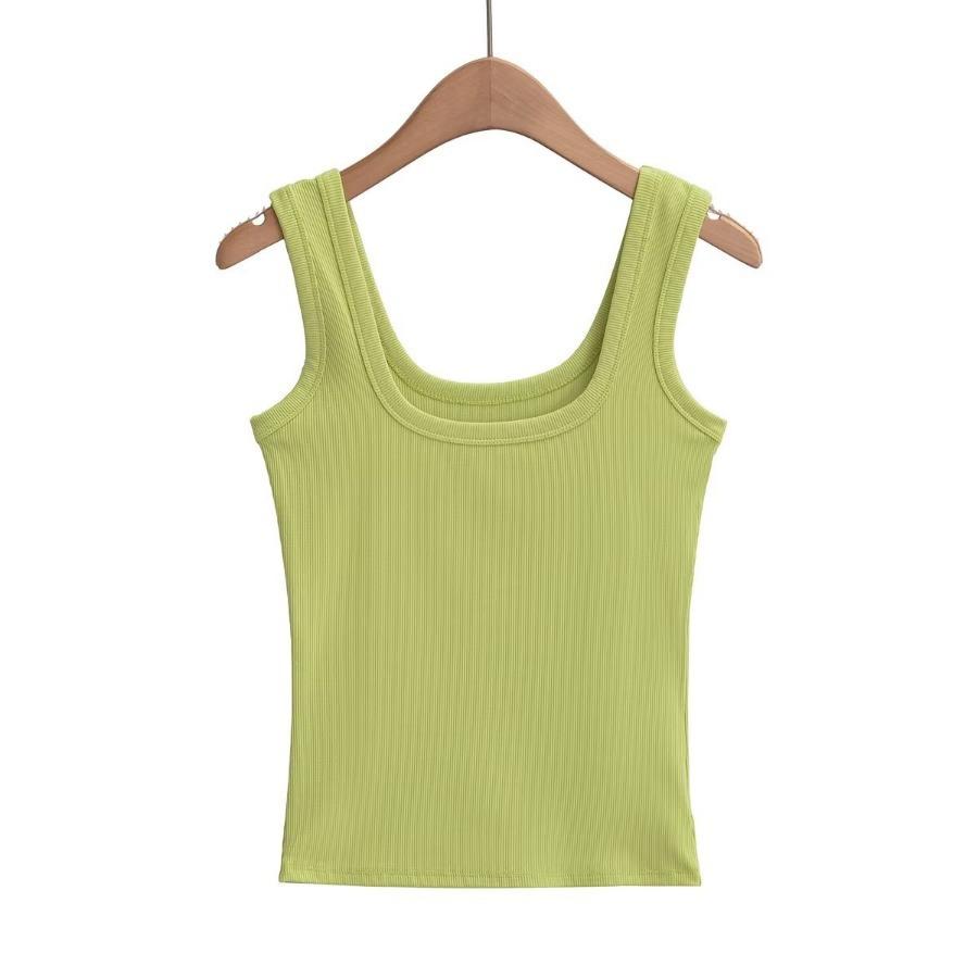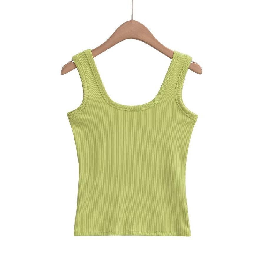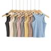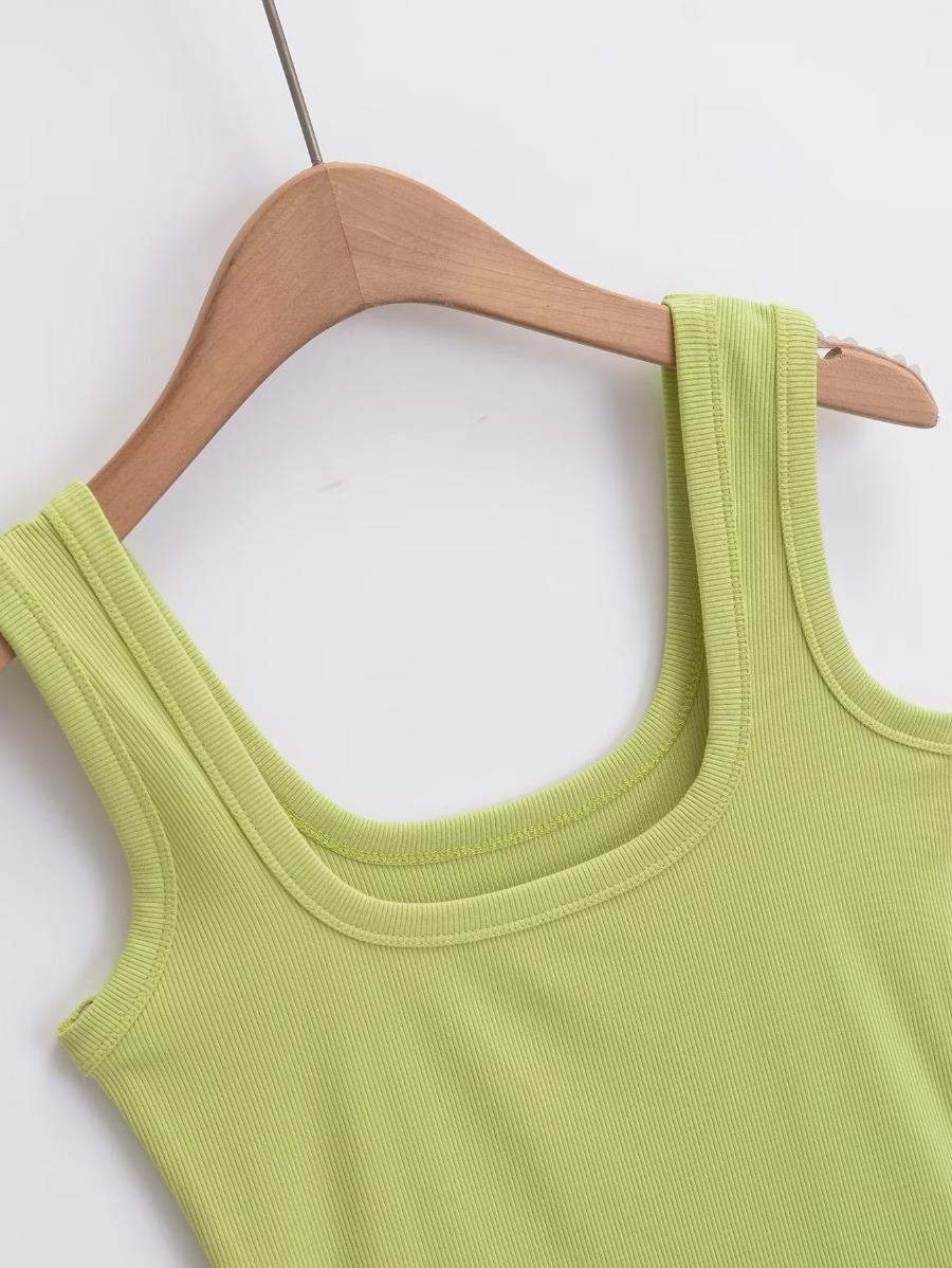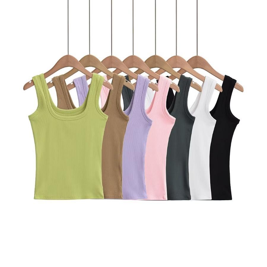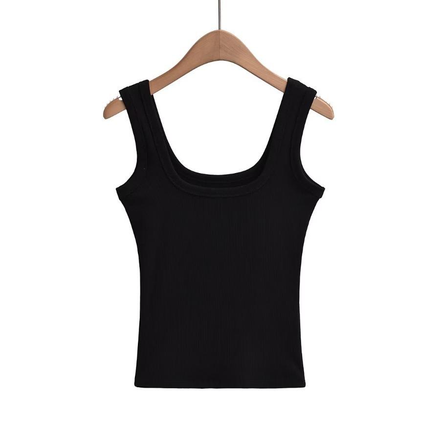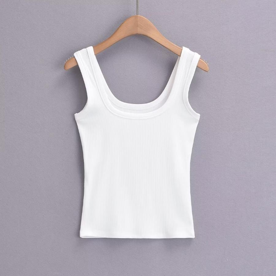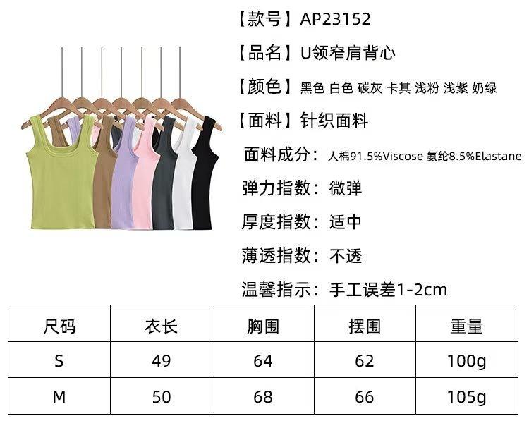 Chaleco corto sin mangas estilo europeo y americano con cuello en U, color liso, ajustado, con tirantes y hombros estrechos para mujer, verano 2023