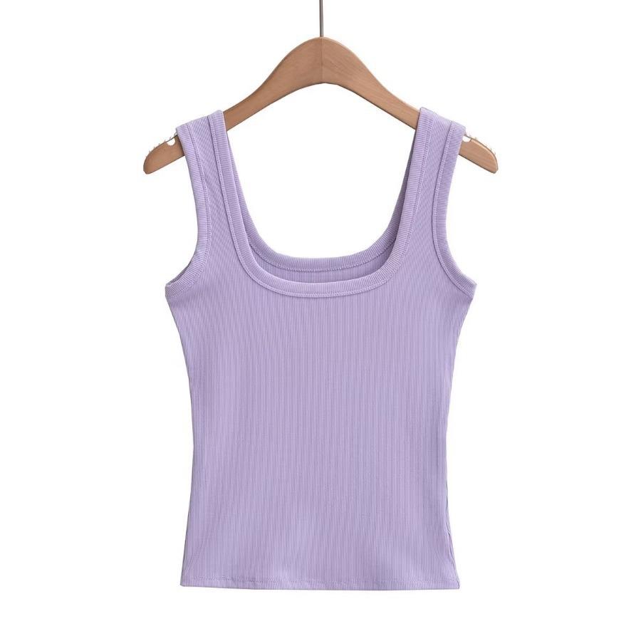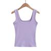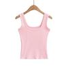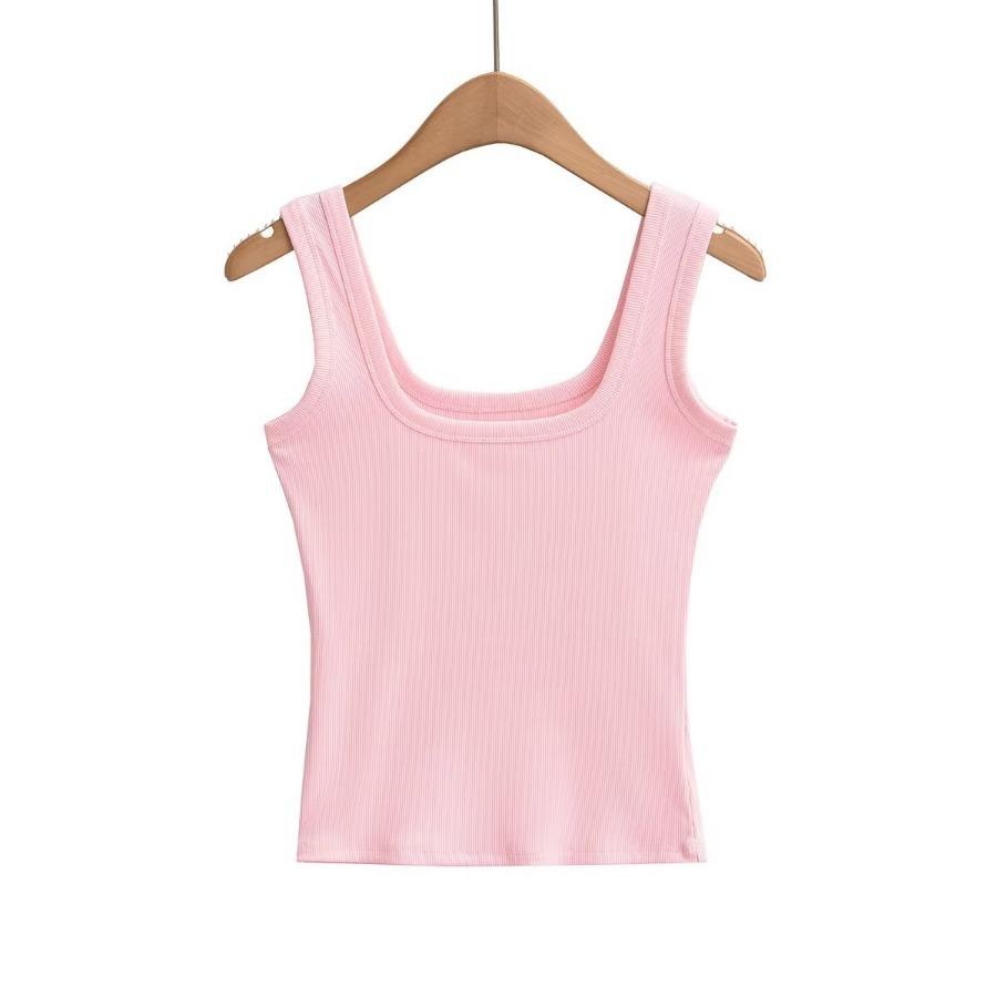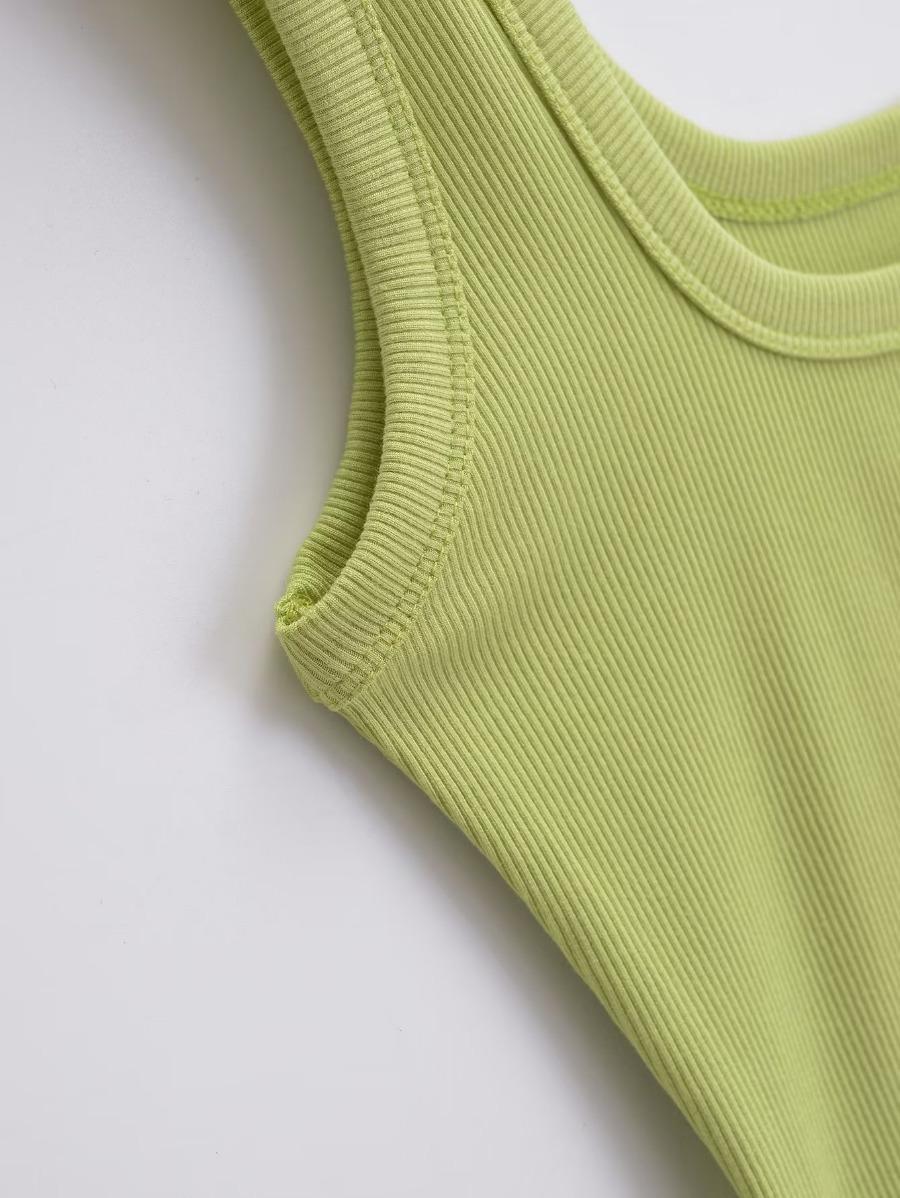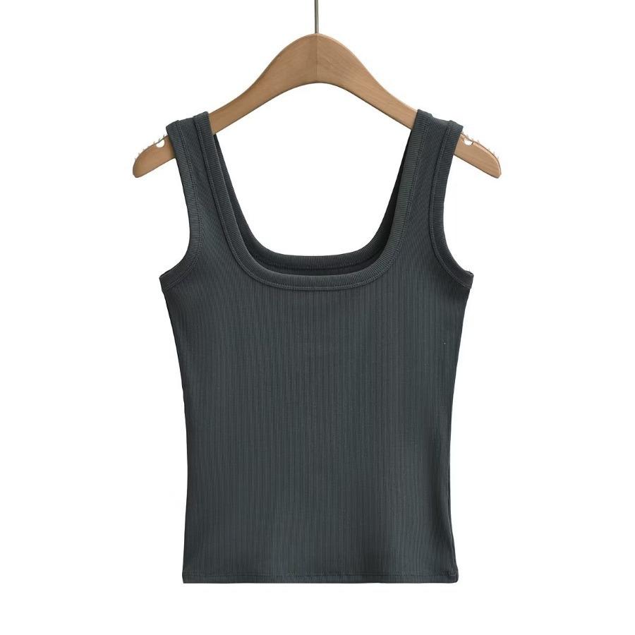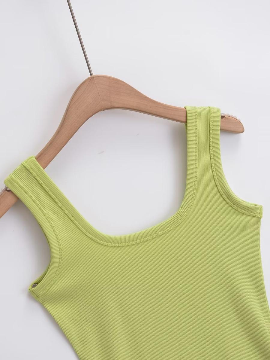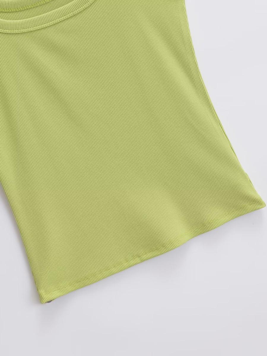 Chaleco corto sin mangas estilo europeo y americano con cuello en U, color liso, ajustado, con tirantes y hombros estrechos para mujer, verano 2023