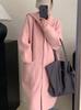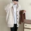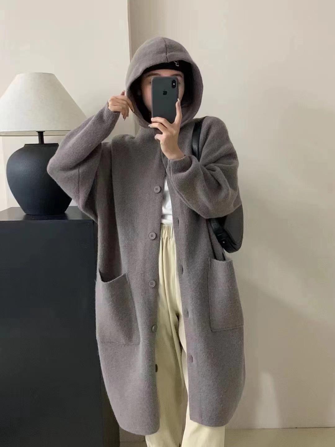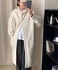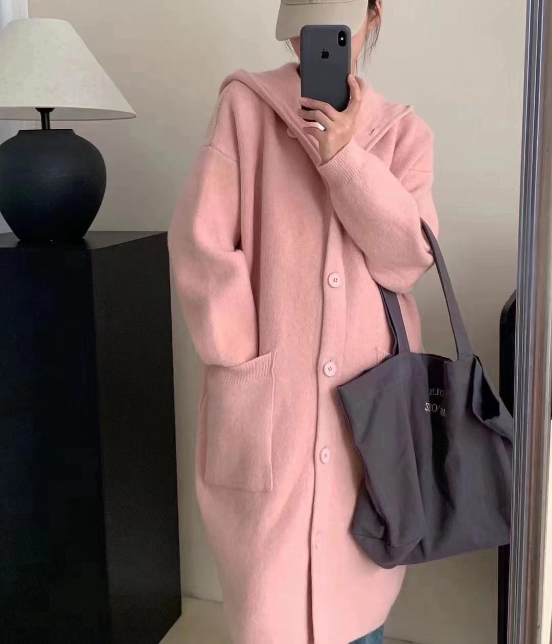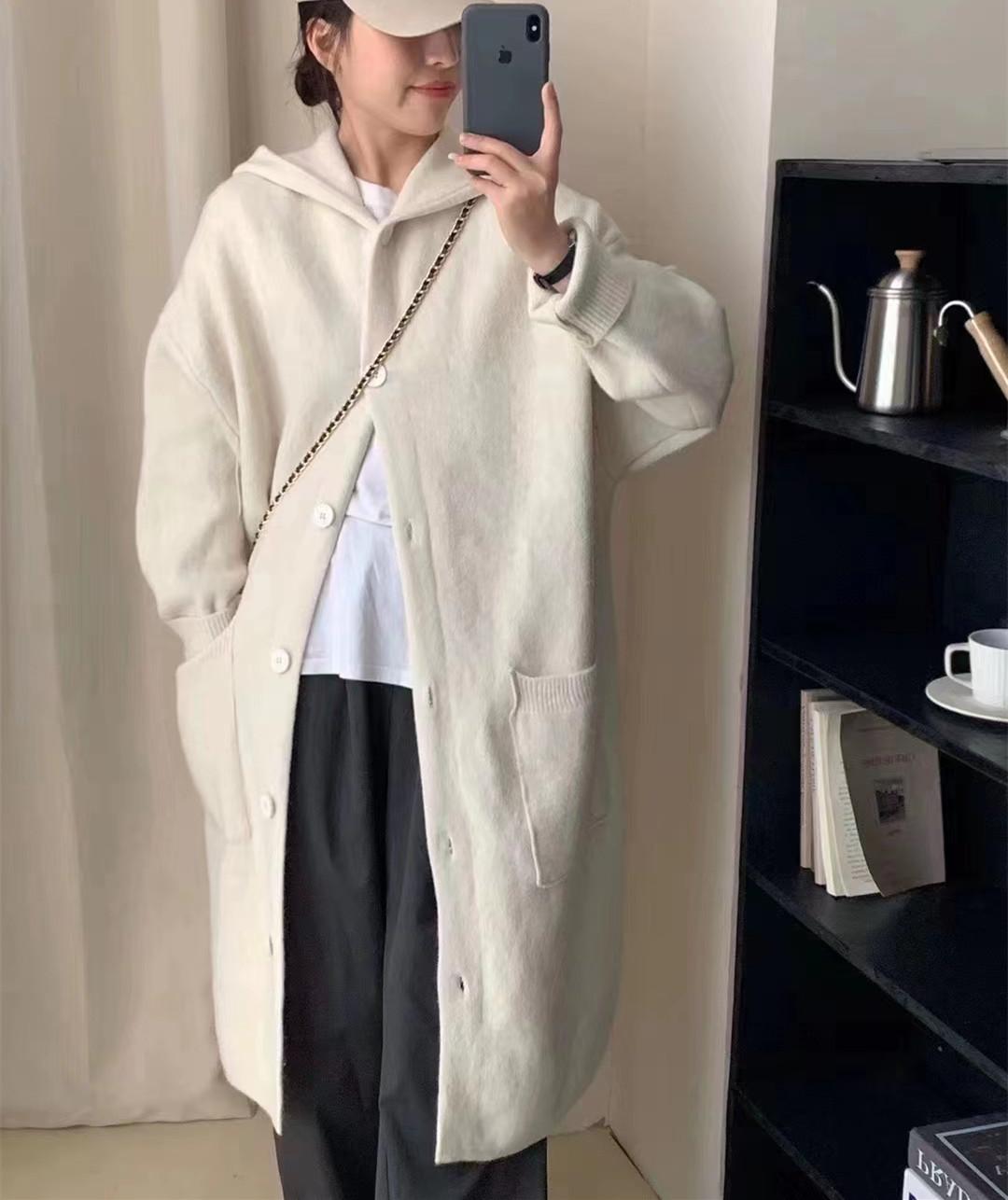 Suéter con capucha de longitud media para mujer, abrigo holgado y holgado de punto de un solo pecho, talla grande, para otoño e invierno