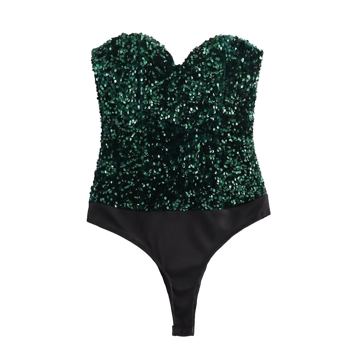 Estilo europeo y americano 2023 Invierno Nuevo Amazon comercio exterior lentejuelas tridimensionales empalmado ajustado sexy mono de tubo