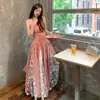 Vestido de hombro de moda blanco, recién llegado de verano, estilo francés, retro, rojo, con mangas con volantes, falda de longitud media