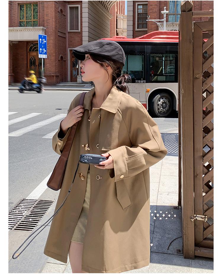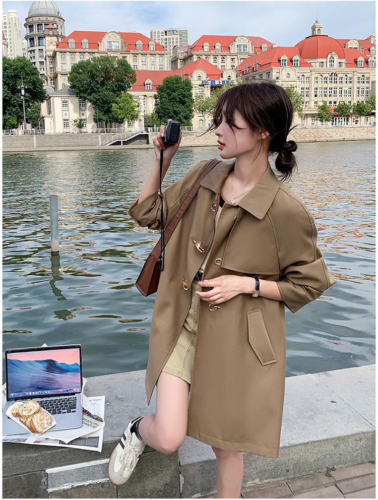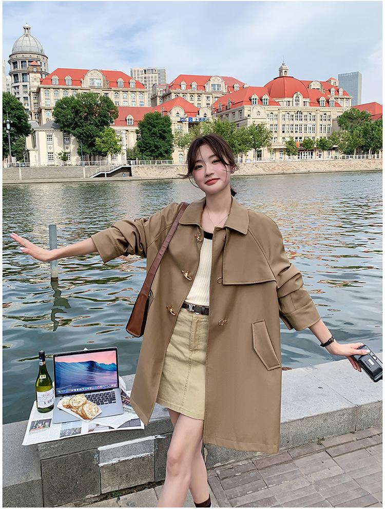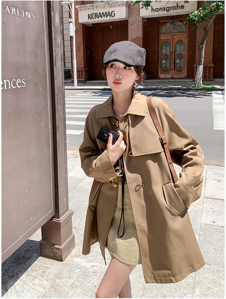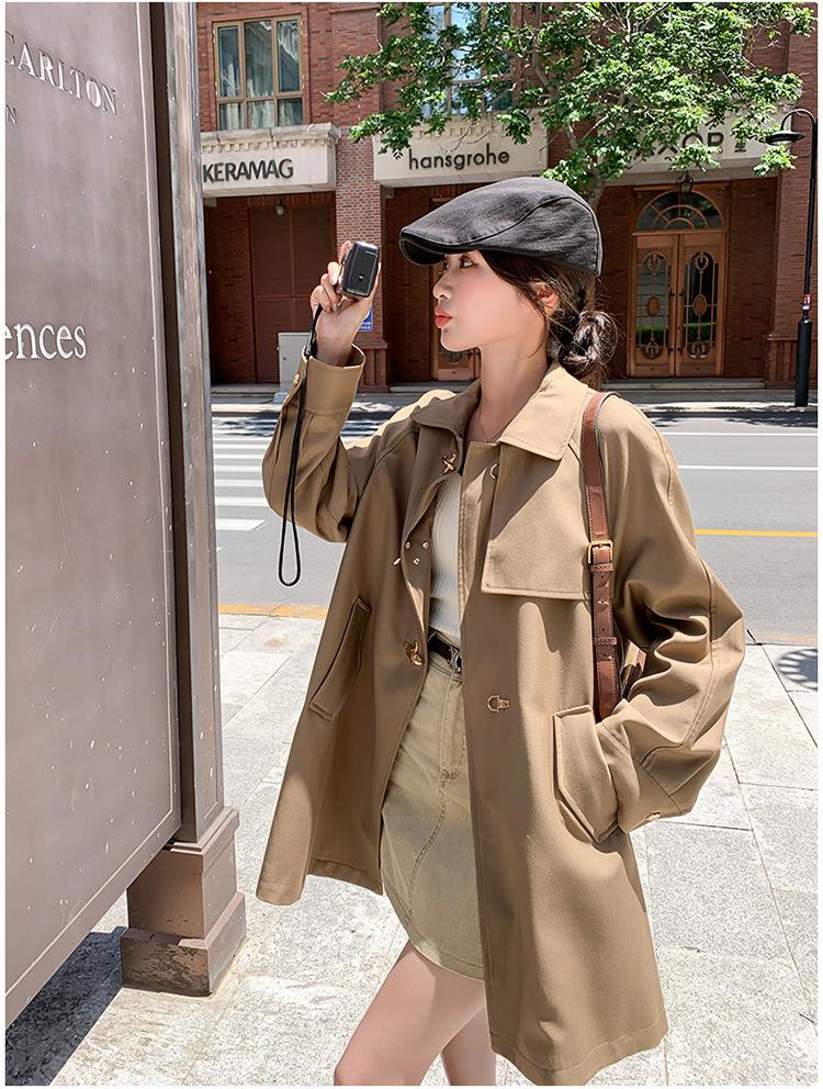 Rompevientos Versátil Caqui para Mujer de Largo Medio 2025 Primavera y Otoño Nuevo Ajustado Estilo Británico Chaqueta Estilo Retro