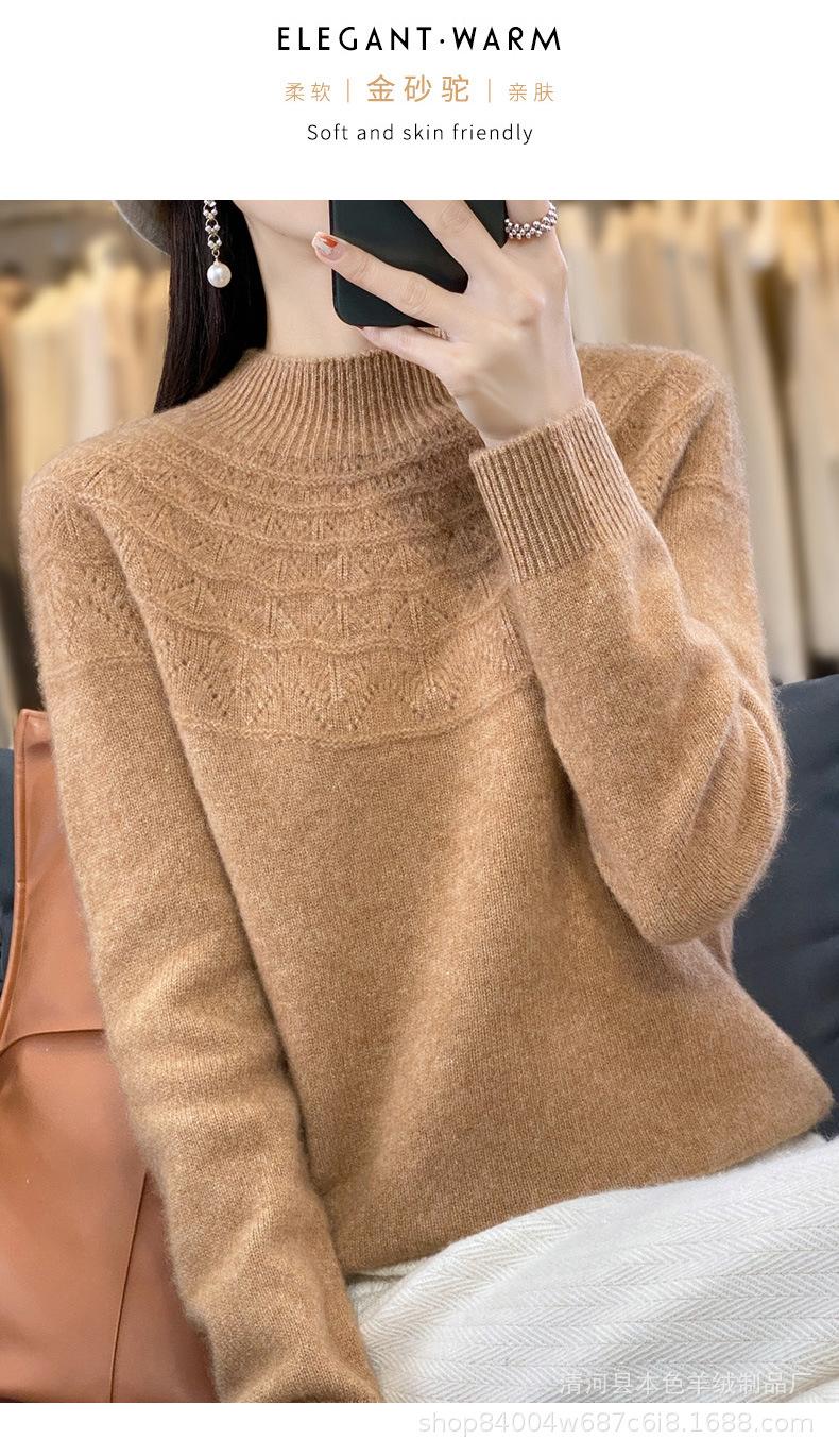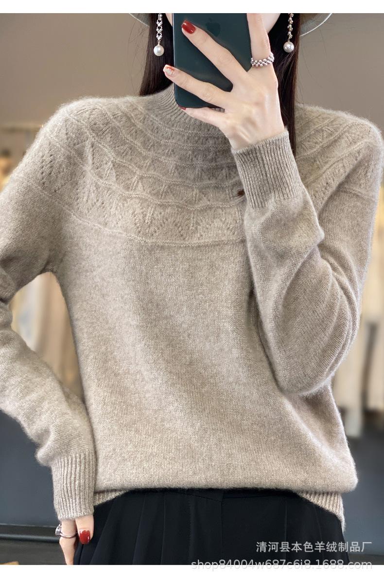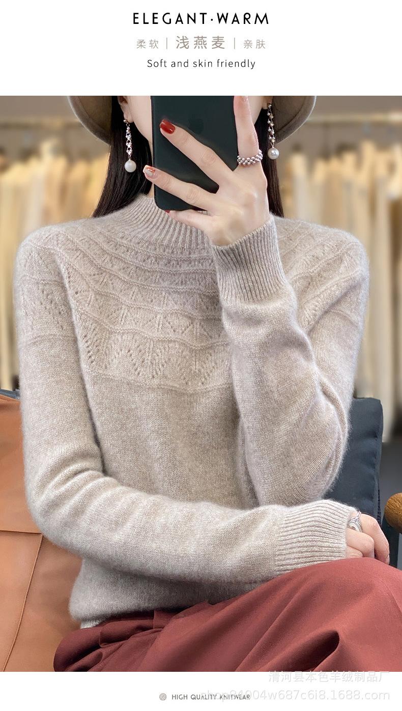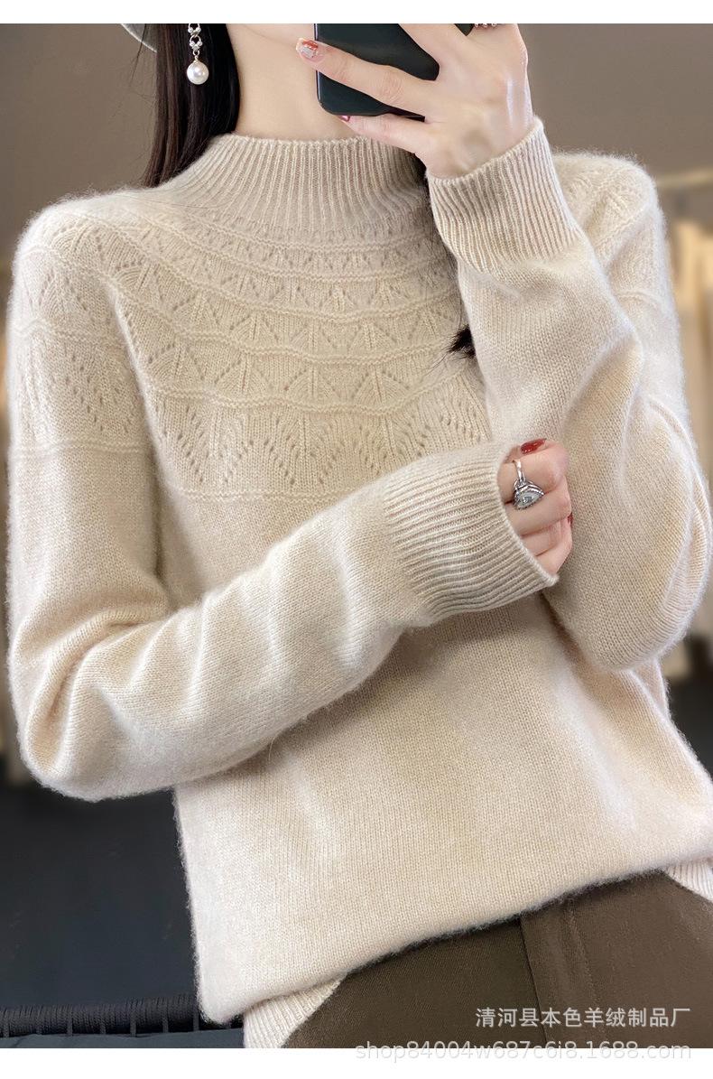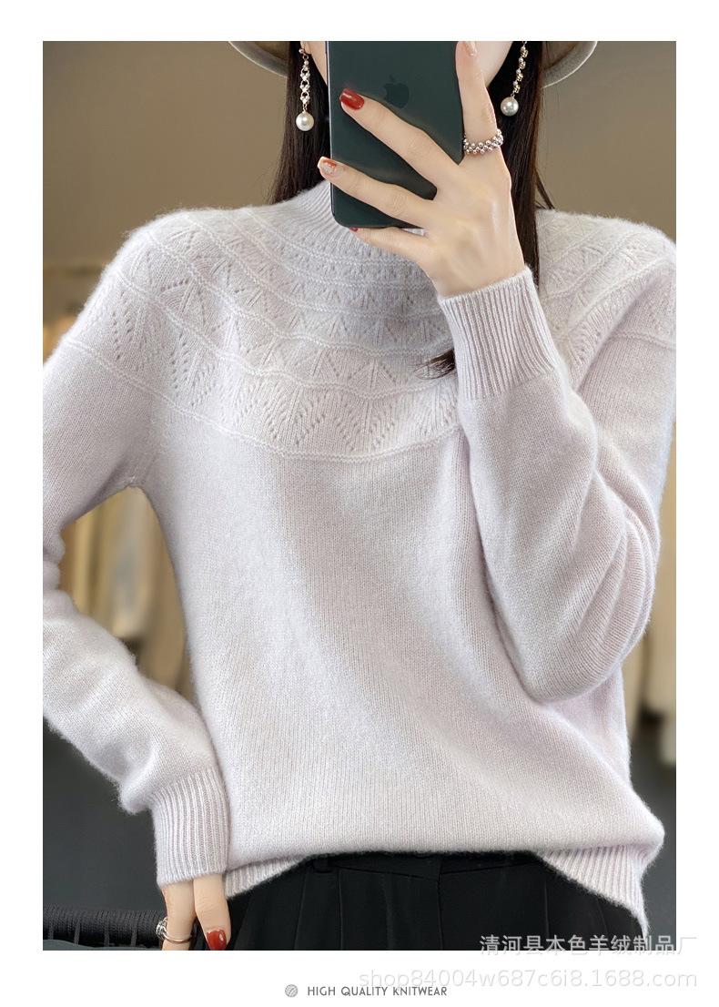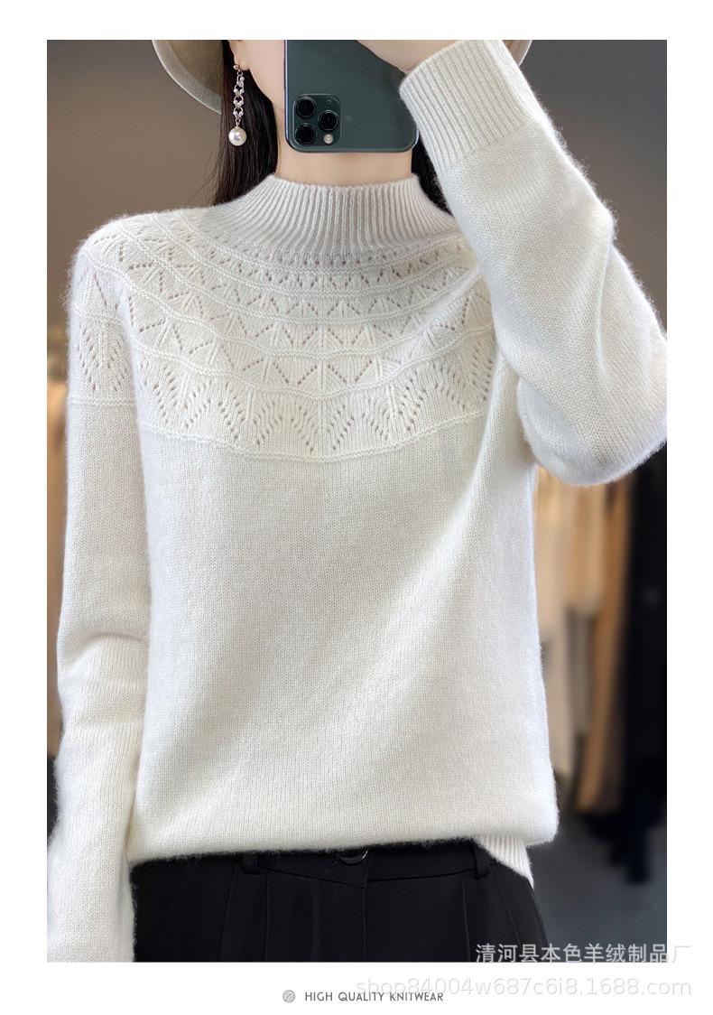 Suéter de manga larga para mujer, jersey holgado y adelgazante de cuello alto medio calado, ropa de primera línea para otoño e invierno