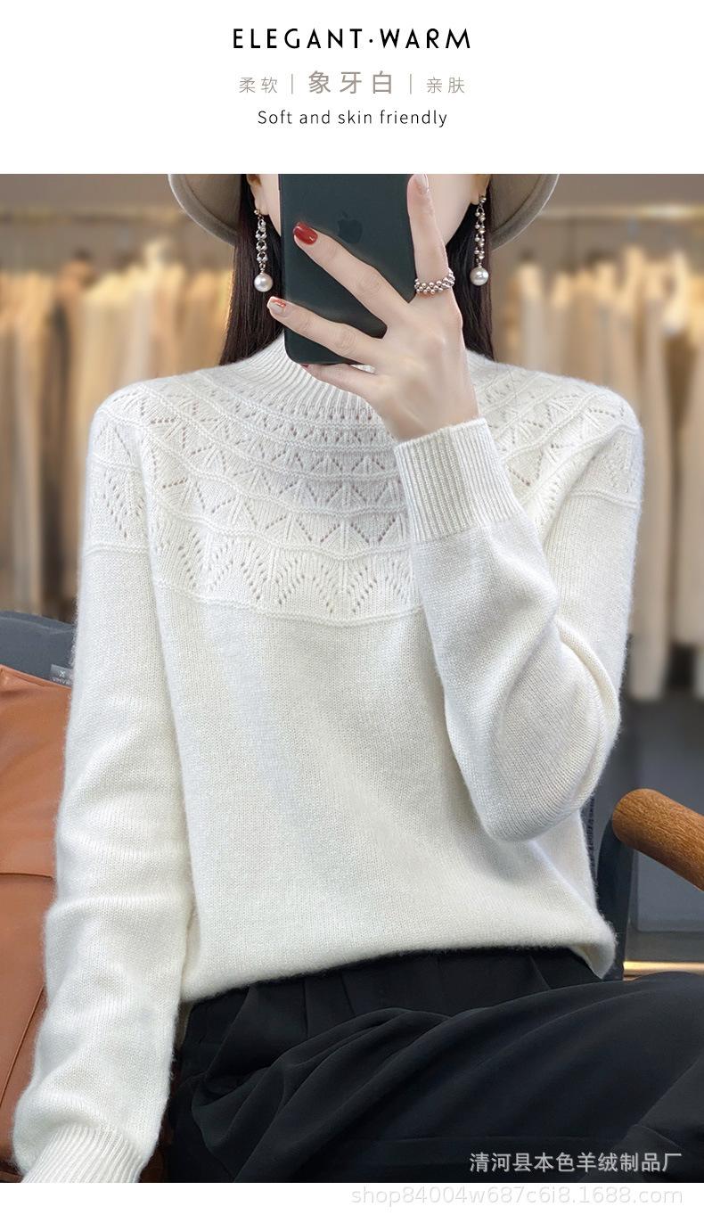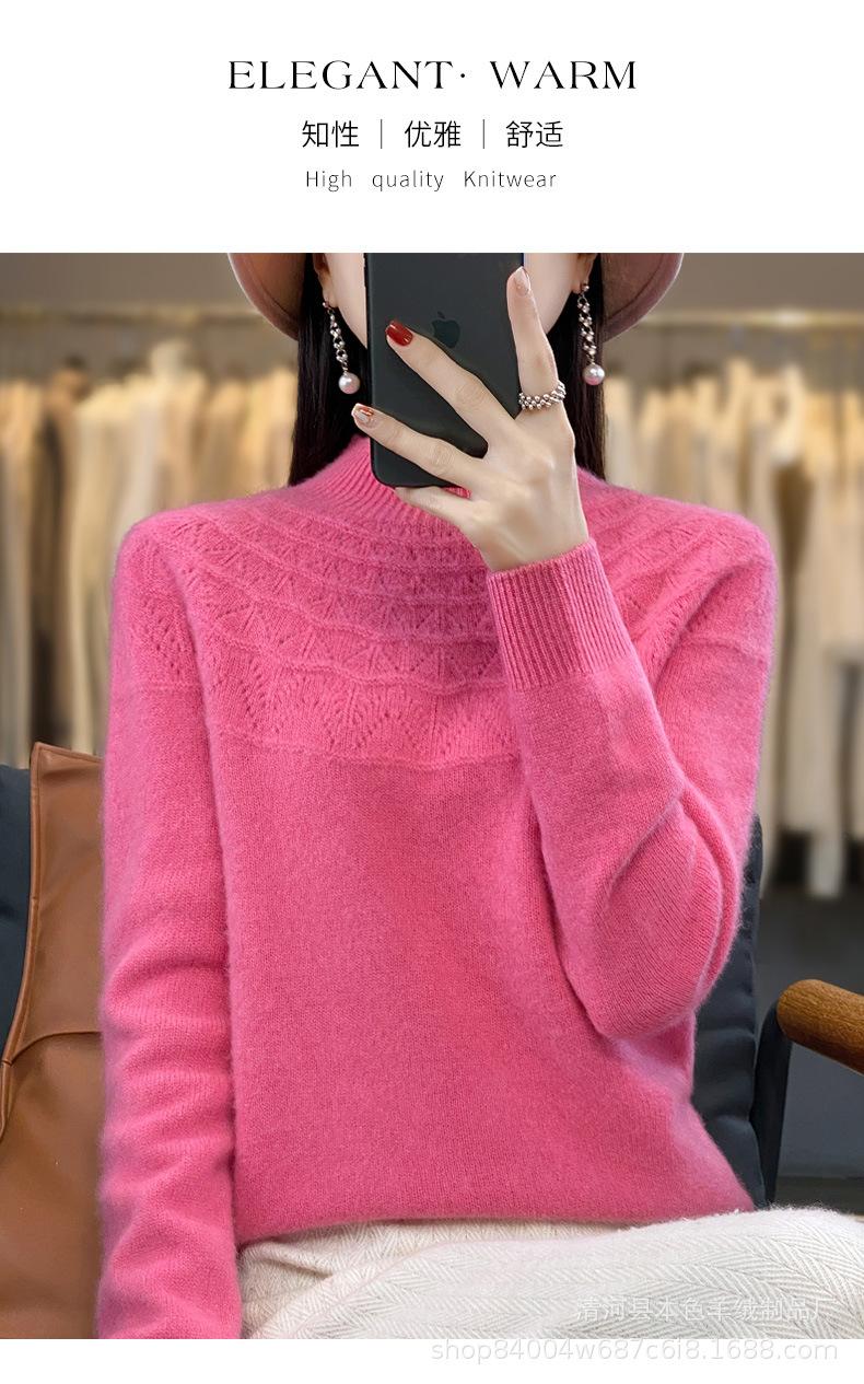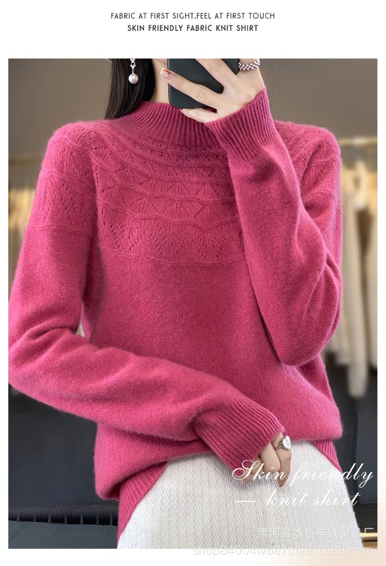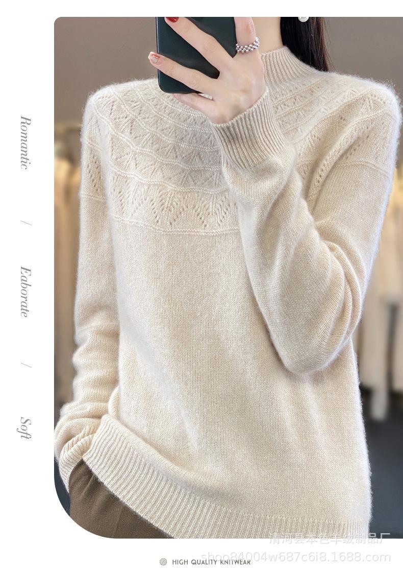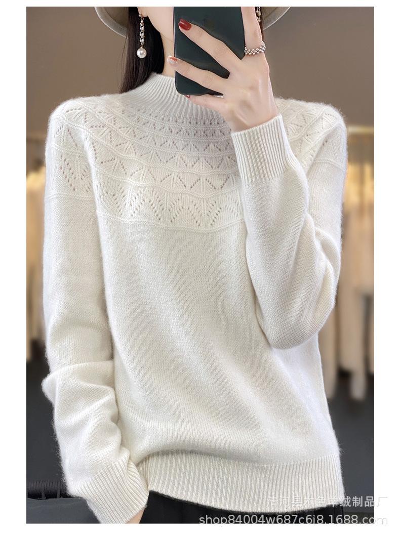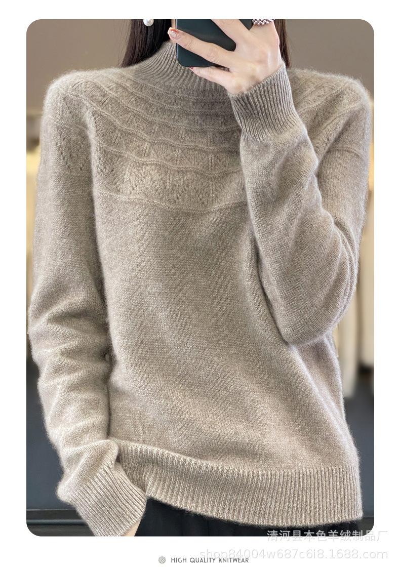 Suéter de manga larga para mujer, jersey holgado y adelgazante de cuello alto medio calado, ropa de primera línea para otoño e invierno