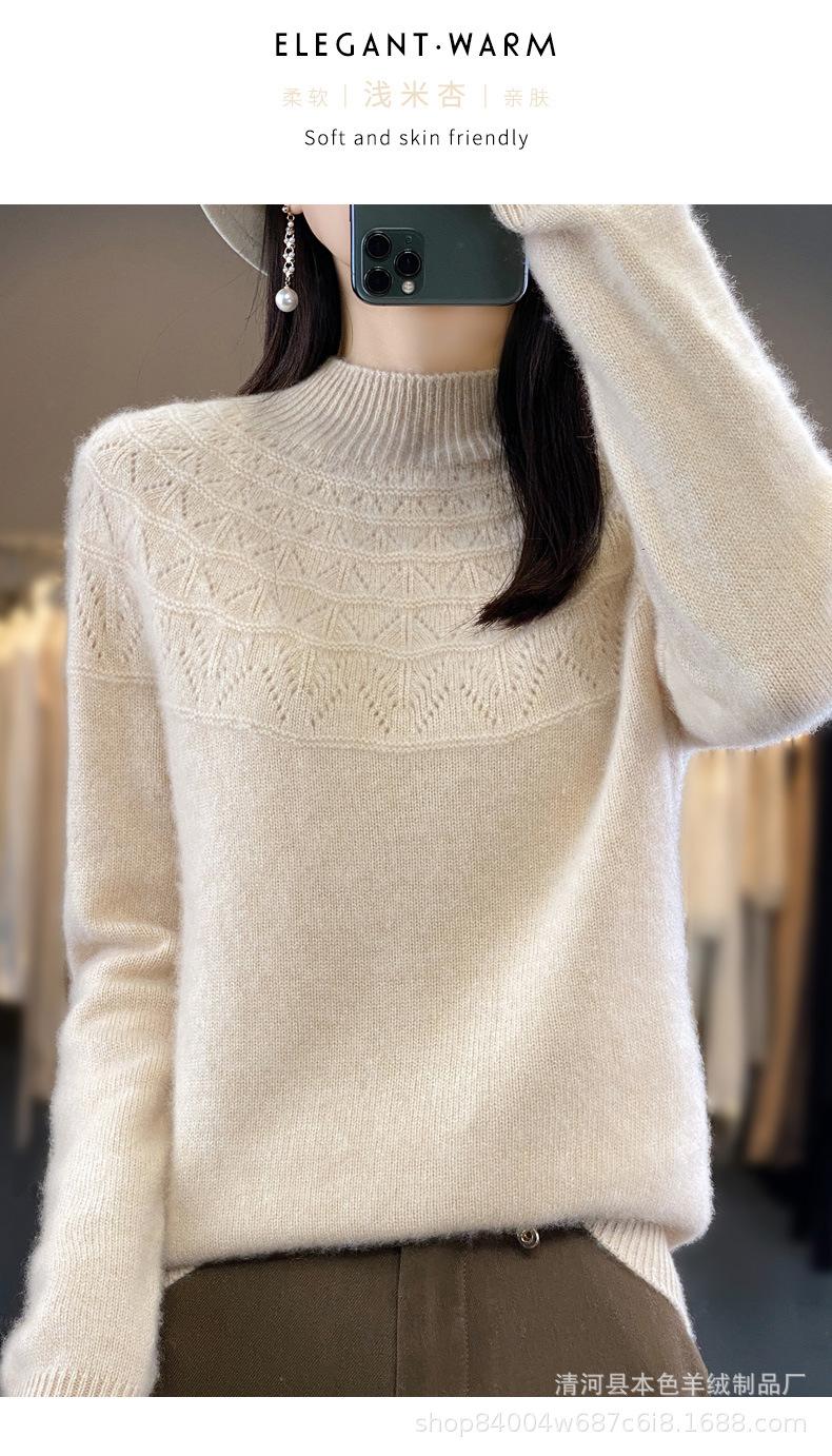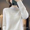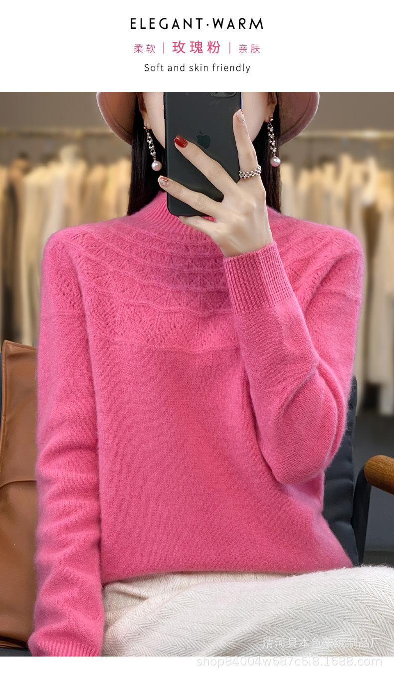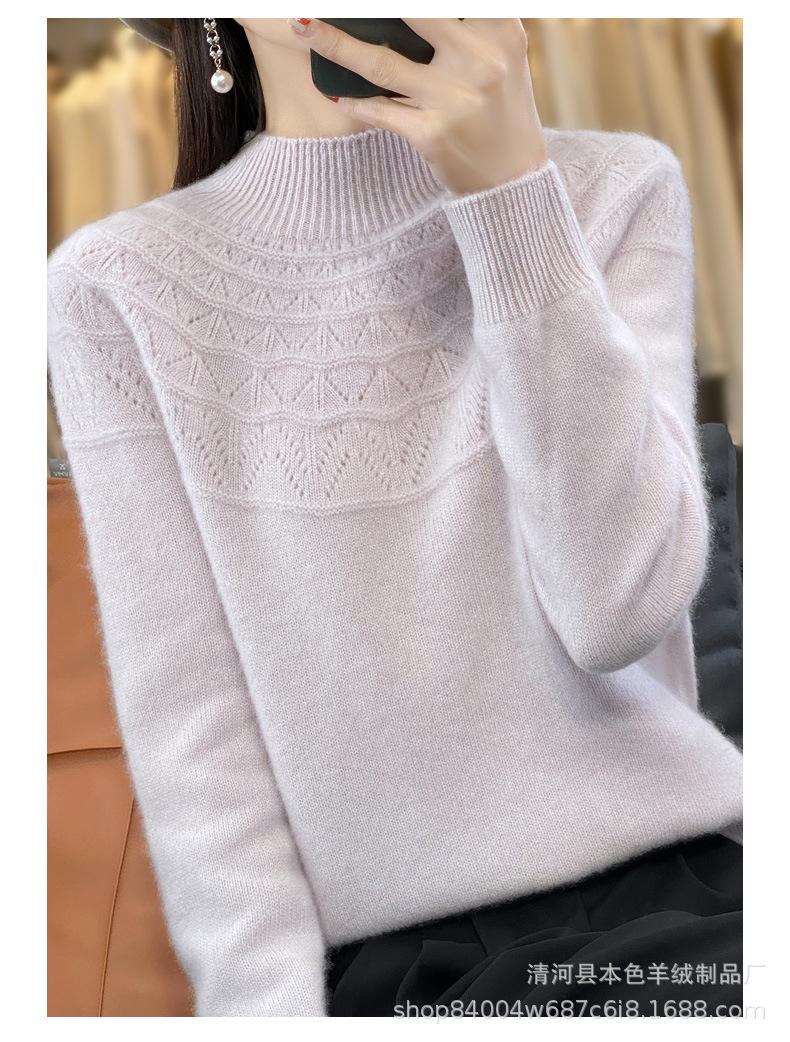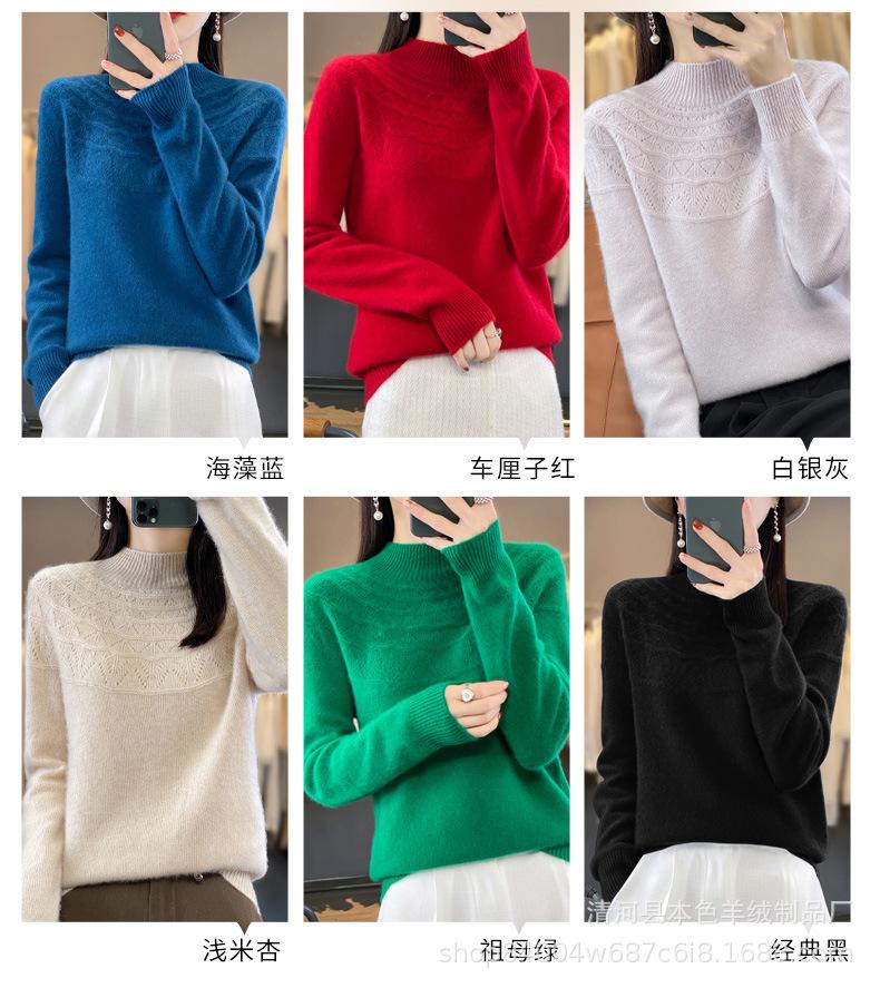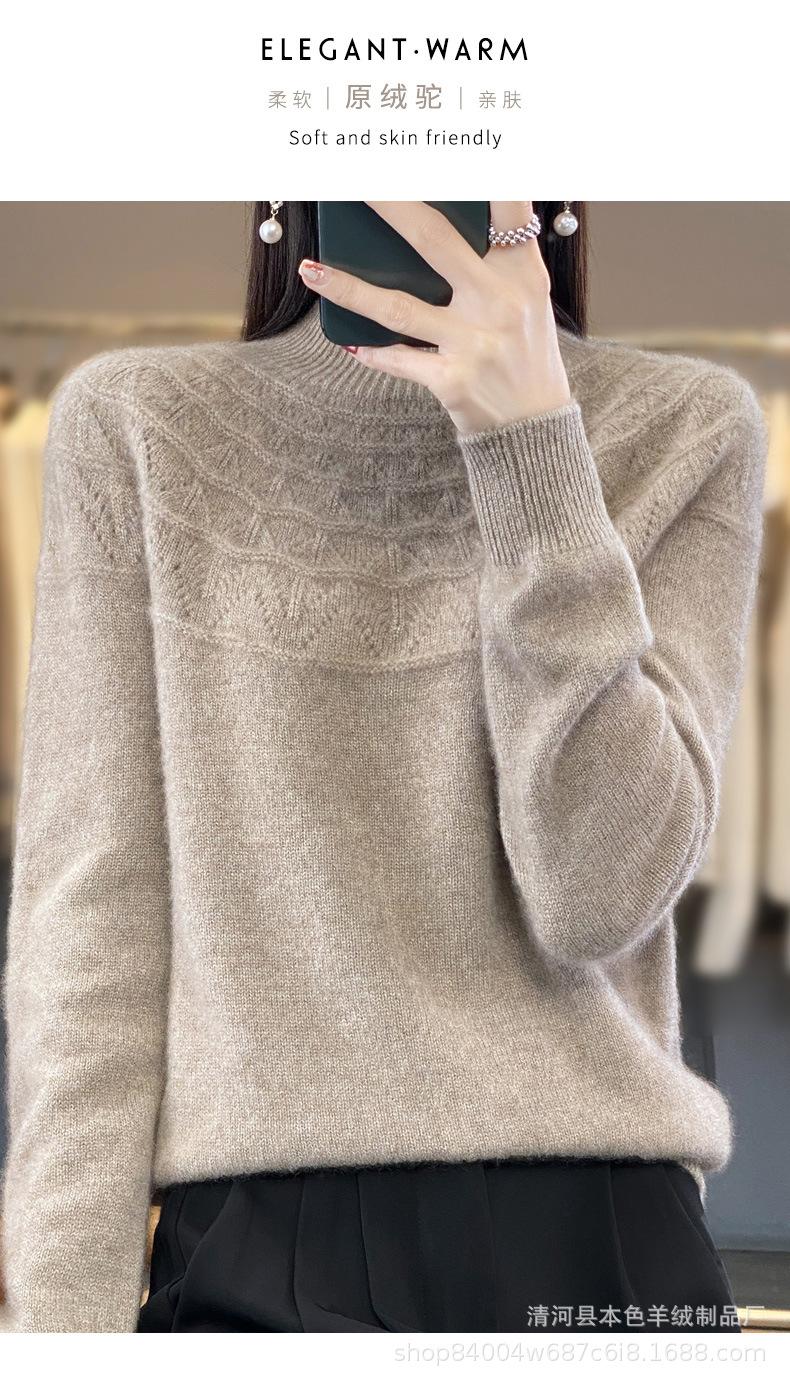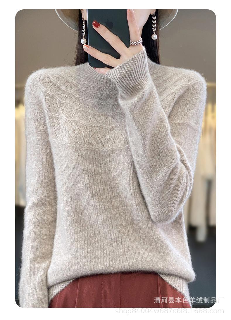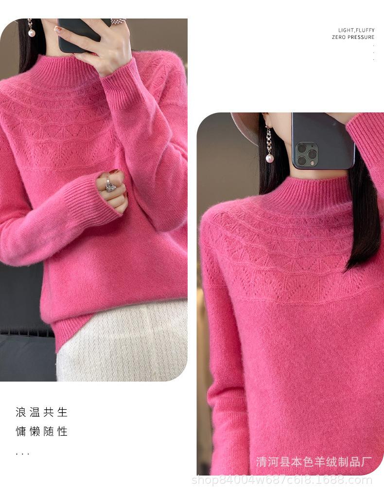 Suéter de manga larga para mujer, jersey holgado y adelgazante de cuello alto medio calado, ropa de primera línea para otoño e invierno
