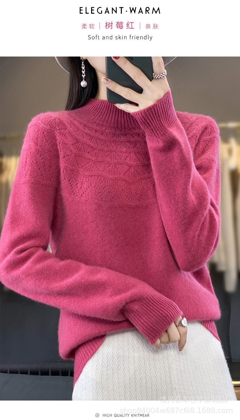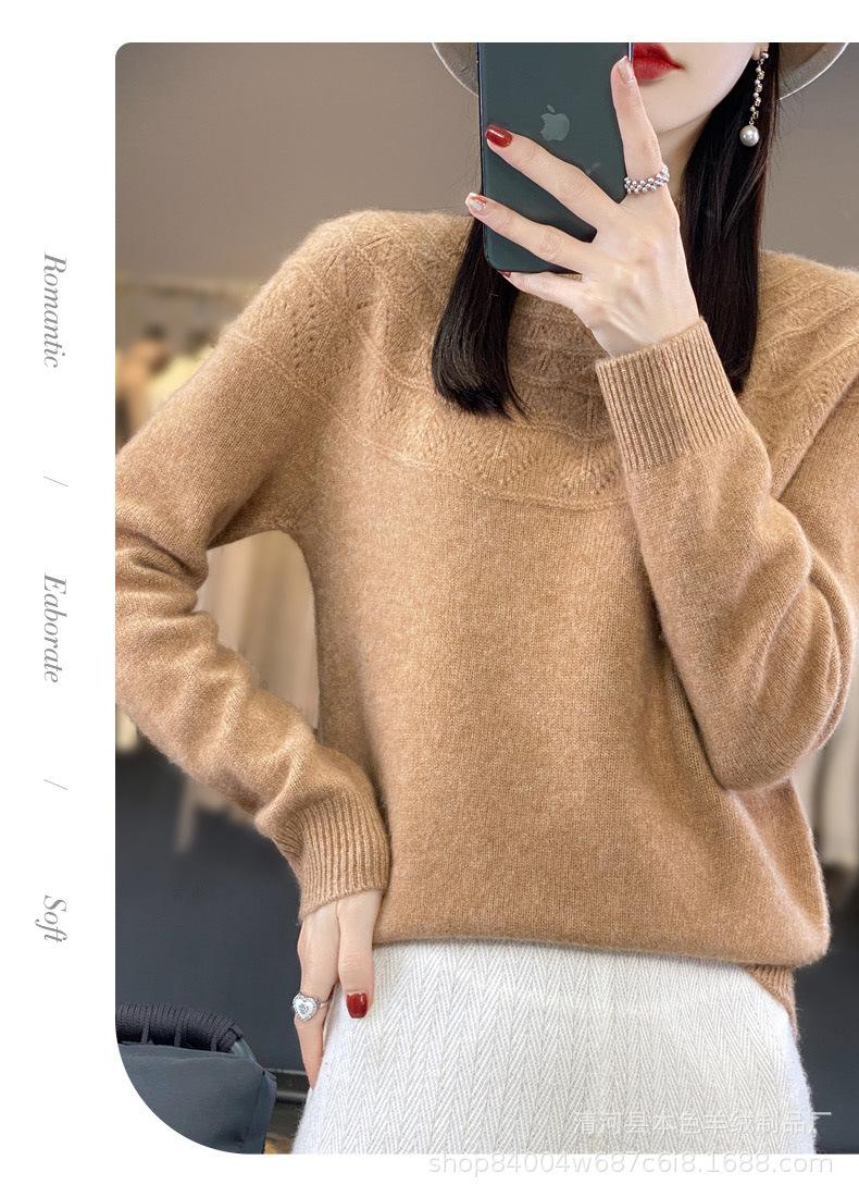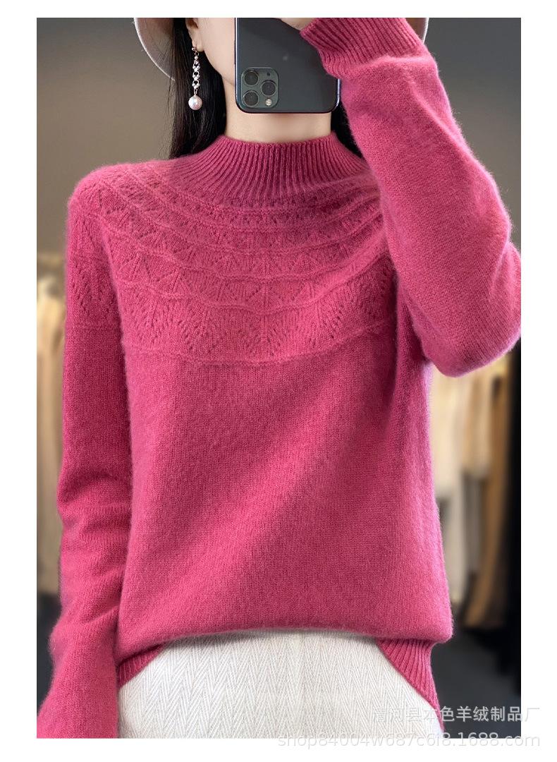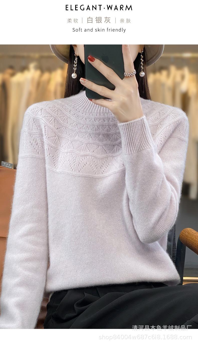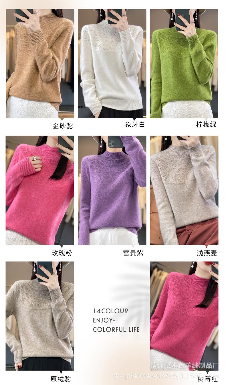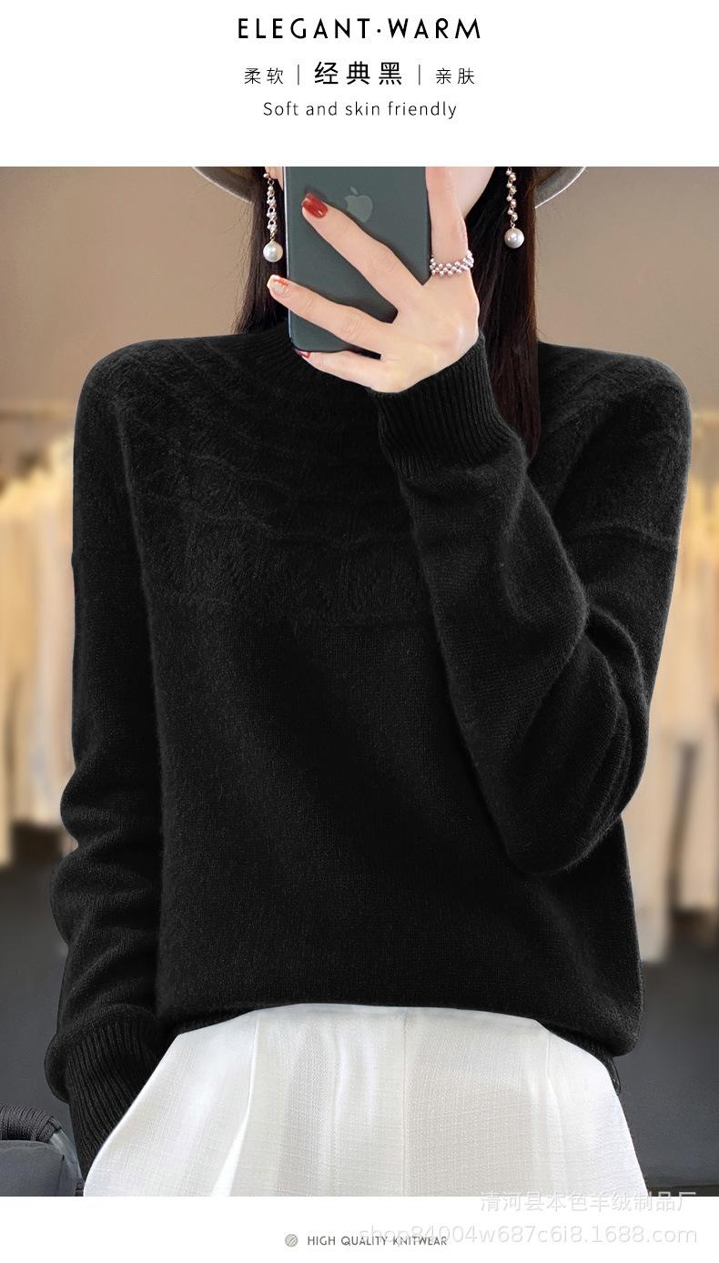 Suéter de manga larga para mujer, jersey holgado y adelgazante de cuello alto medio calado, ropa de primera línea para otoño e invierno