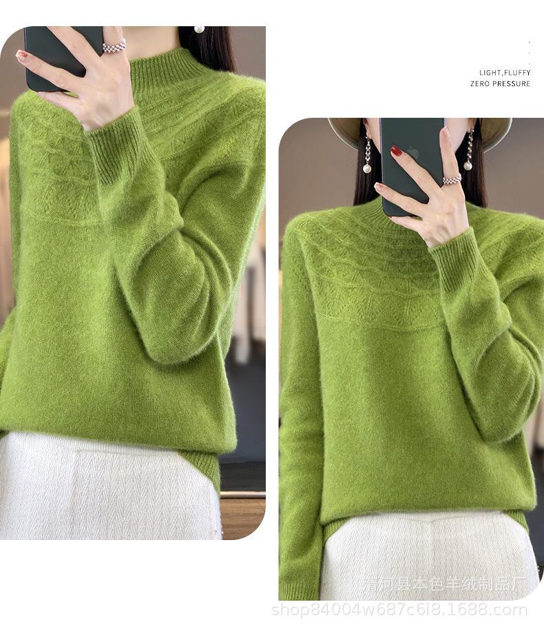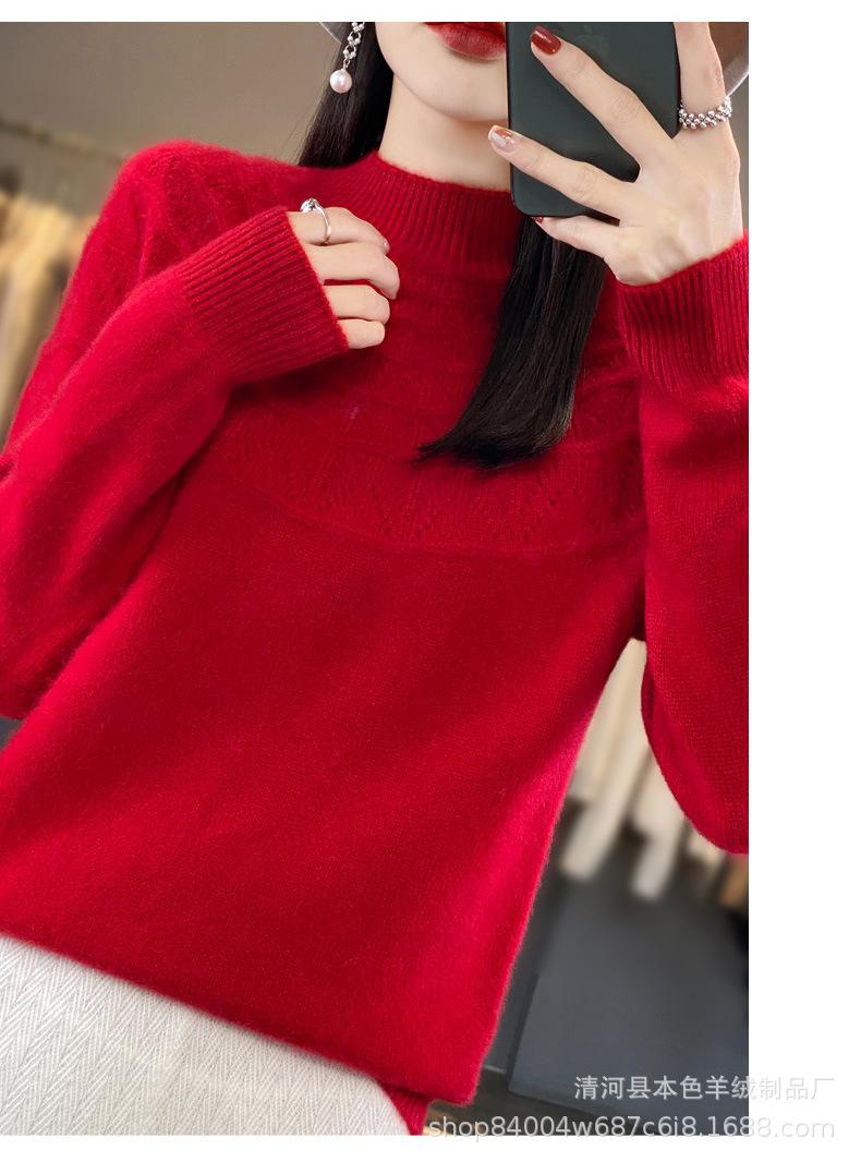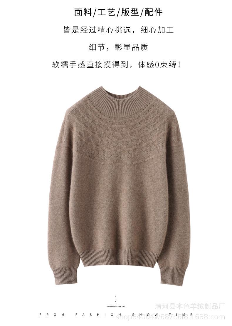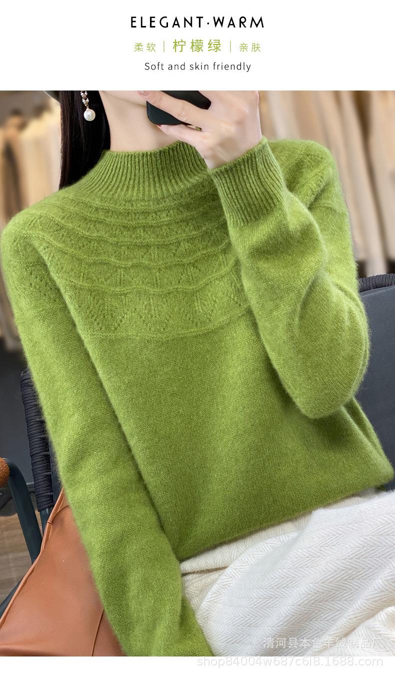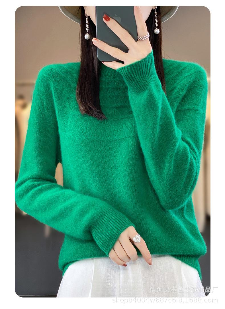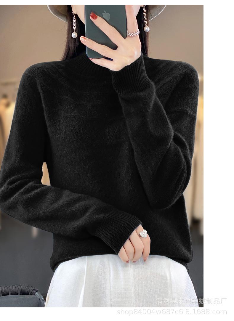 Suéter de manga larga para mujer, jersey holgado y adelgazante de cuello alto medio calado, ropa de primera línea para otoño e invierno