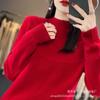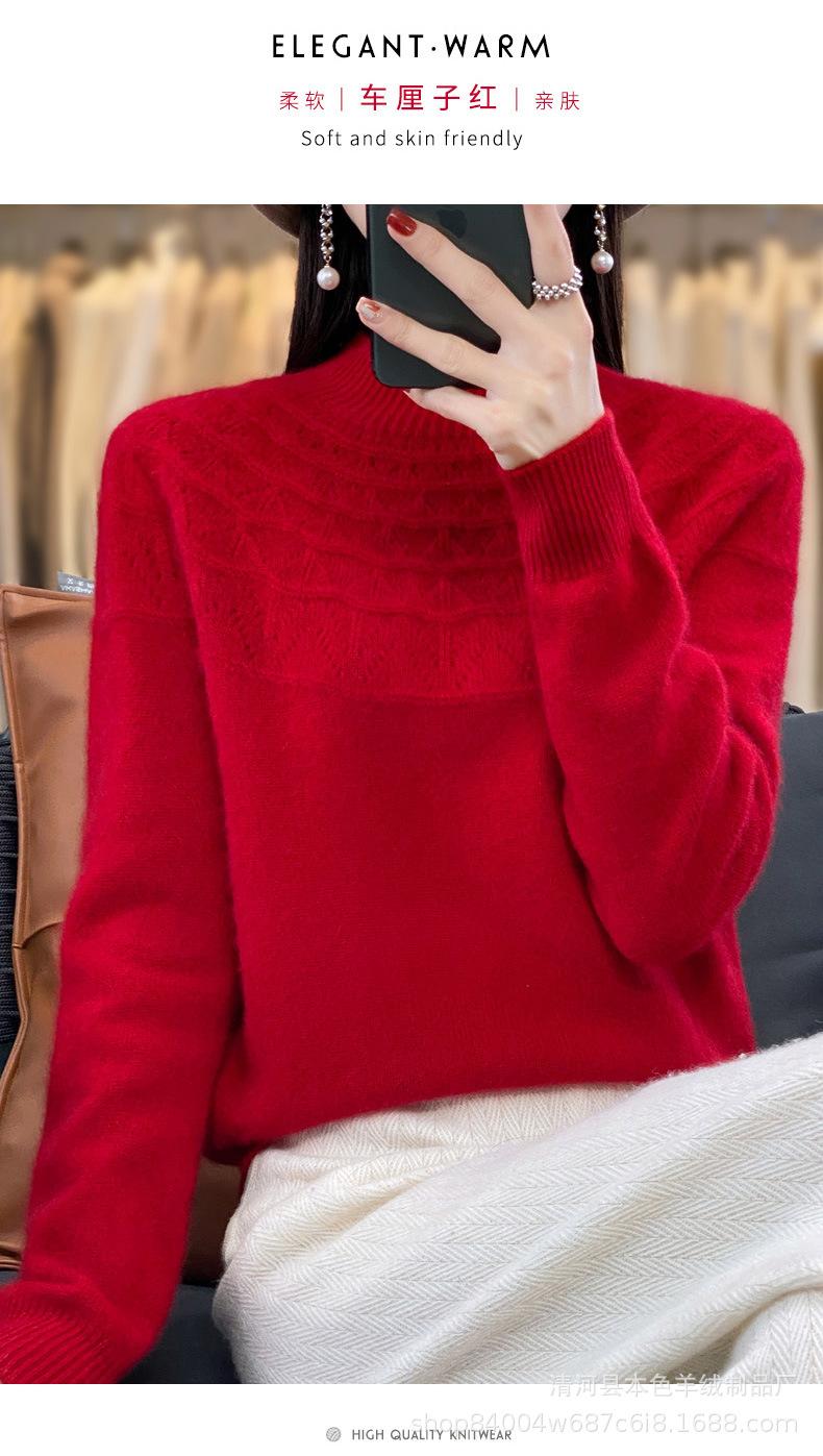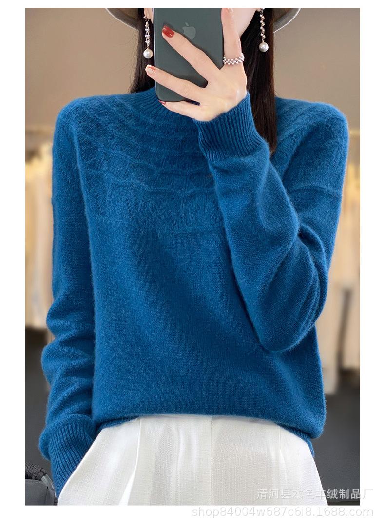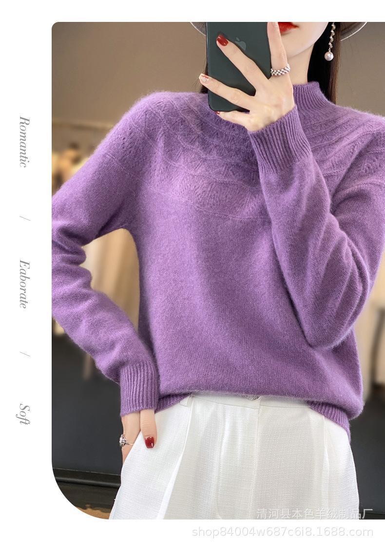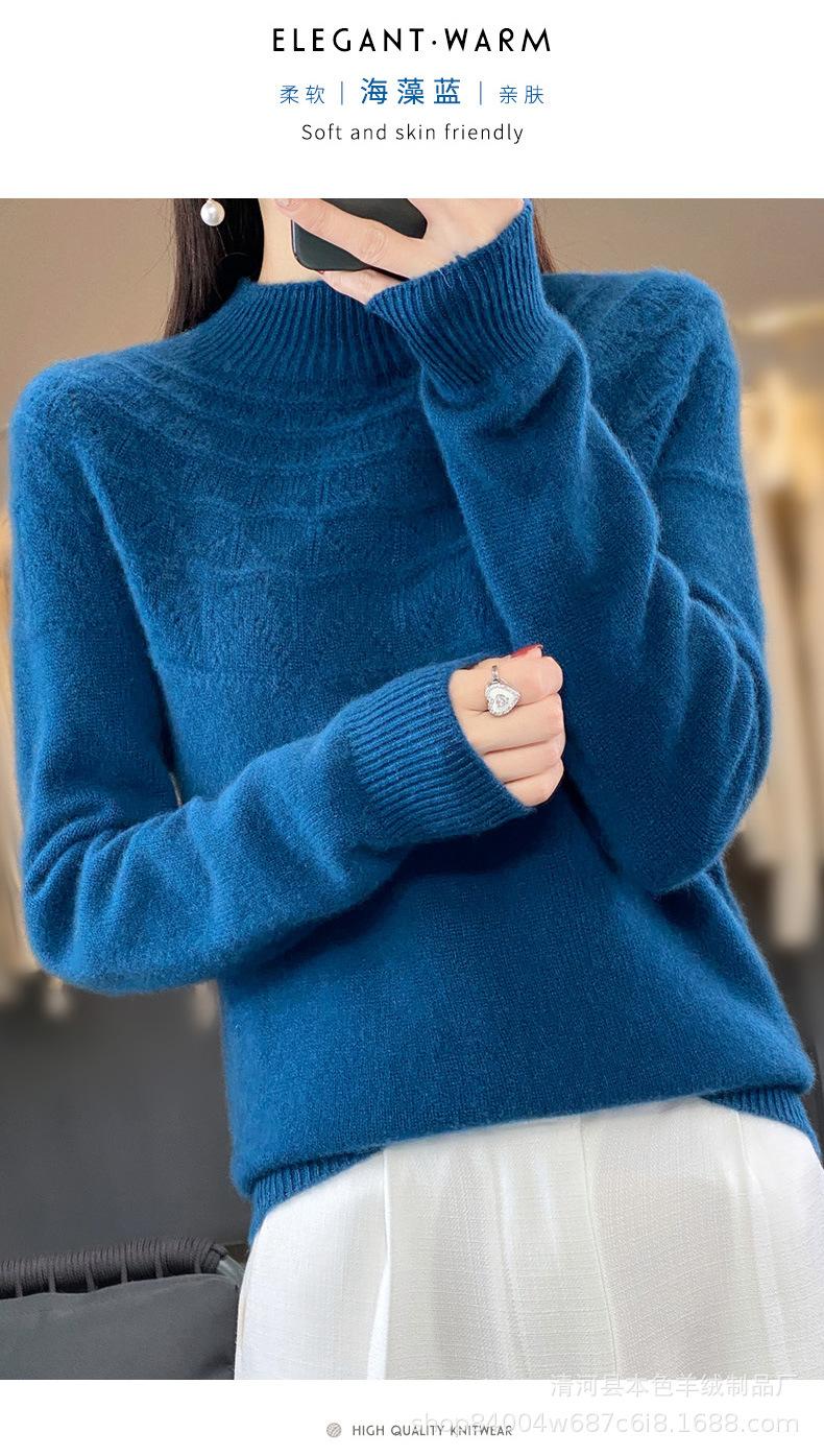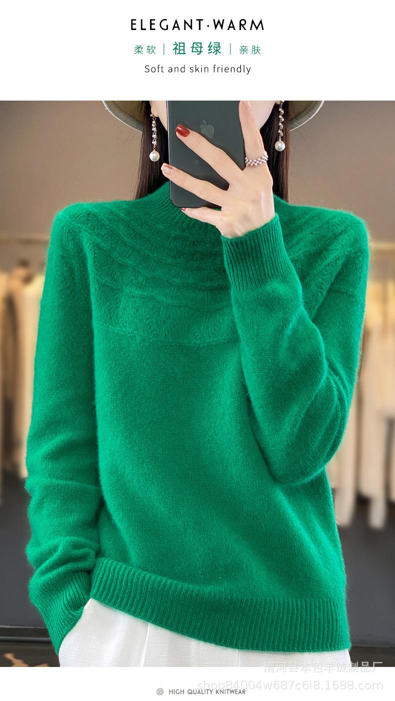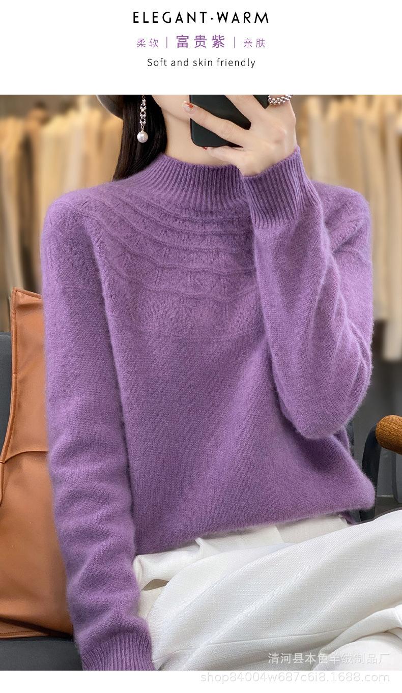 Suéter de manga larga para mujer, jersey holgado y adelgazante de cuello alto medio calado, ropa de primera línea para otoño e invierno
