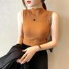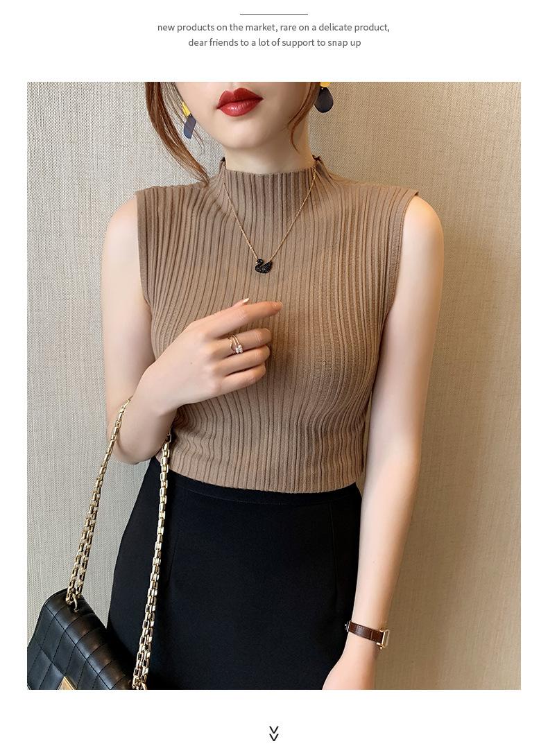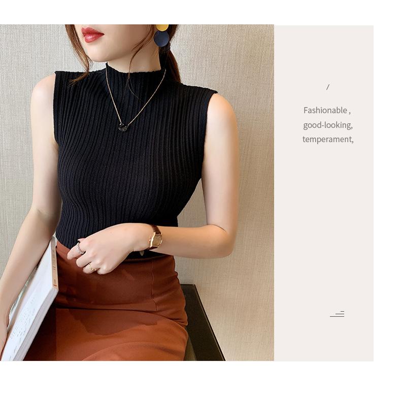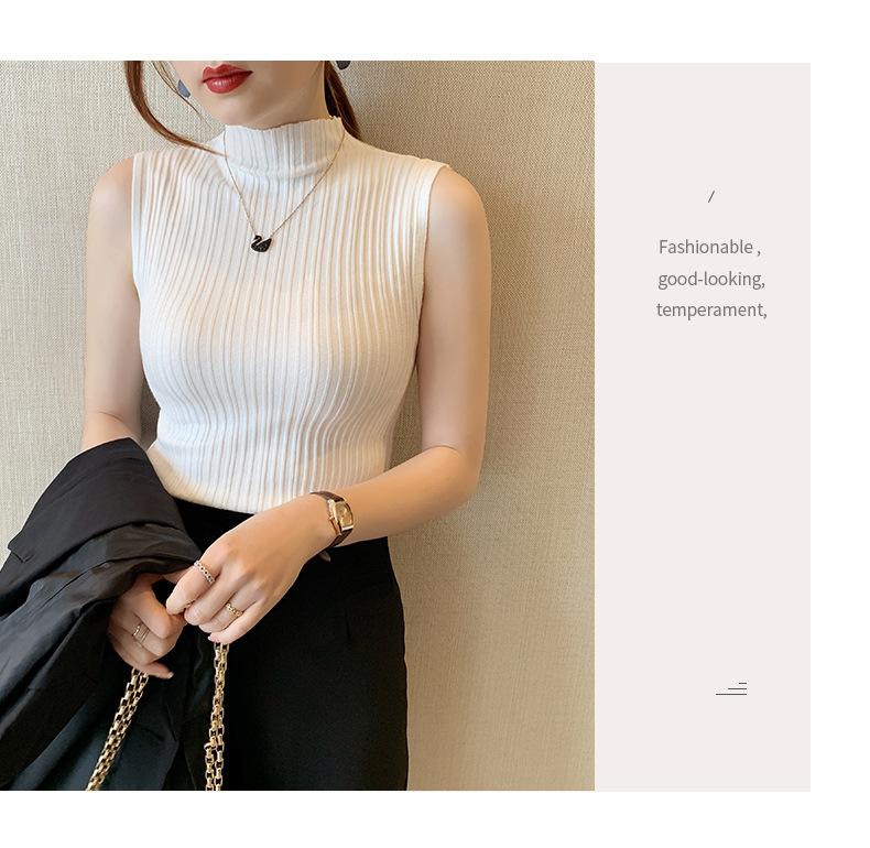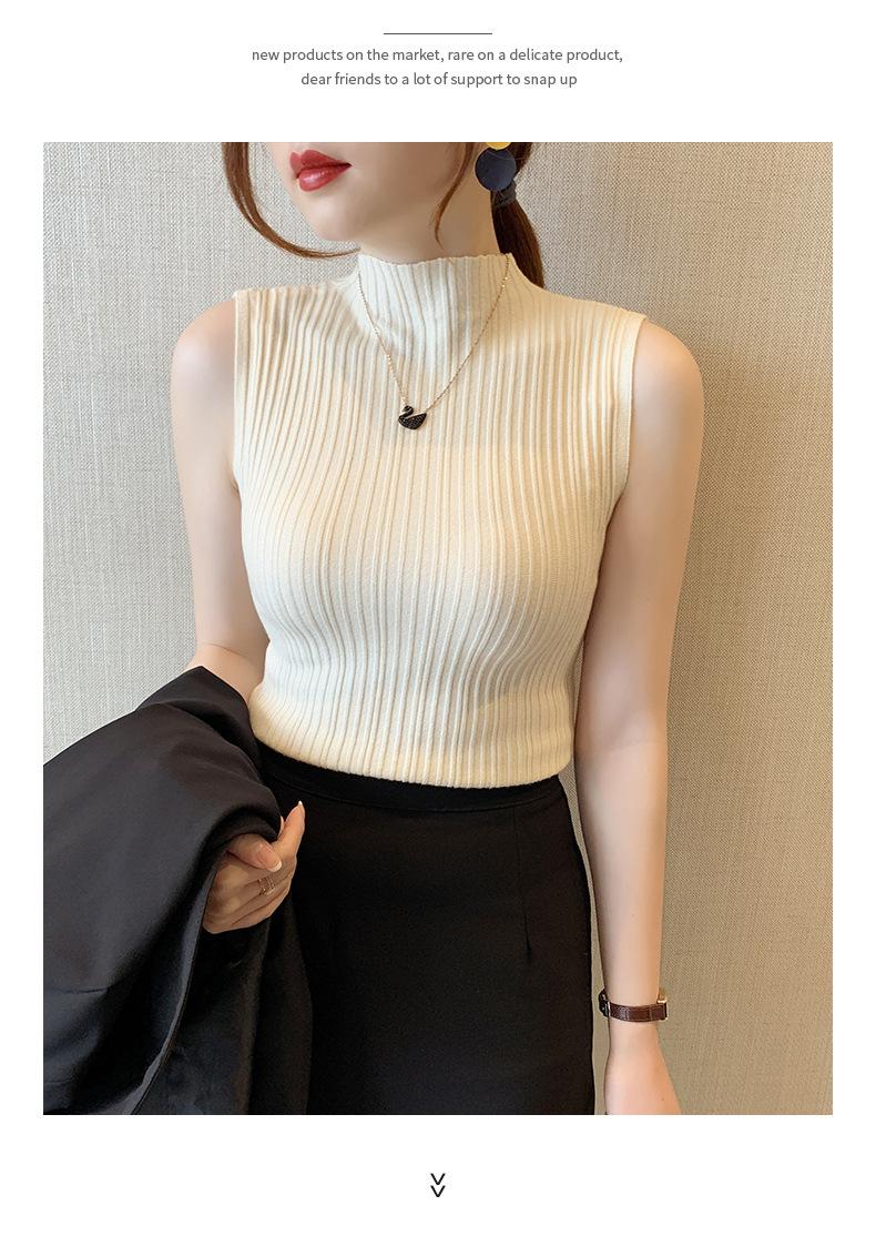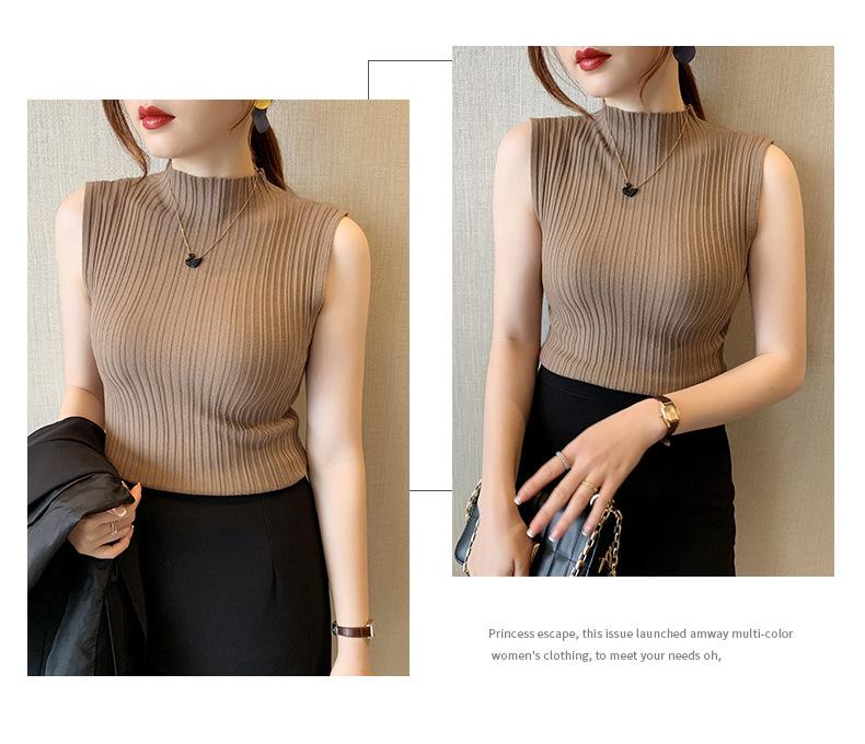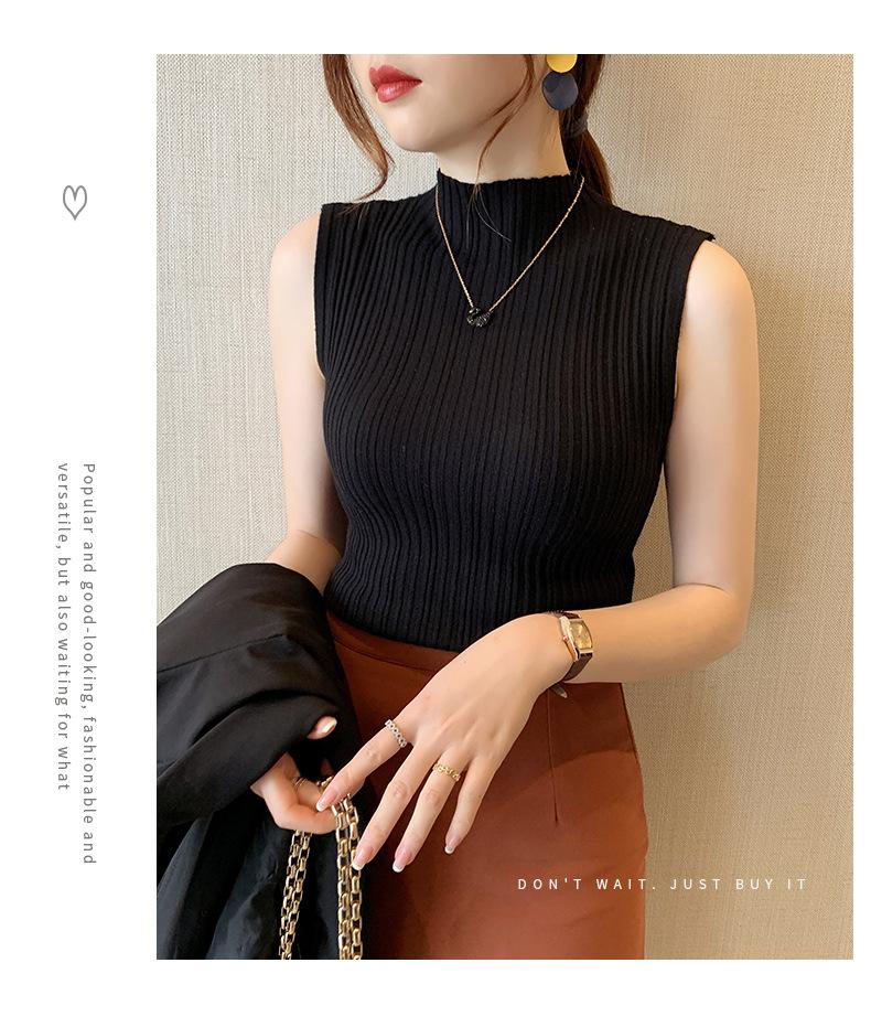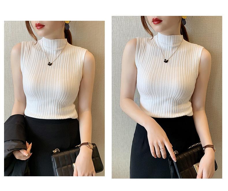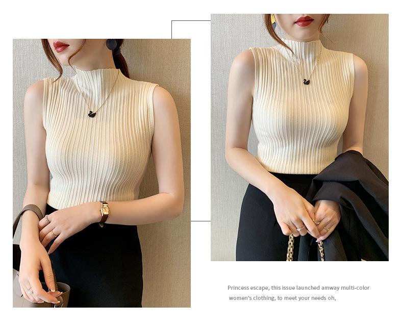 Chaleco de punto de cuello alto medio para mujer, ropa exterior de primavera y otoño, sin mangas, corto, ajustado, con temperamento, camisa interior con parte inferior, top con tirantes pequeños