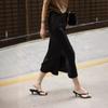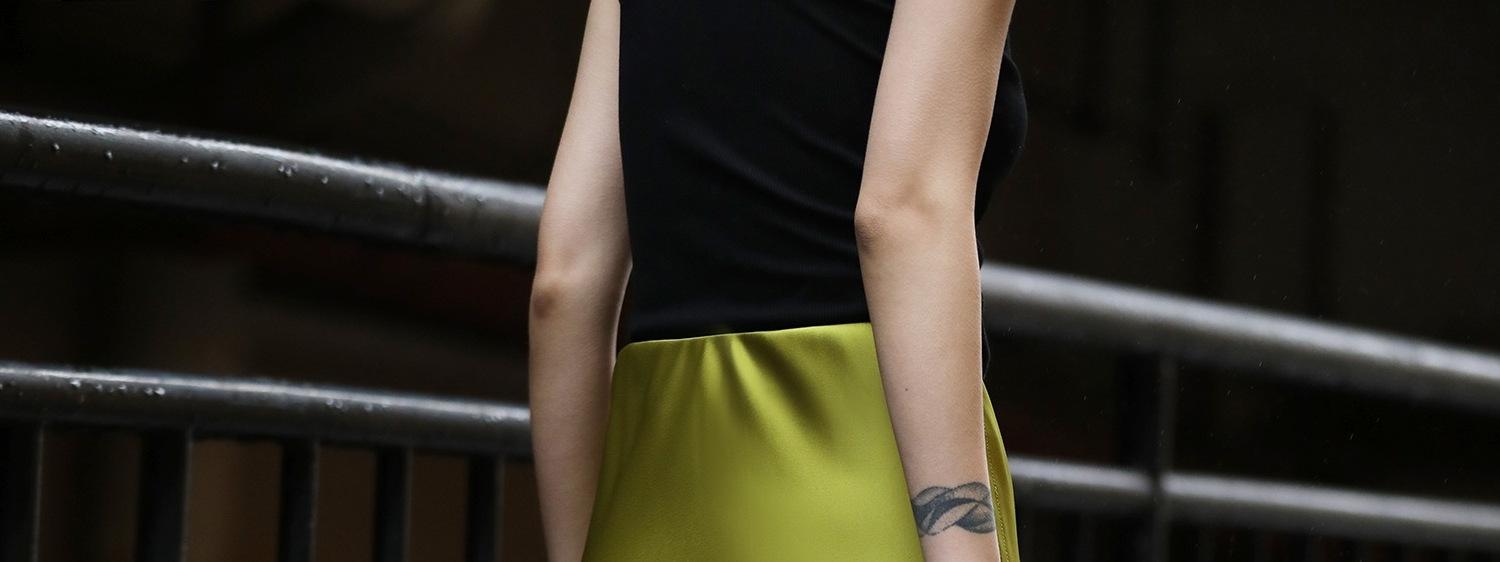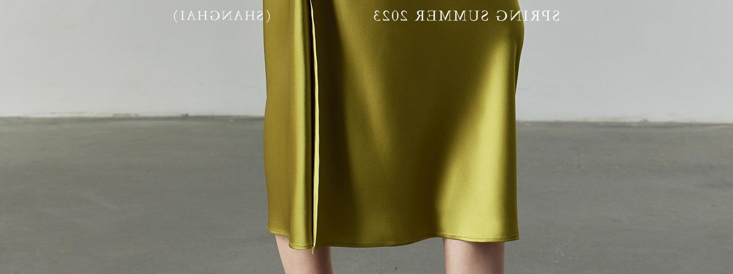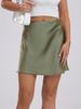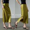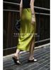 Falda dividida de satén de acetato verde para mujer, falda de verano francesa de cintura alta, corte A, falda drapeada y sedosa.