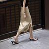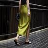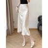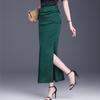 Falda midi de acetato satinado verde con abertura para mujer, verano, francesa, cintura alta, ajustada a la cadera, línea A, con caída, falda sedosa
