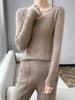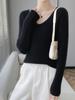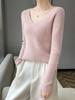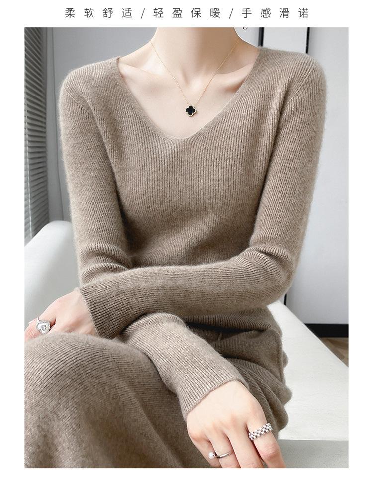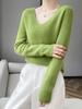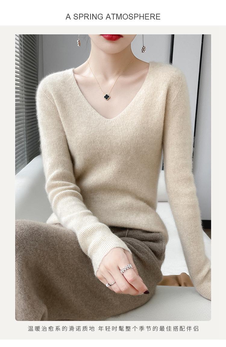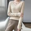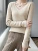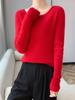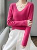 Suéter de Primera Línea sin Costuras 100% Lana Pura para Mujer con Cuello en V, Ajuste Ceñido y Adelgazante con Base de Cachemira, Suéter para Invierno