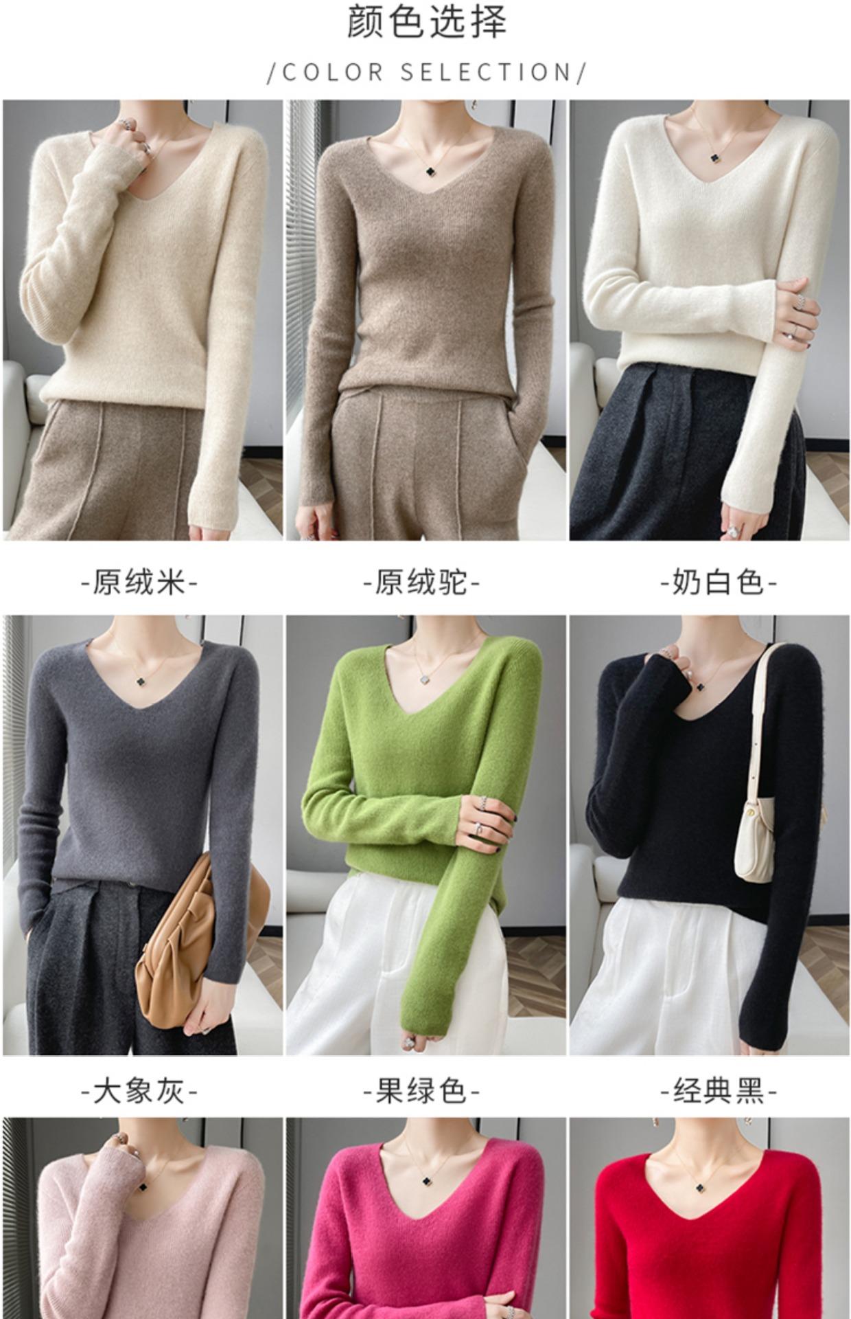 Raw velvet rice-V-neck, Original velvet camel-V-neck, Milk white-V-neck, Classic Black-V-Neck, Elephant Grey-V...