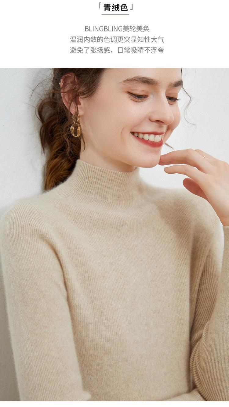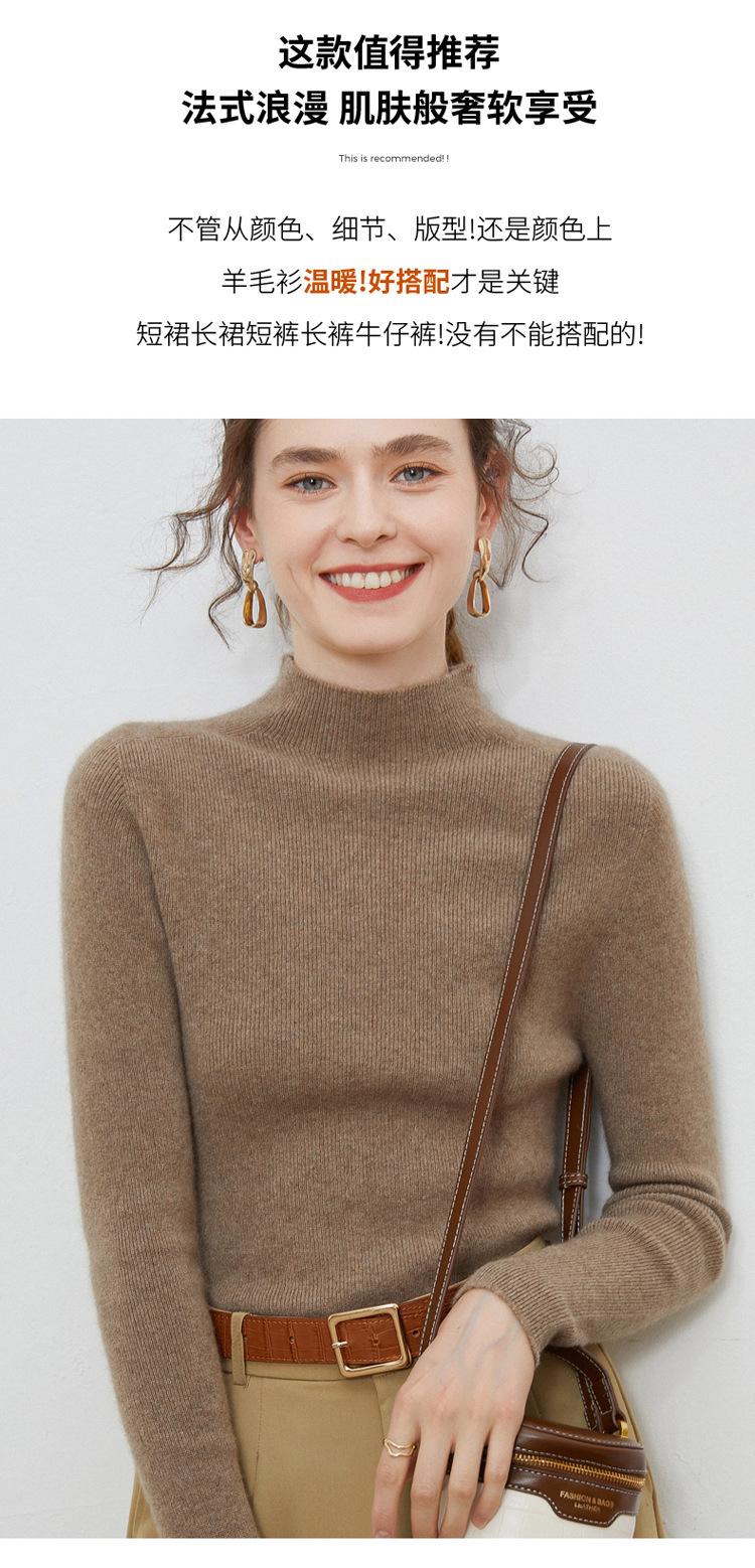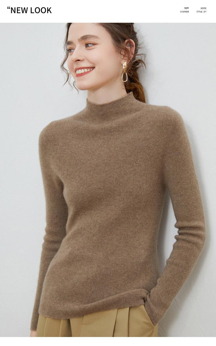 Suéter de lana de cuello alto para mujer 100% lana ropa de línea tejido de punto entallado base ajustado suéter interior