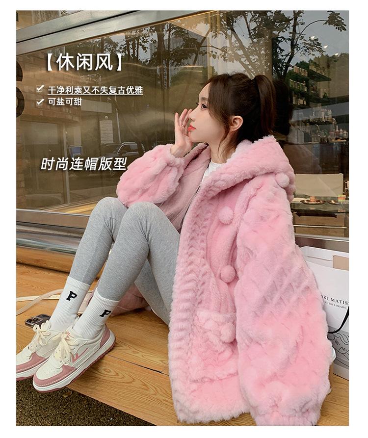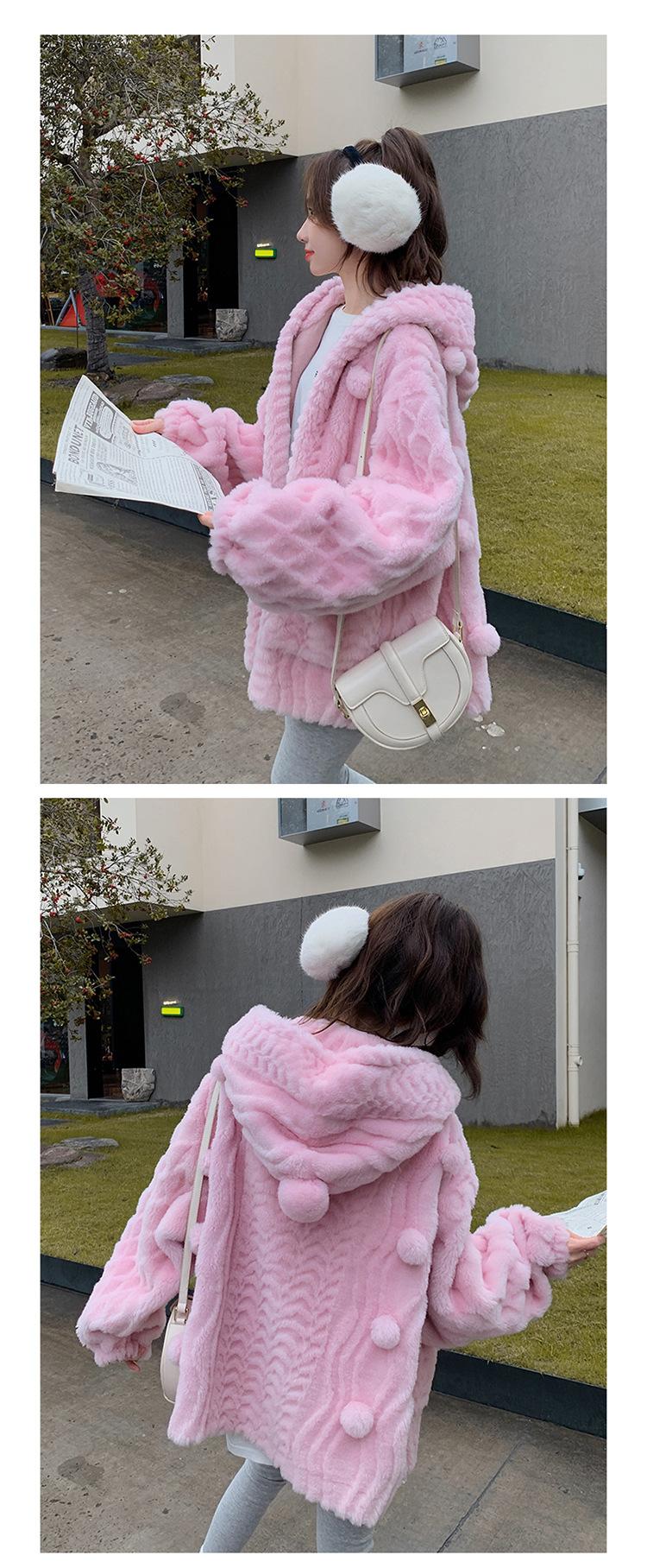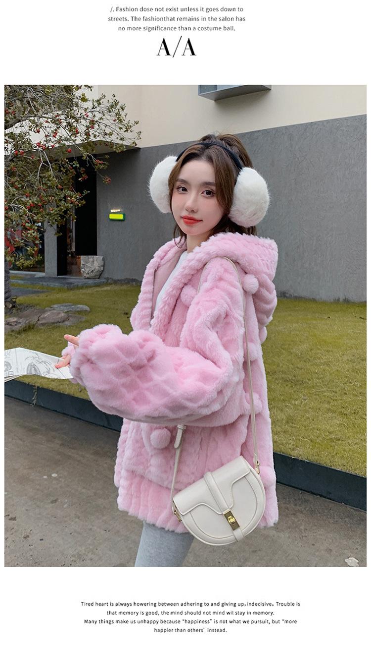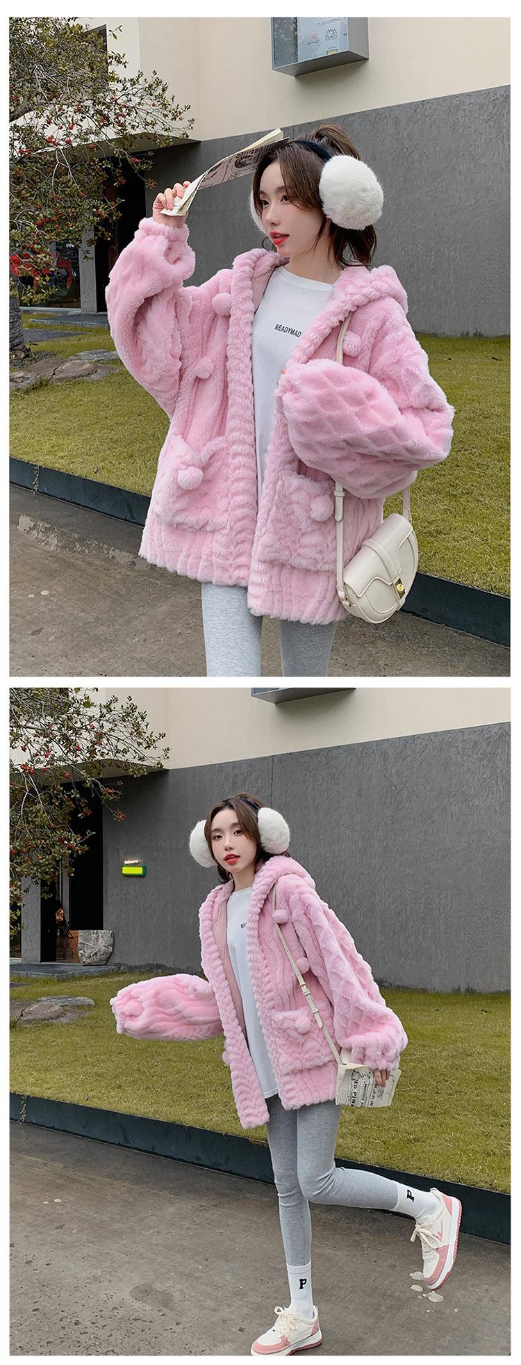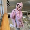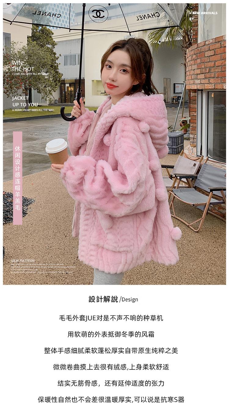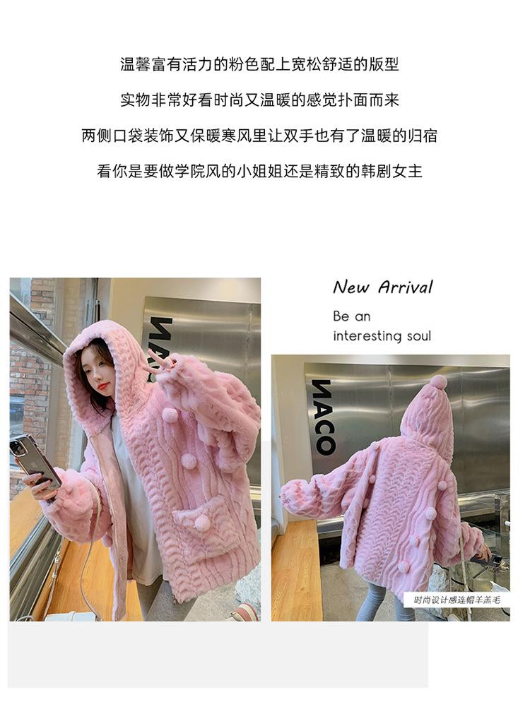 Invierno Nuevo abrigo de lana de cordero para mujer con capucha abrigo suelto de esquila