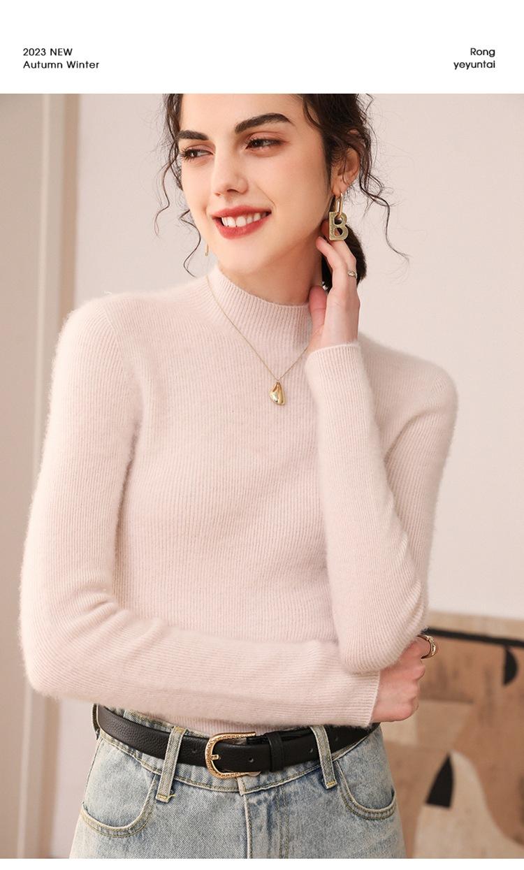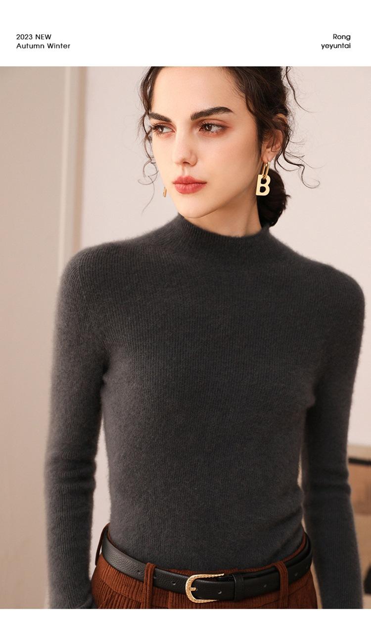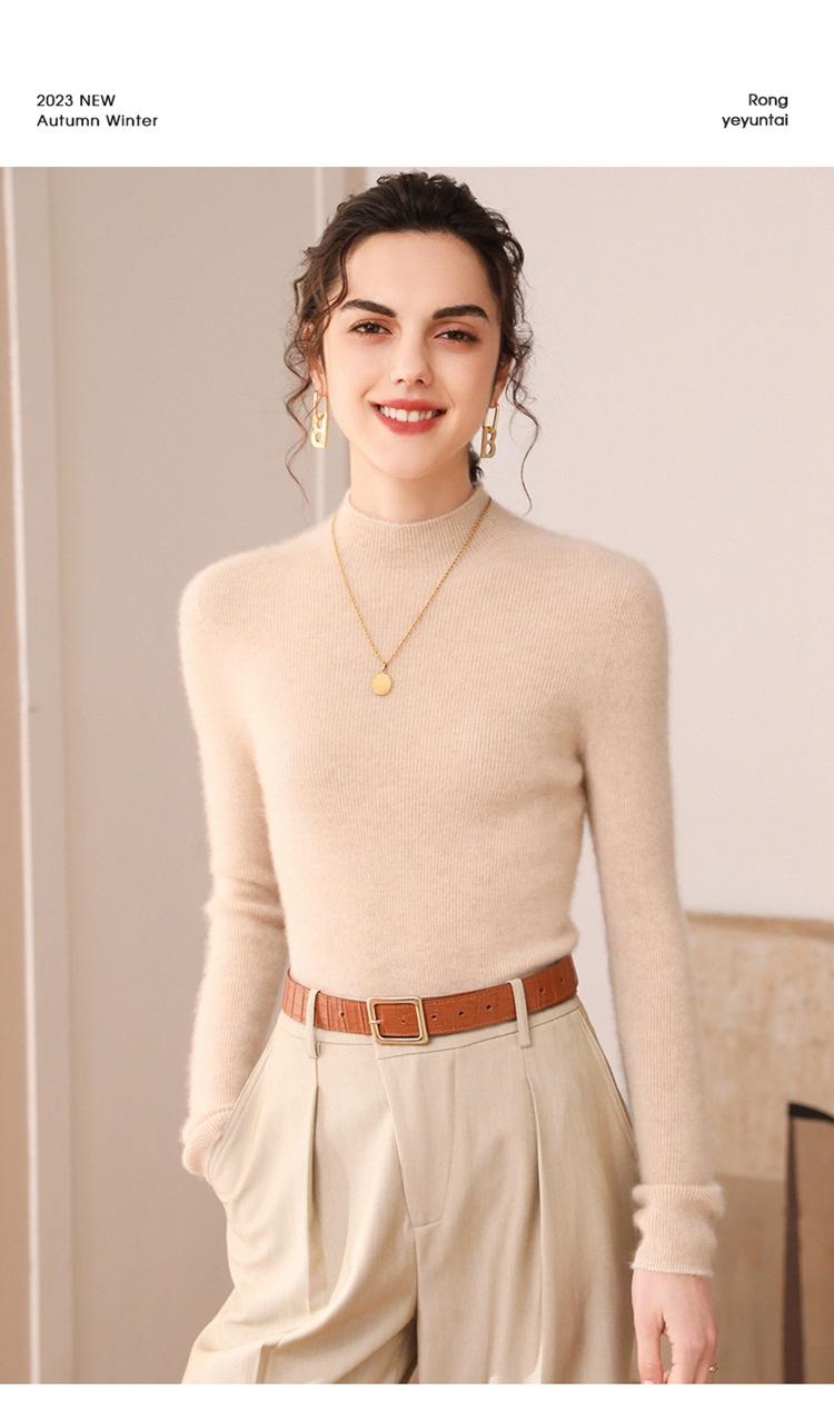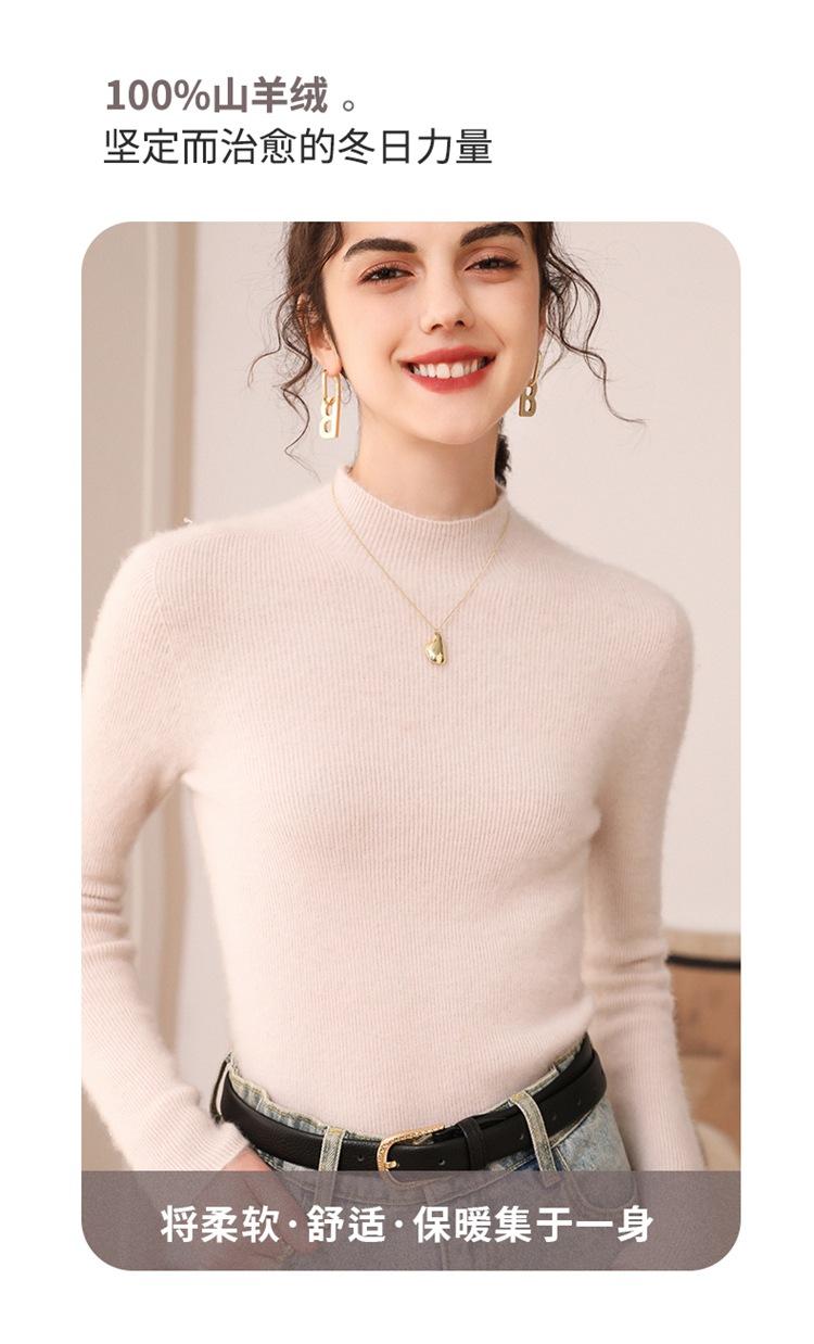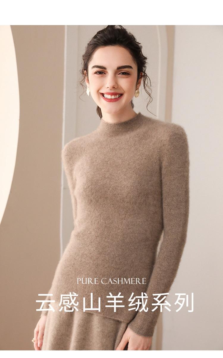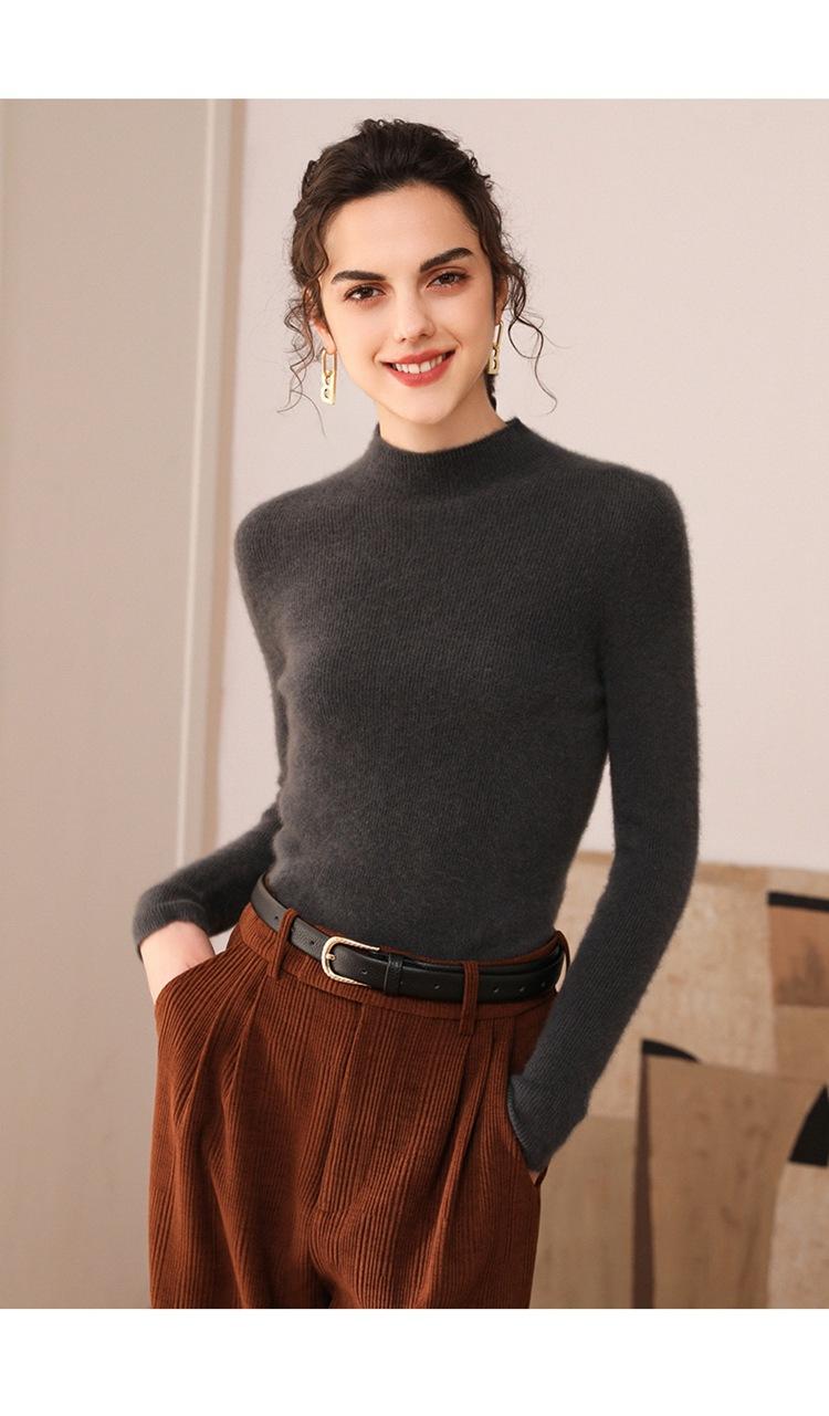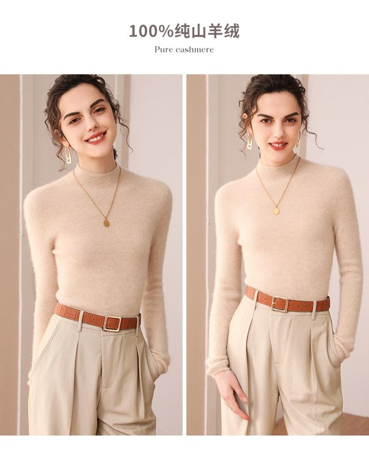 Suéter de cachemira para mujer, 100% cachemira pura, otoño e invierno, nueva ropa de primera línea, suéter de punto ajustado con cuello alto y media manga.
