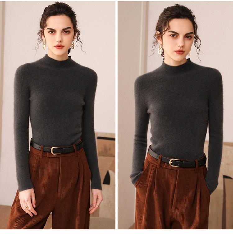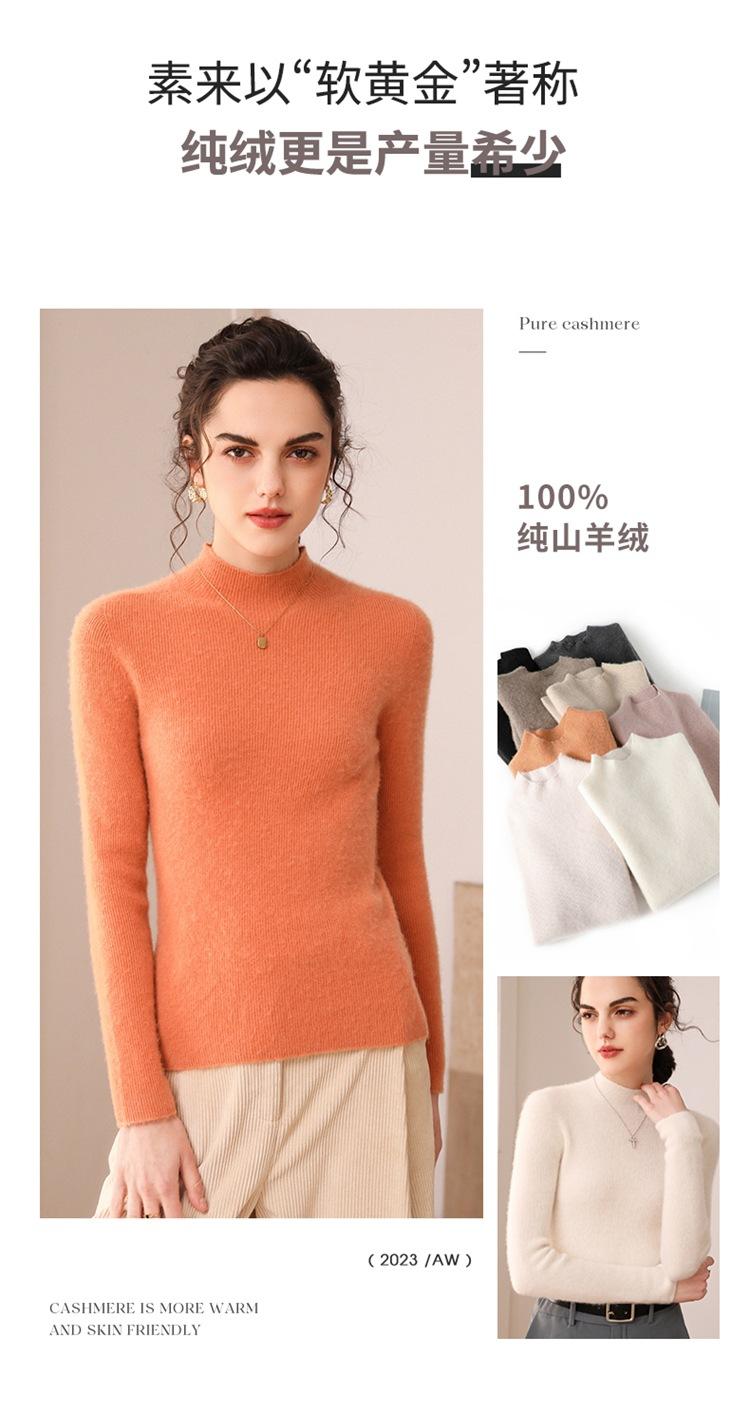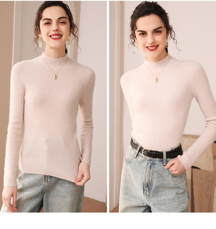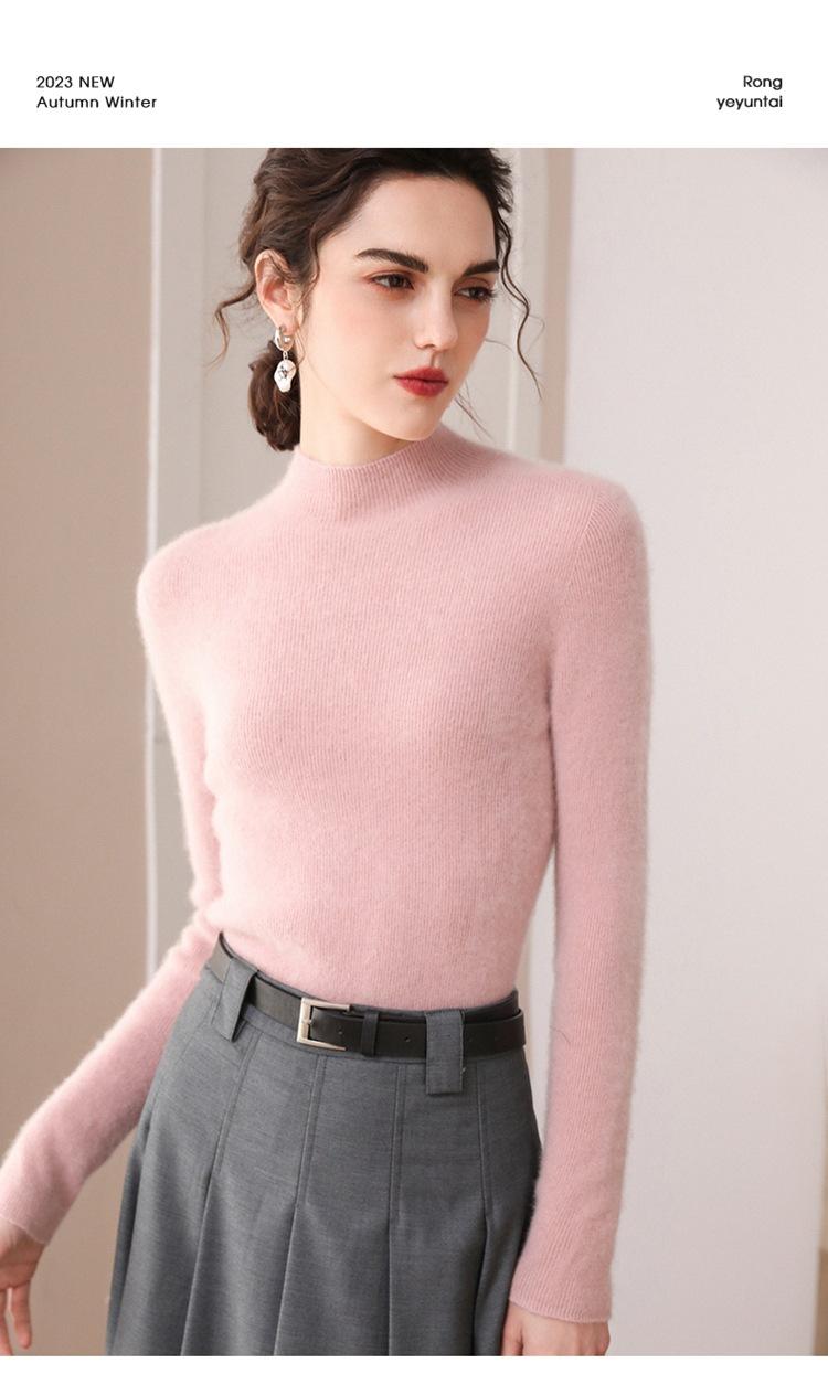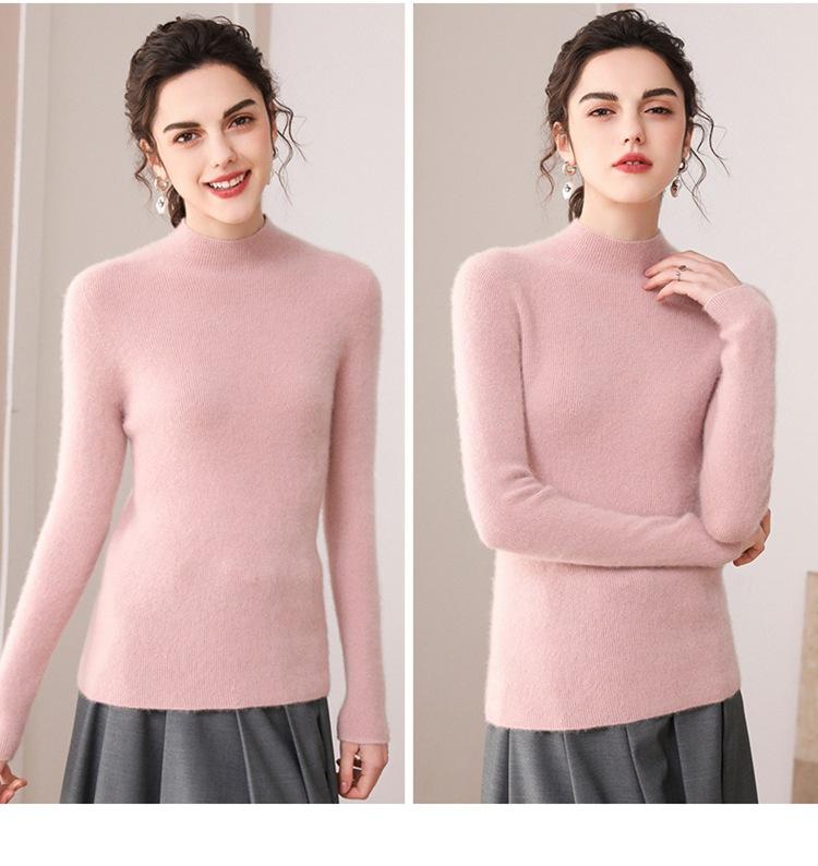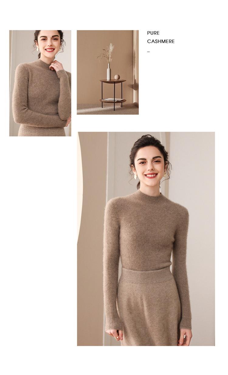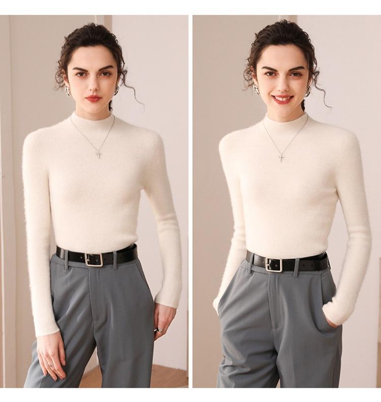 Suéter de cachemira para mujer, 100% cachemira pura, otoño e invierno, nueva ropa de primera línea, suéter de punto ajustado con cuello alto y media manga.