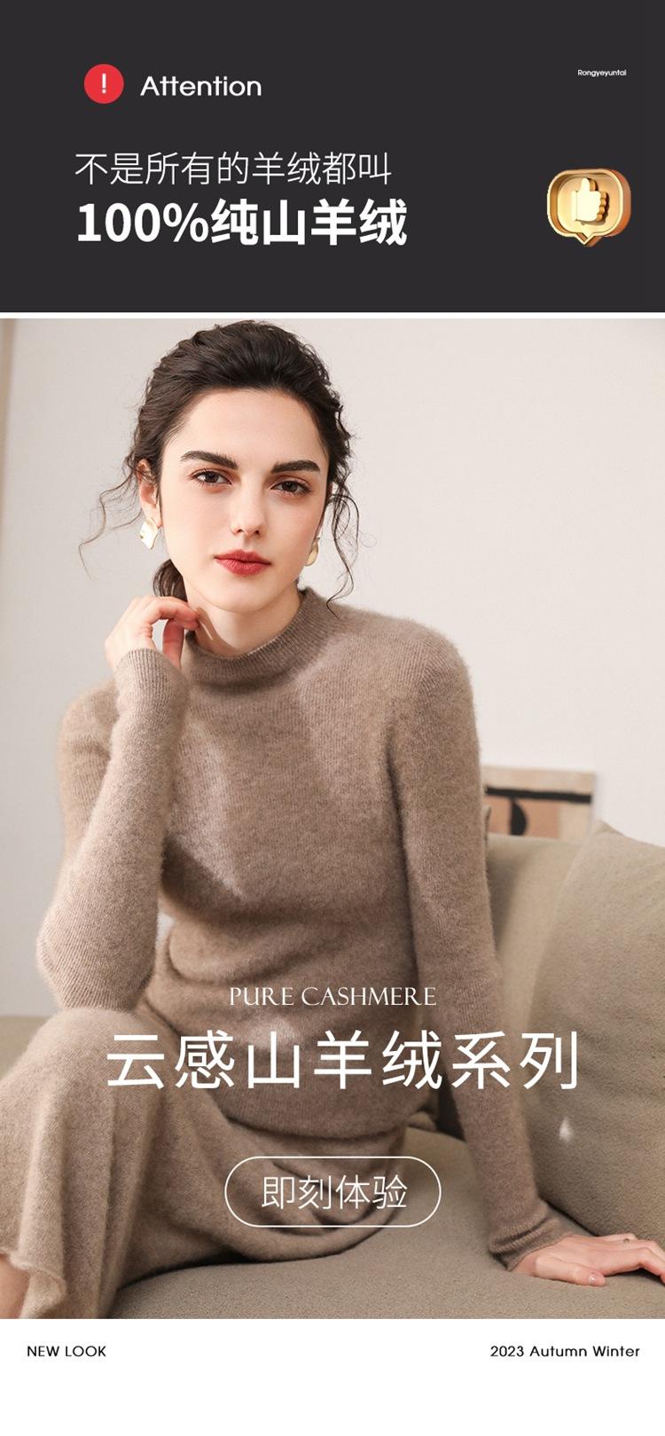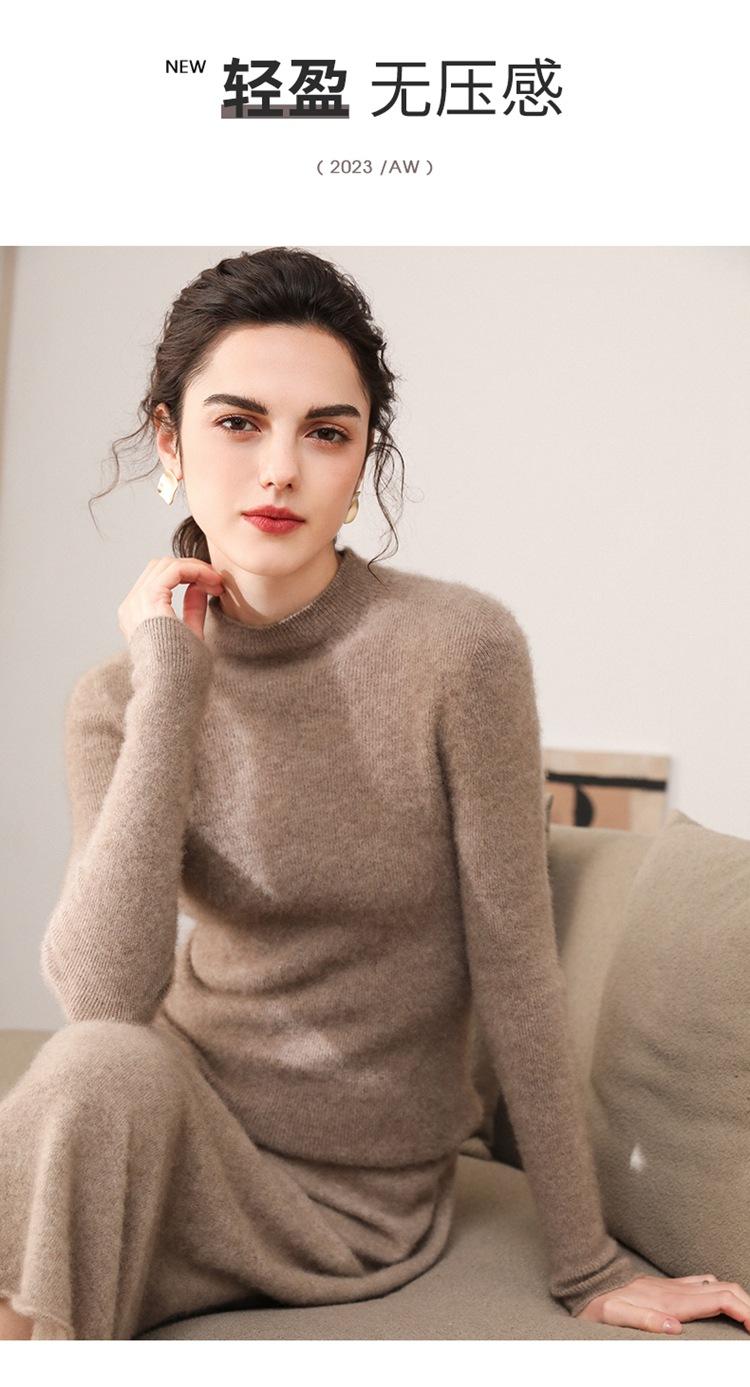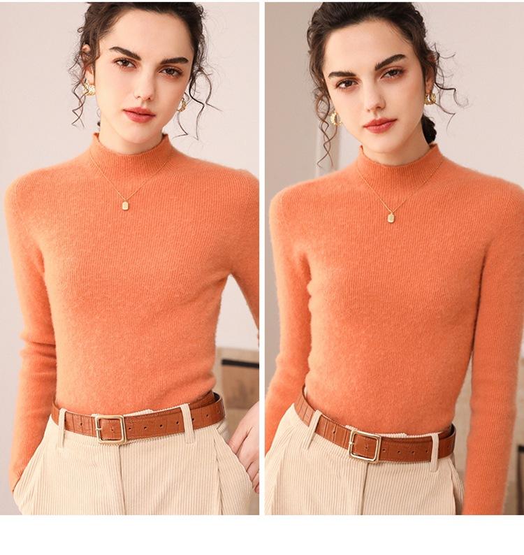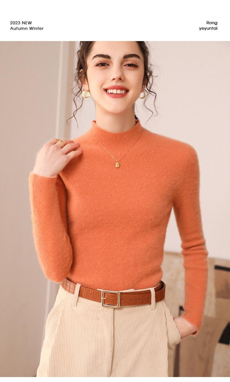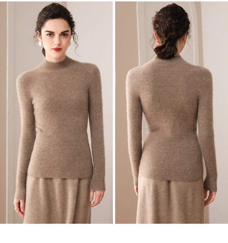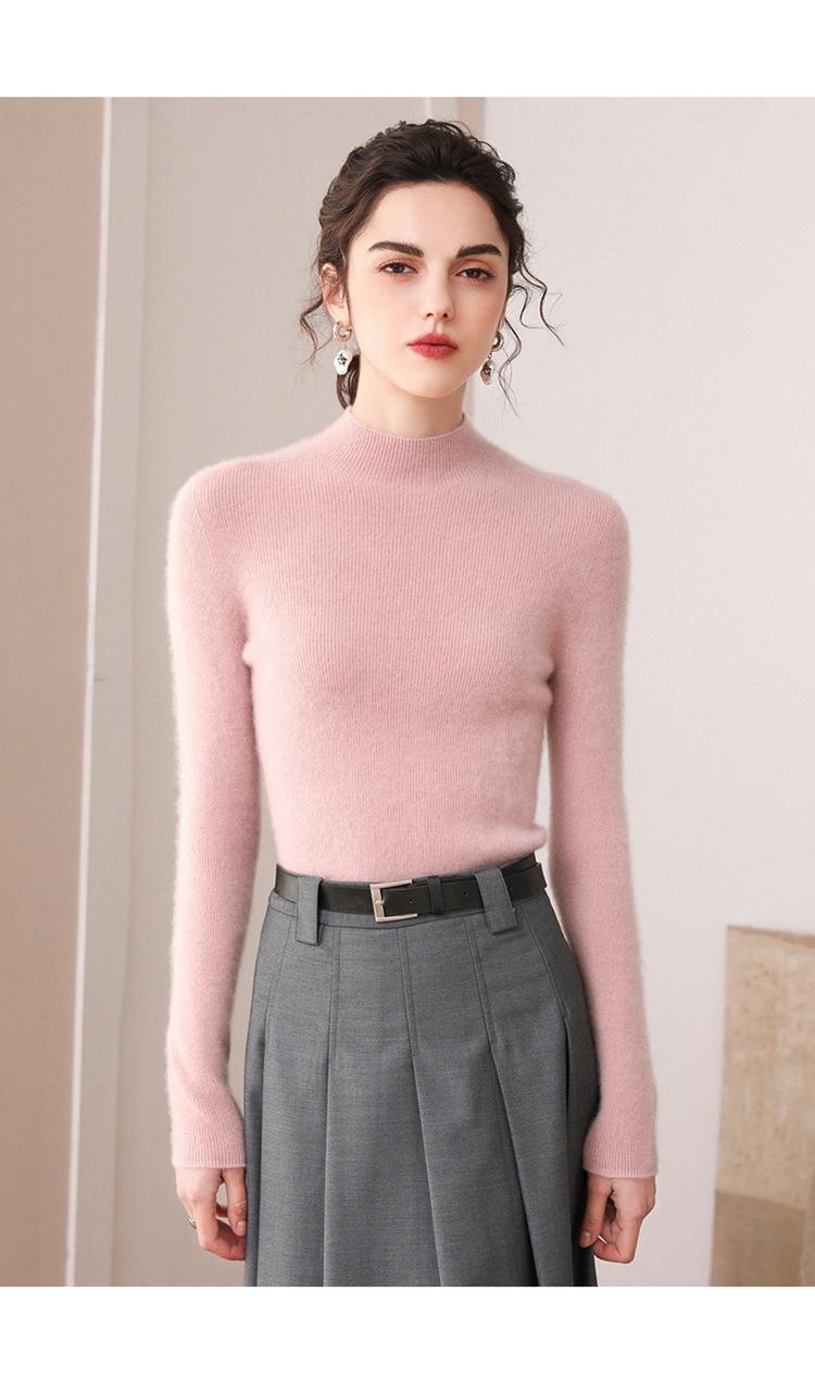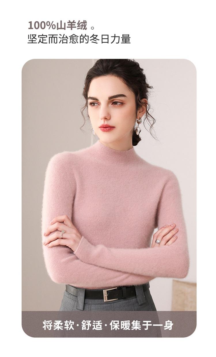 Suéter de cachemira para mujer, 100% cachemira pura, otoño e invierno, nueva ropa de primera línea, suéter de punto ajustado con cuello alto y media manga.