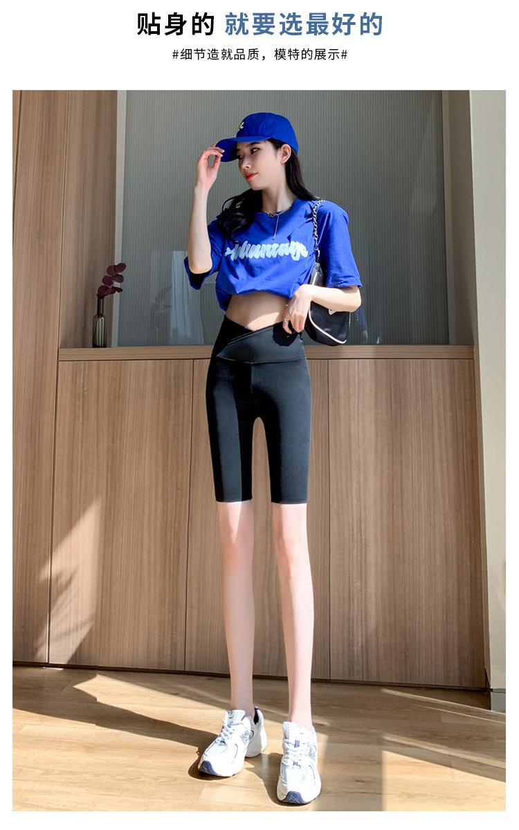 Pantalones de maternidad de pierna recta de fábrica, leggings con diseño de tiburón y cinco puntos cruzados, pantalones cortos finos de verano para niños que sujetan el vientre.