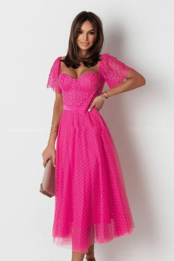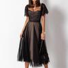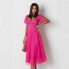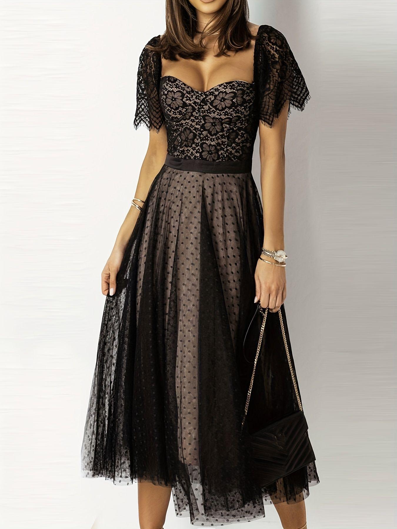 Vestido sexy de comercio exterior europeo y americano, vestido de encaje de manga corta de Amazon, vestido de verano sin espalda, cintura ajustada con pecho de algodón.