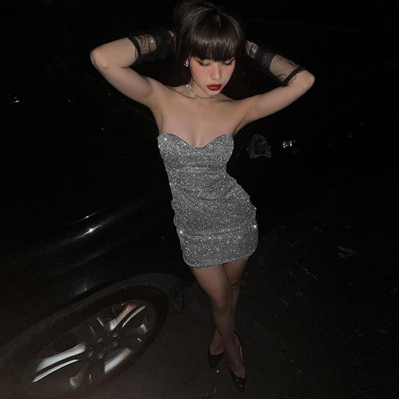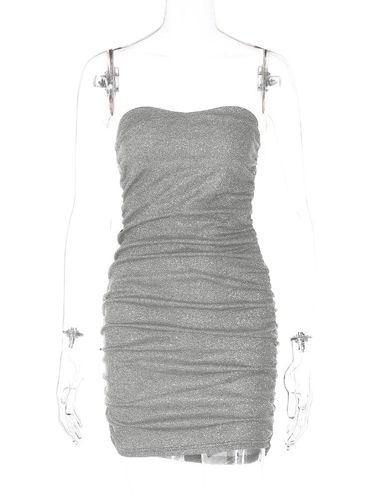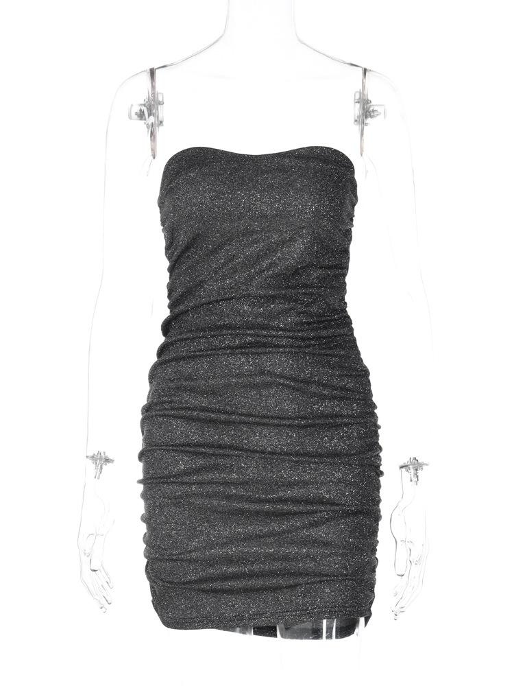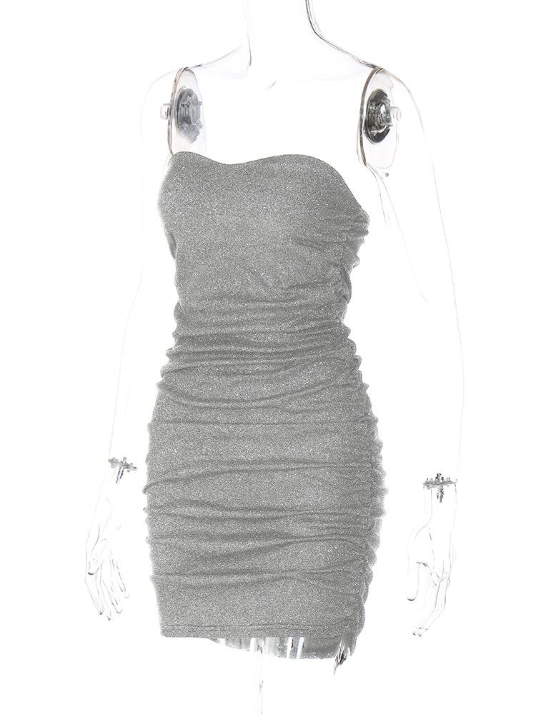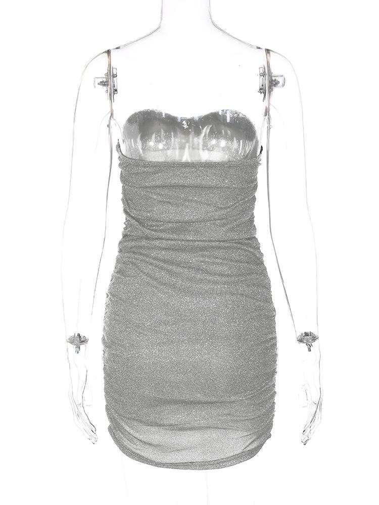 Vestido de estilo europeo y americano para mujer, nueva moda de primavera 2023, sexy, con cuello en V, sin tirantes, sin espalda, con pliegues, al por mayor