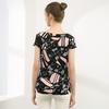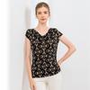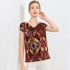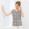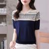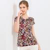 Verano Nueva Camiseta de Manga Corta de Seda para Mujer Estampada Manga Pequeña Camiseta Básica Top de Punto de Seda de Morera Ropa para Mujer de Mediana Edad