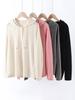 2023 Otoño e Invierno Nuevo Ins Sudadera con Capucha Versátil de Moda Corta Slim con Cremallera Cálida de Color Puro para Mujer