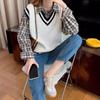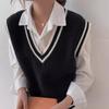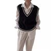 Chaleco de punto estilo universitario para mujer, otoño 2024, nuevo chaleco holgado sin mangas con cuello alto y estilo perezoso.