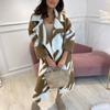 2025 Nuevo Otoño Europeo y Americano Transfronterizo Exportación Ropa de Mujer Amazon Abrigo de Solapa de Manga Larga Lana Estampada Talla Grande Cortavientos
