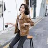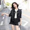 Abrigo de piel de oveja corto con solapa pequeña y delgado para mujer, primavera y otoño de 2024, venta al por mayor