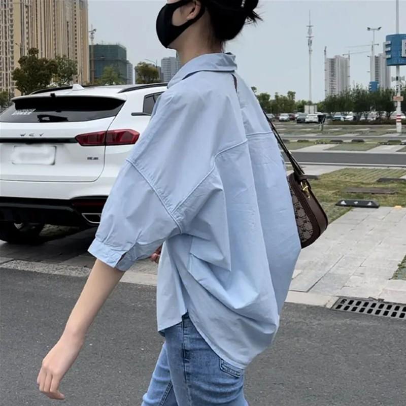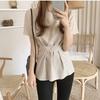 Sentido del Diseño Espalda Hueca Manga Corta Verano Suelto Adelgazante Estilo Coreano Estilo Hong Kong Chic Casual Top Camisa para Mujer