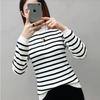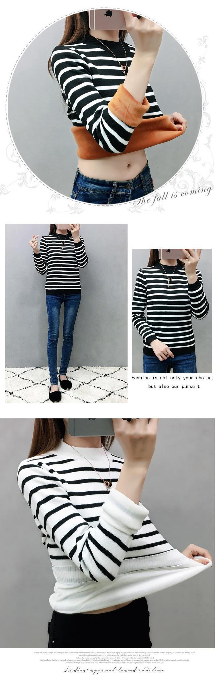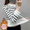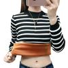 Camiseta de manga larga de moda cálida con forro polar para mujer, ropa de otoño e invierno, estación europea, nueva camisa informal a rayas gruesas, al por mayor