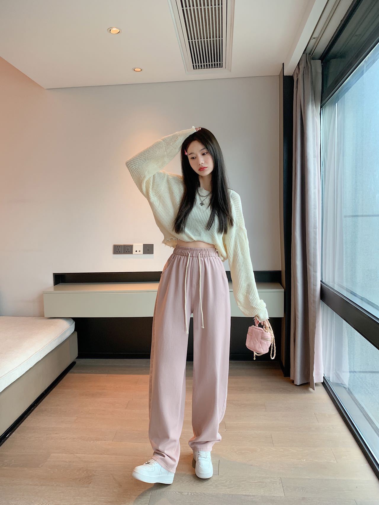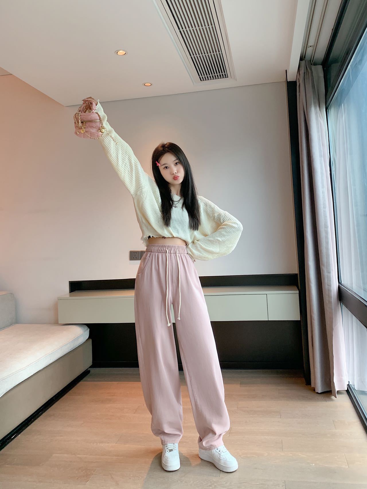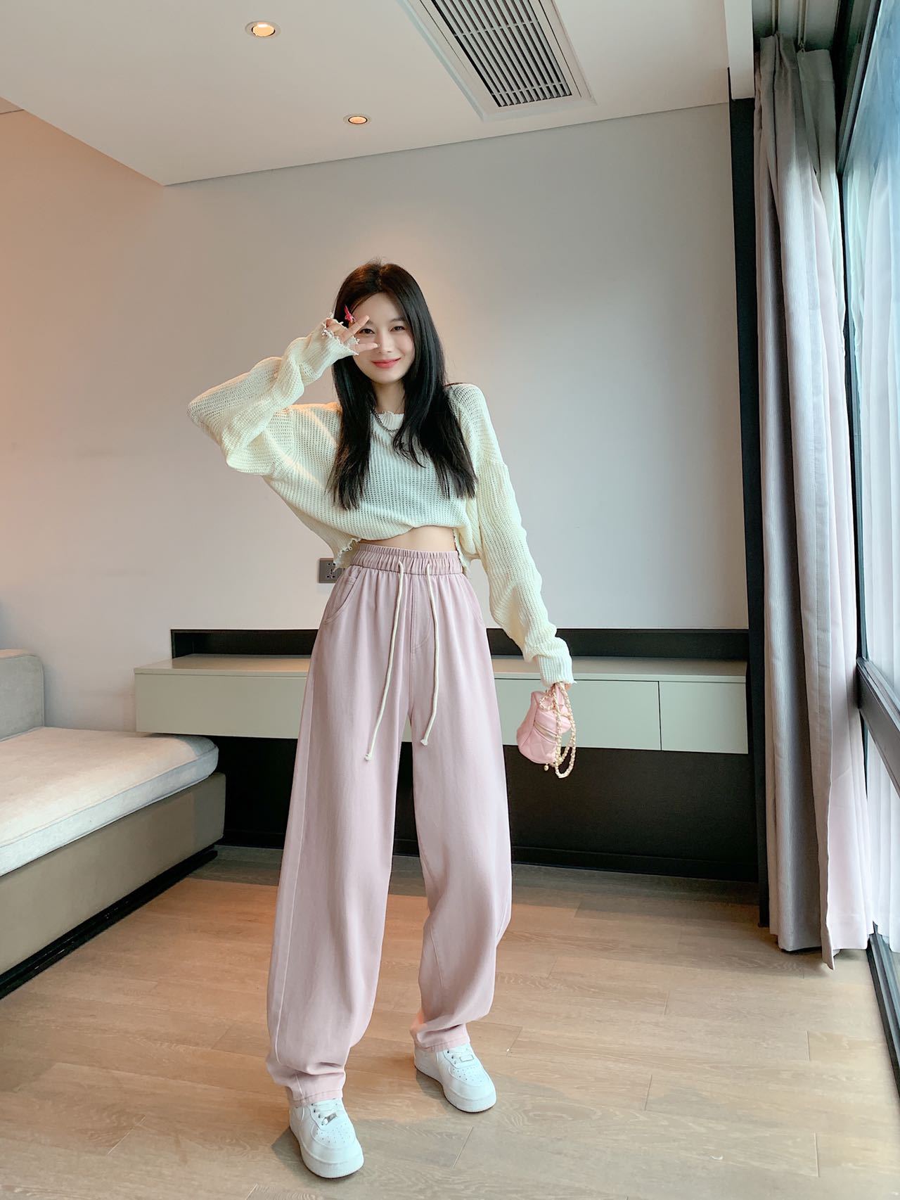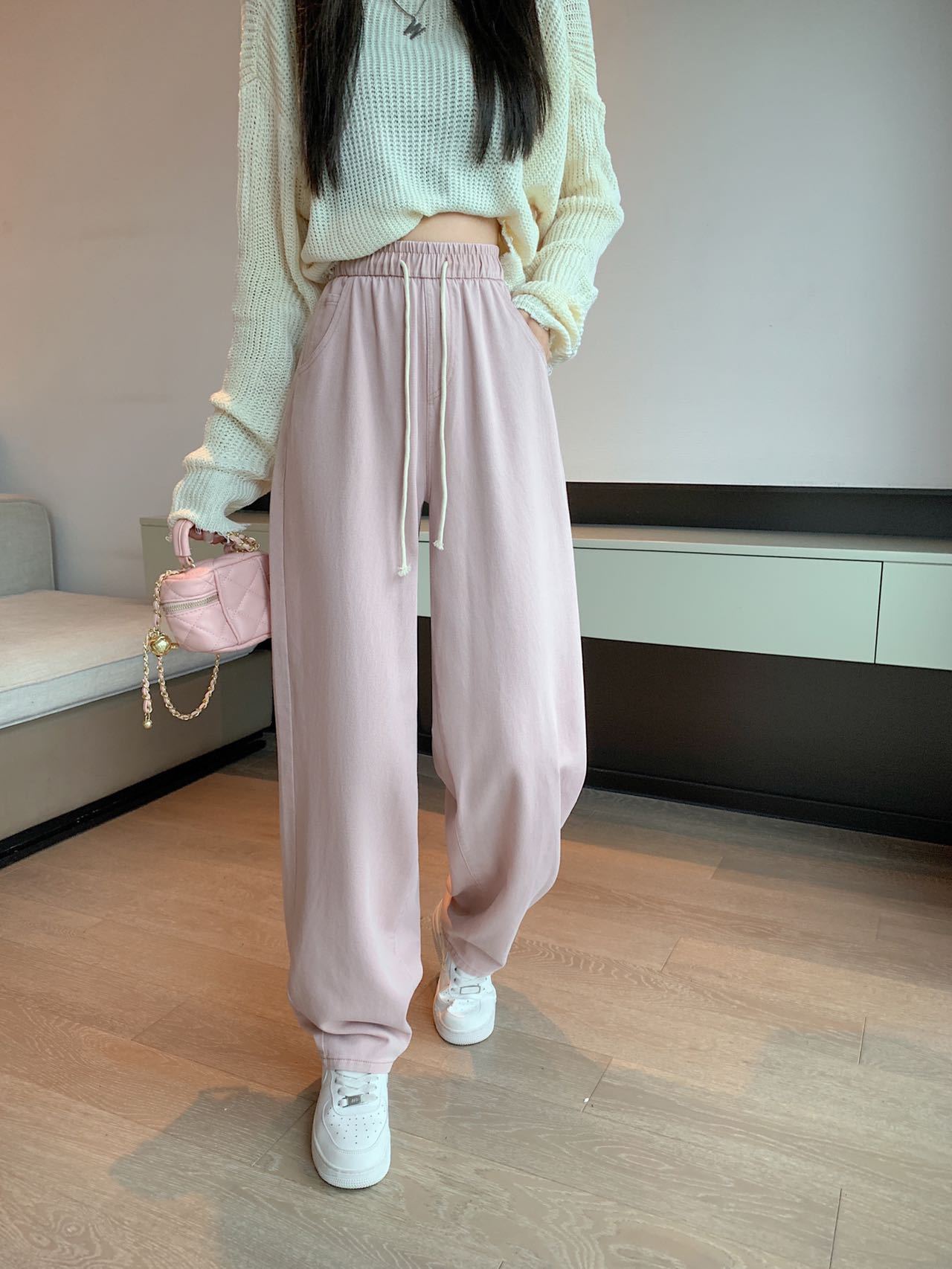 Otoño 2023 nuevos pantalones harem de papá sueltos de cintura alta moda combinable delgados elásticos rectos deportivos